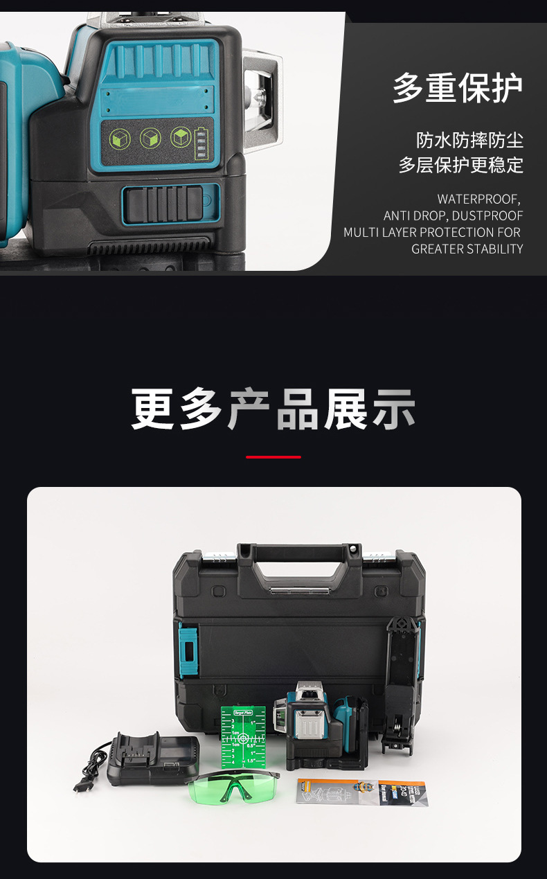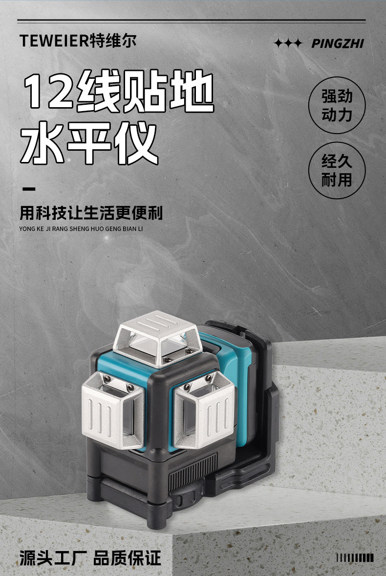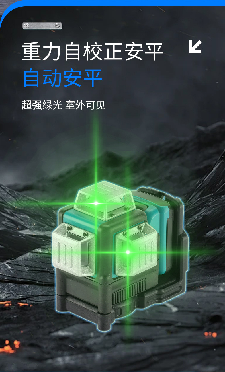 Nivelación automática de alta precisión de comercio exterior, nivel de pegado a la pared de luz verde al aire libre, nivel láser transfronterizo de 12 líneas