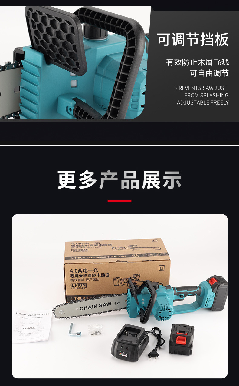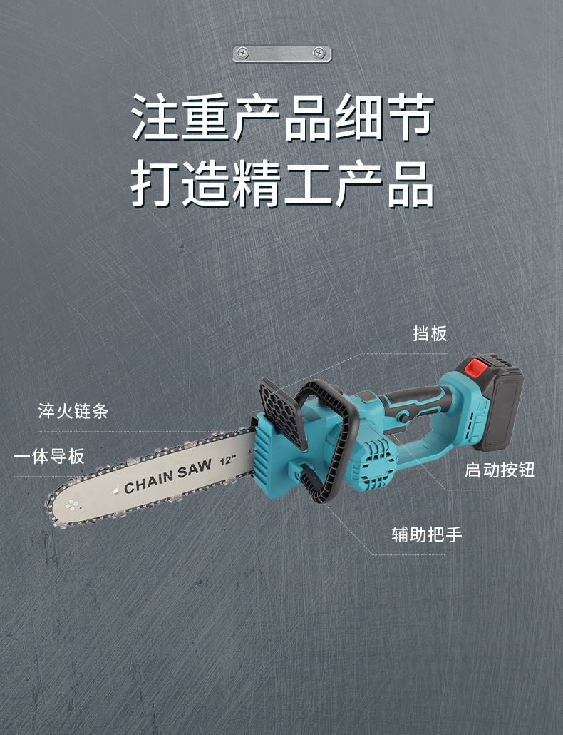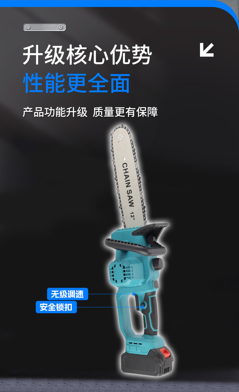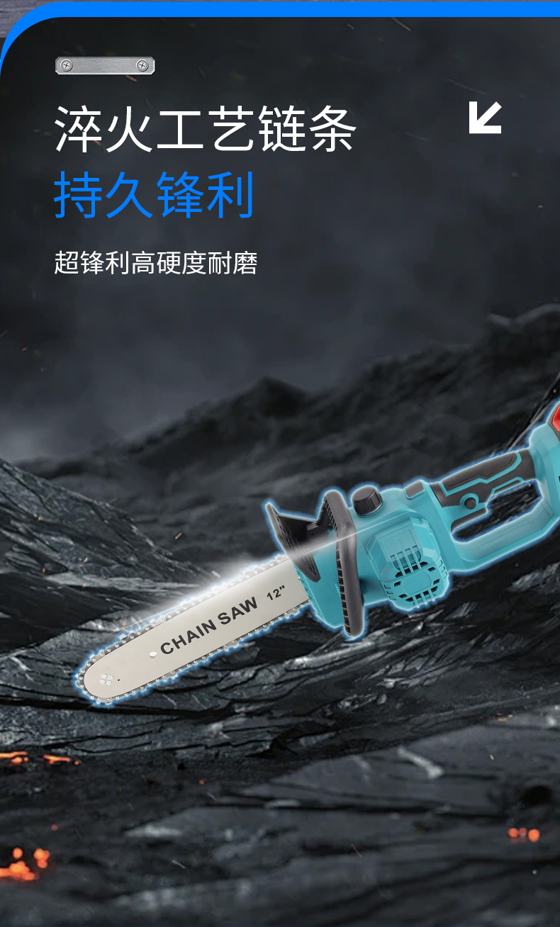 Sierra de cadena eléctrica multifuncional transfronteriza de mano comercio exterior 12 pulgadas madera jardín sierra de madera de alta potencia sin escobillas sierra de litio