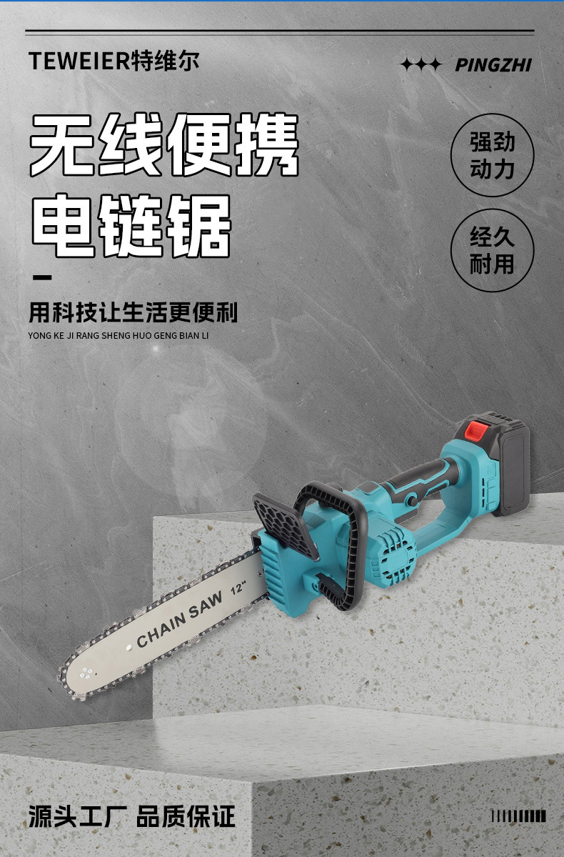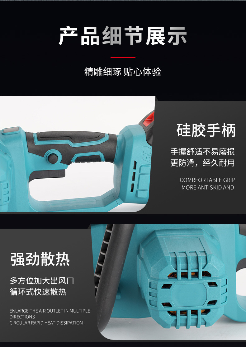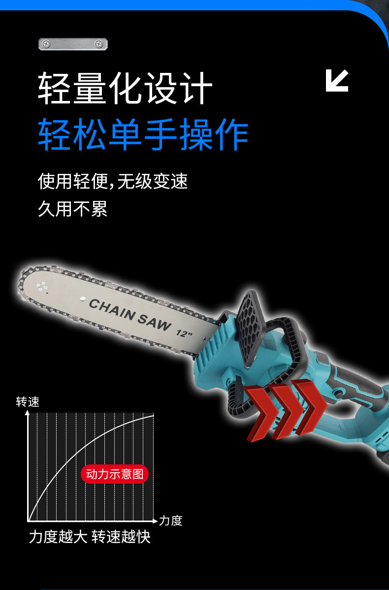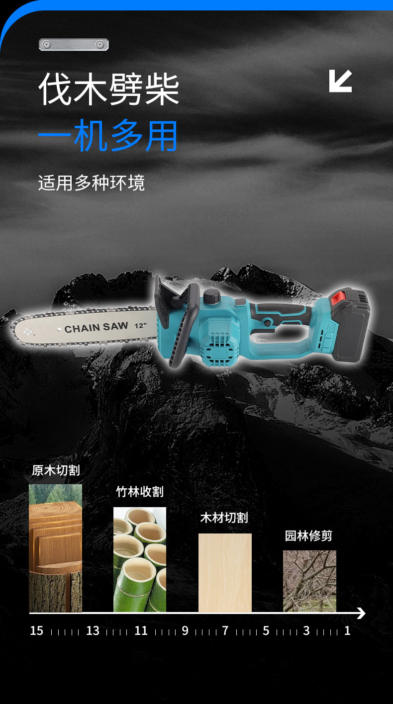 Sierra de cadena eléctrica multifuncional transfronteriza de mano comercio exterior 12 pulgadas madera jardín sierra de madera de alta potencia sin escobillas sierra de litio