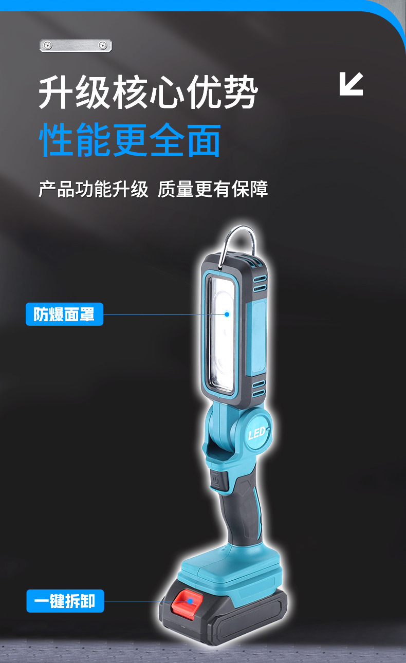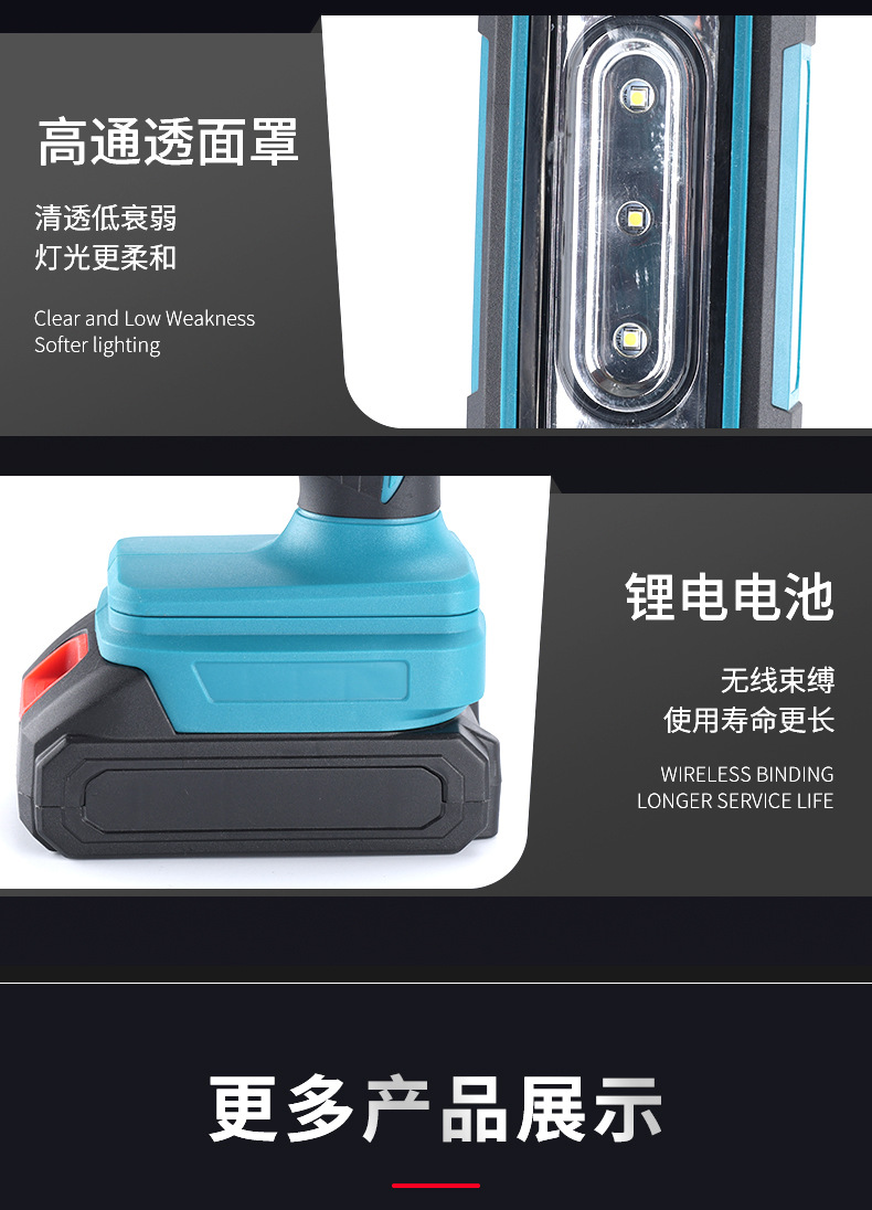 Lámpara de trabajo LED de batería de litio transfronteriza Makita, conveniente al aire libre, mantenimiento en el sitio, iluminación multifuncional súper brillante para acampar