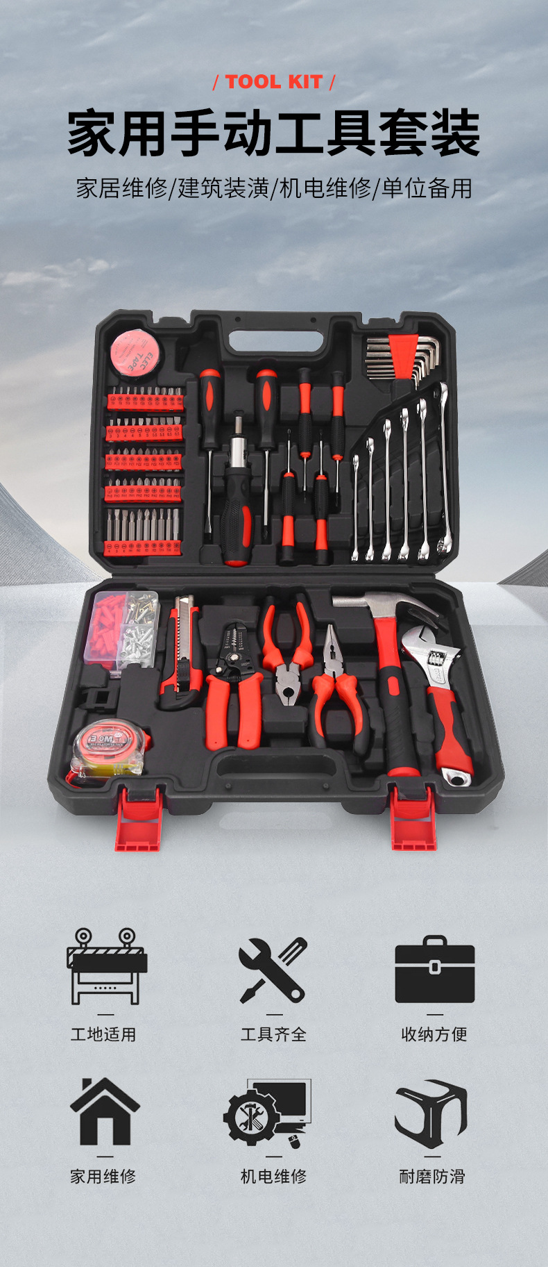 Herramientas de hardware de enchufe de reparación de automóviles montadas en vehículos caja de herramientas multifuncional para reparación del hogar.