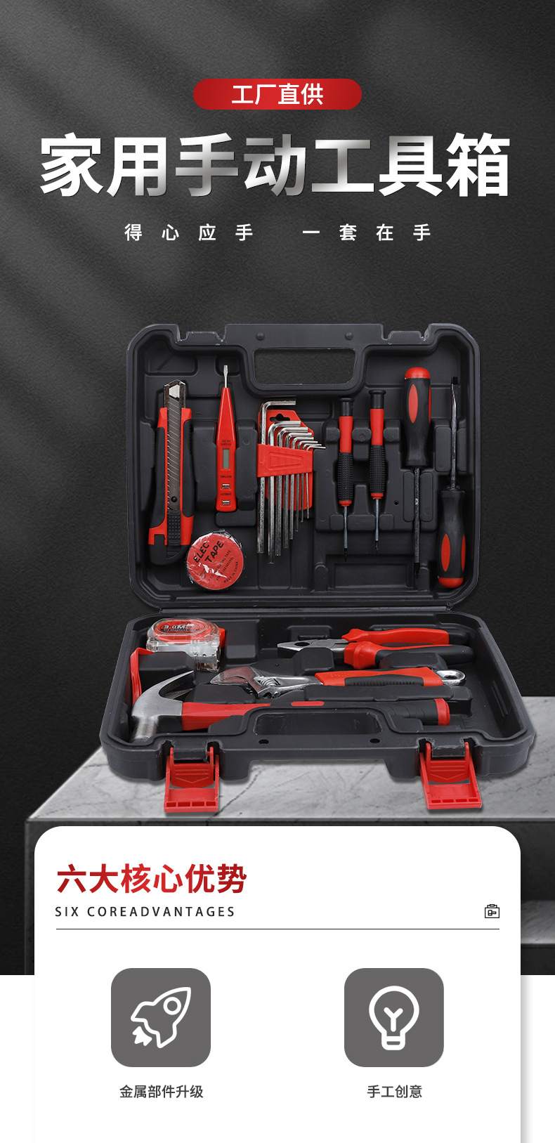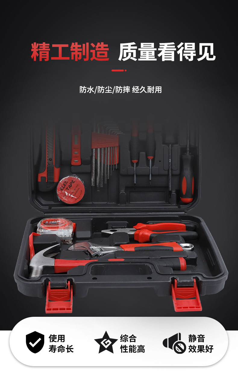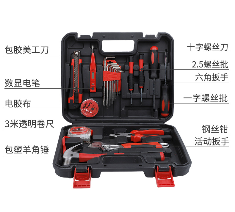 Herramientas de hardware del hogar traje destornillador martillo llave decoración carpintería caja de herramientas Herramientas de hardware conjunto de 19 piezas