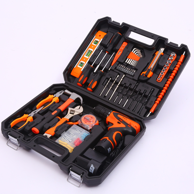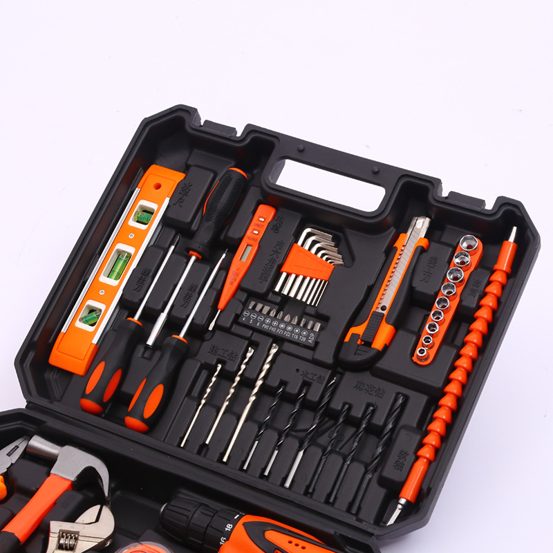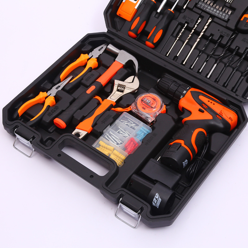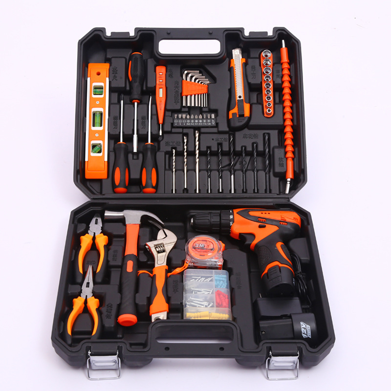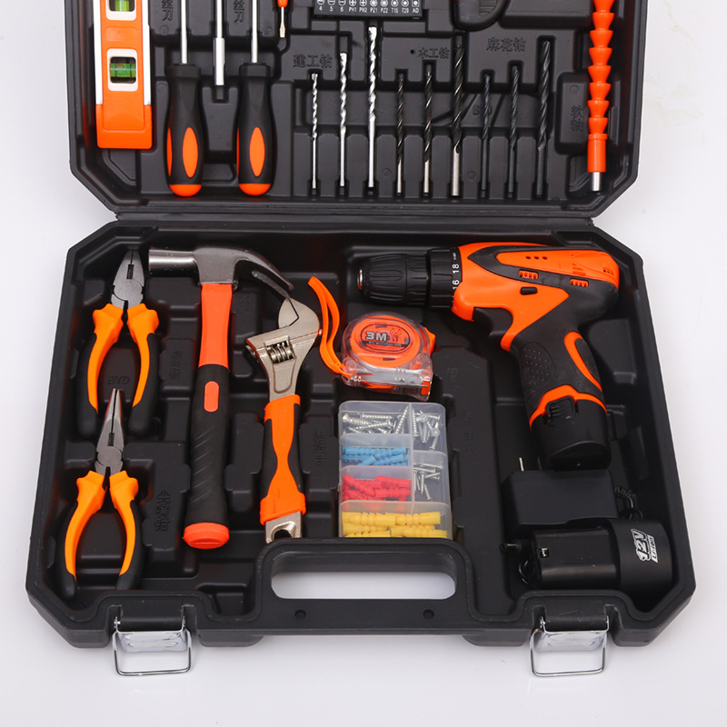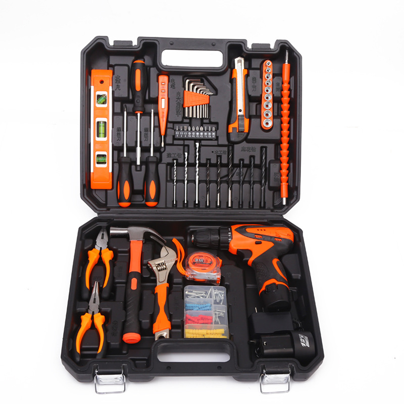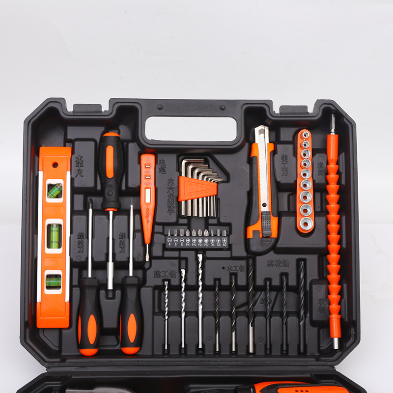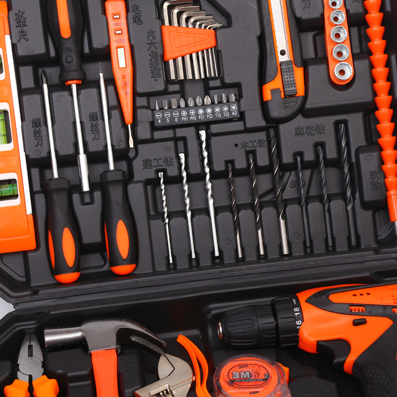 Herramientas de hardware Traje de taladro eléctrico de litio Caja de herramientas de mantenimiento de electricista Combinación multifuncional conjunto de herramientas de reparación del hogar