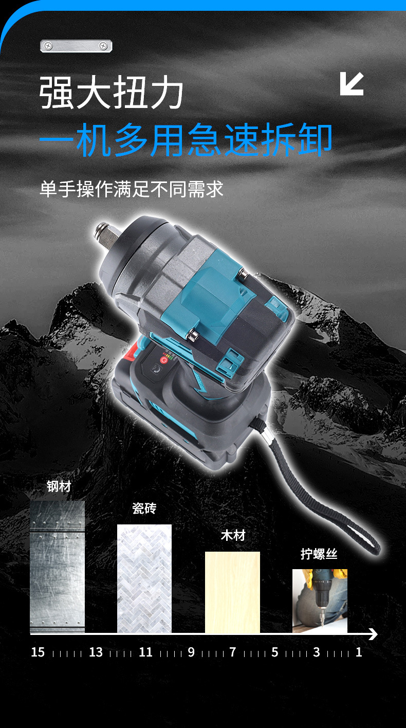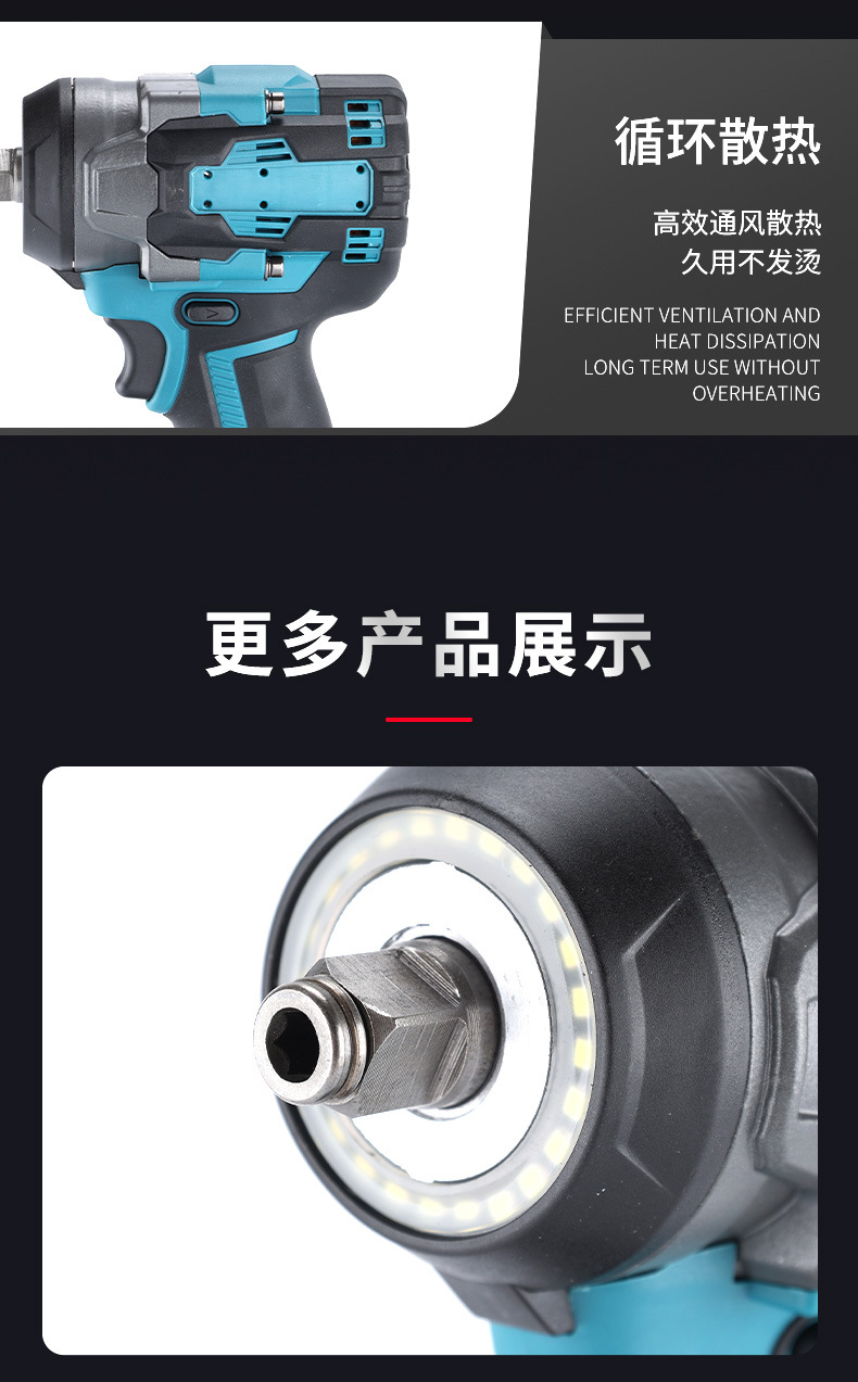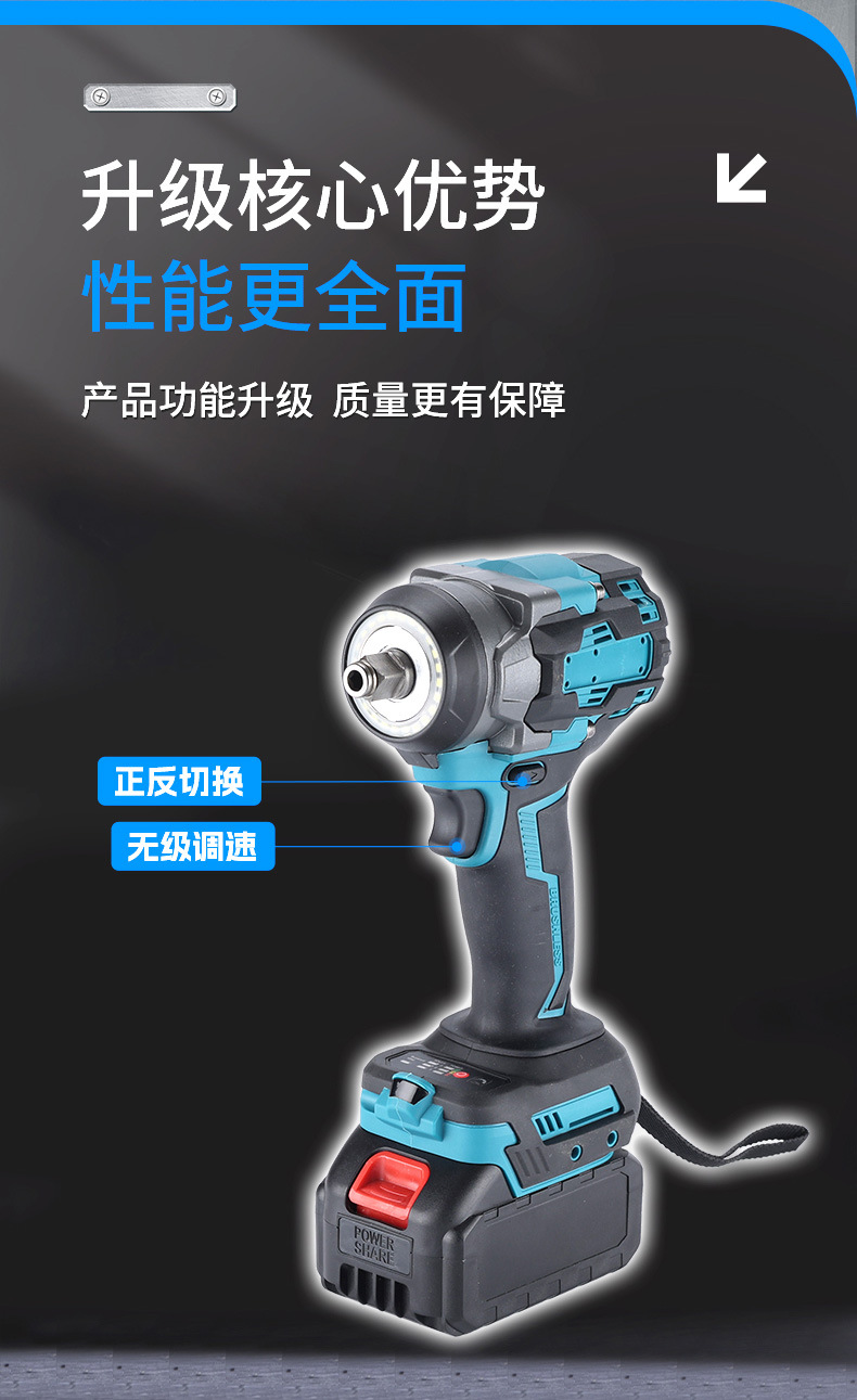 Comercio exterior sin escobillas multifuncional gran torsión 500n llave eléctrica transfronteriza carga de alta potencia llave de impacto de litio eléctrico