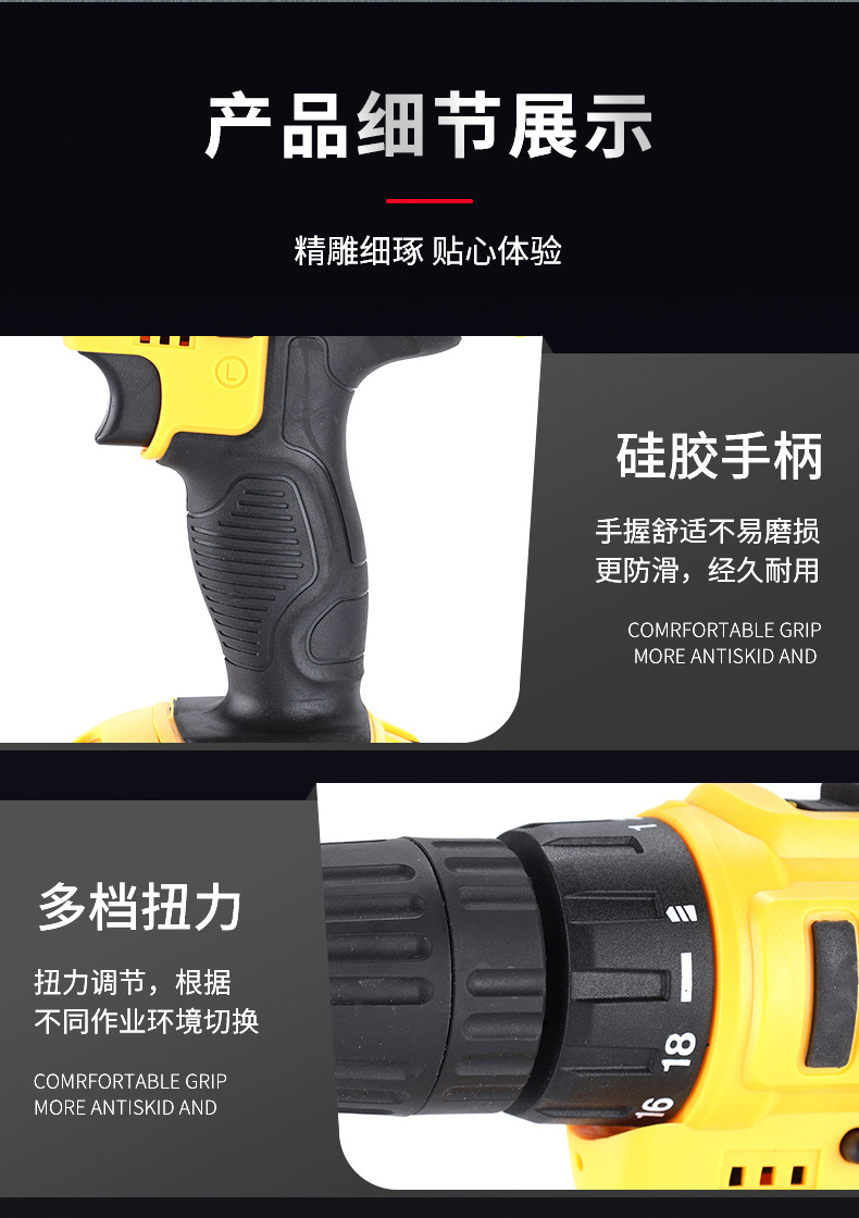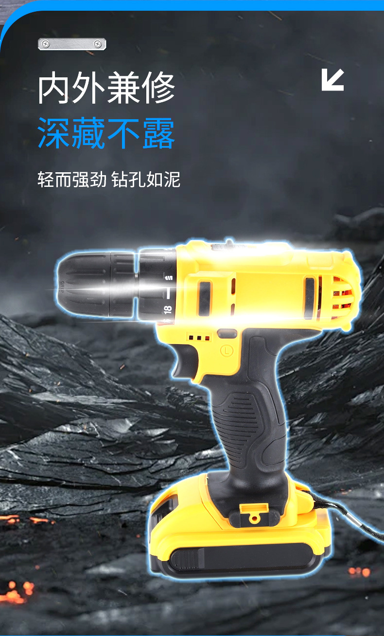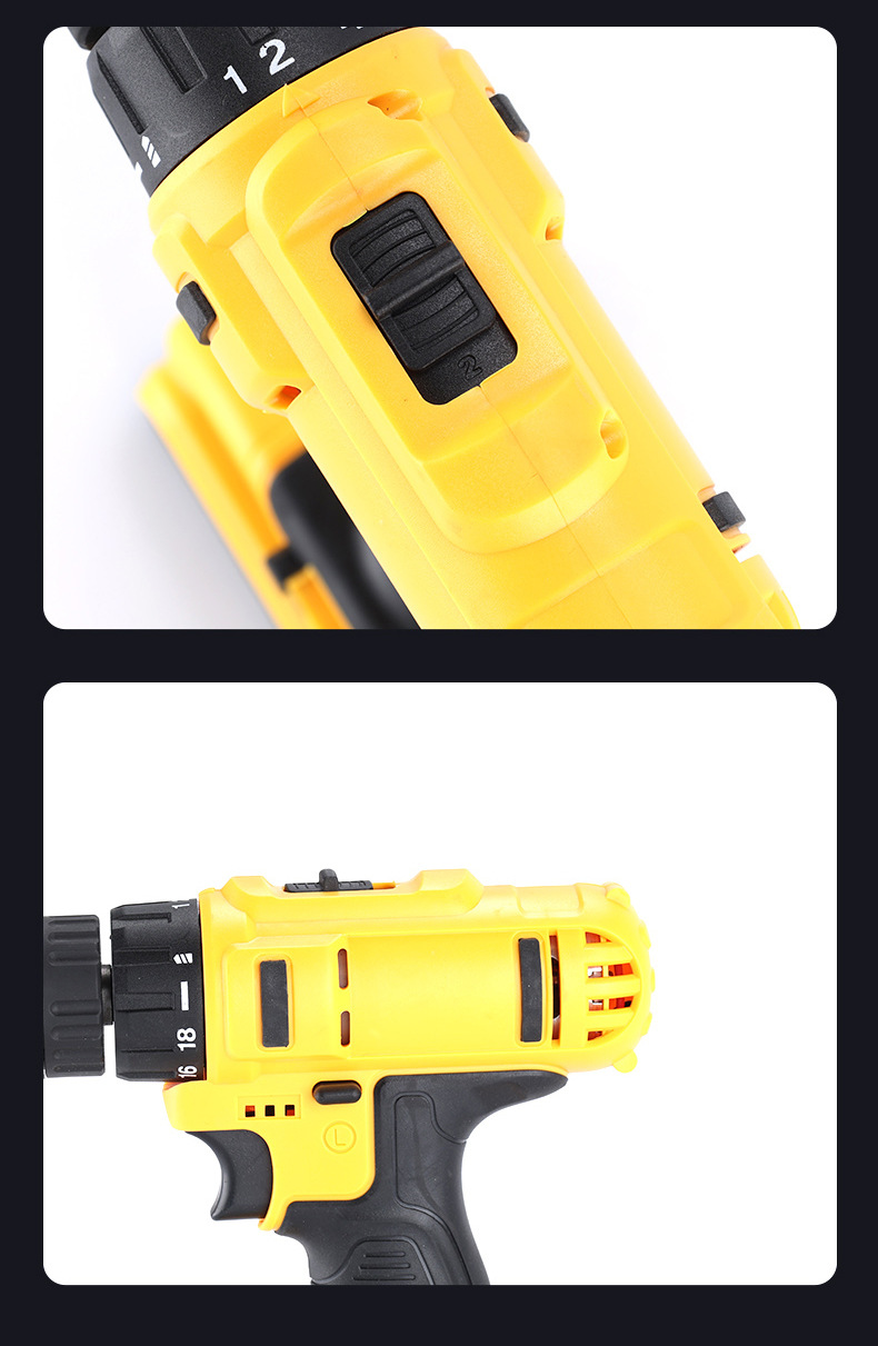 Fábrica personalizada transfronteriza multifuncional taladro de impacto de litio taladro de mano de alta potencia taladro de mano inalámbrico portátil taladro de mano conjunto