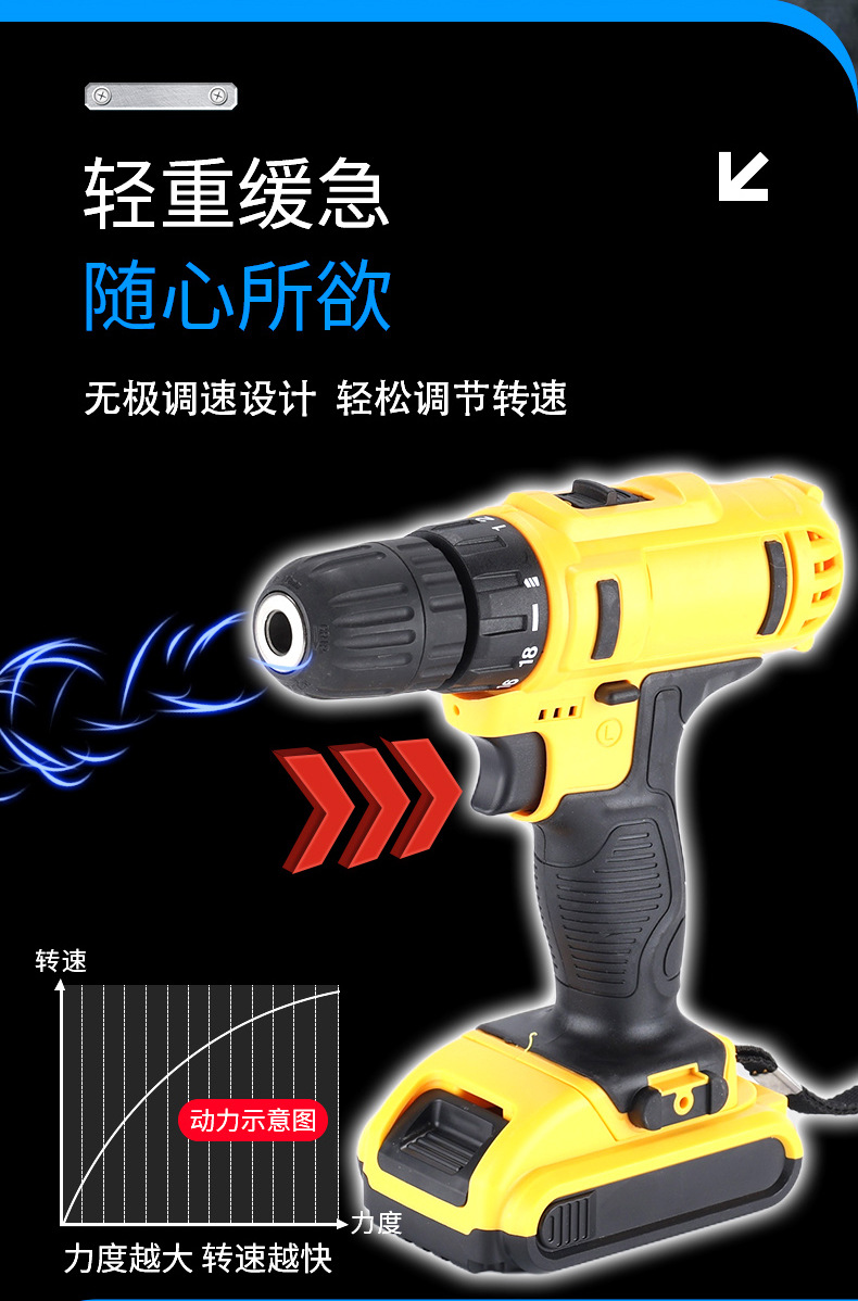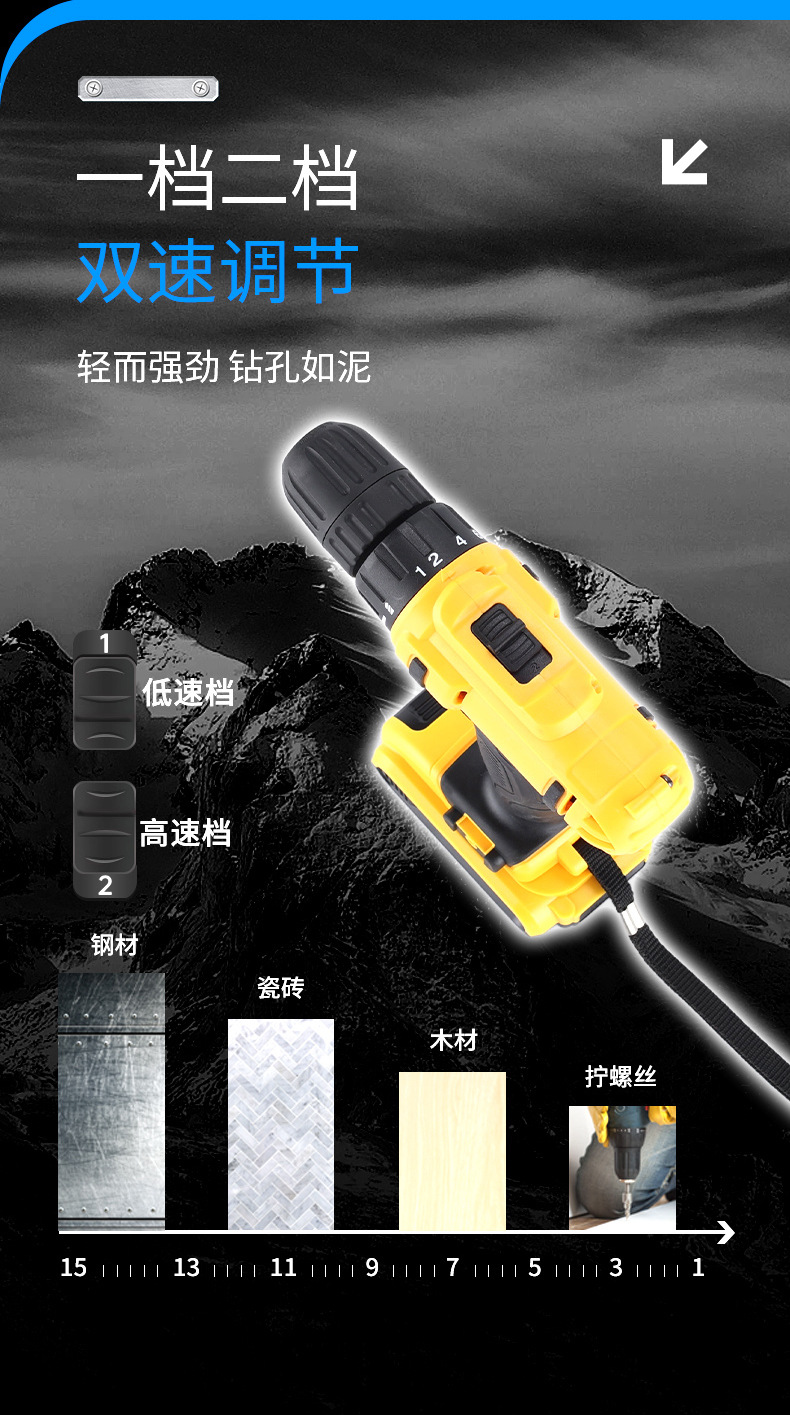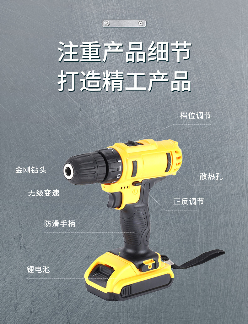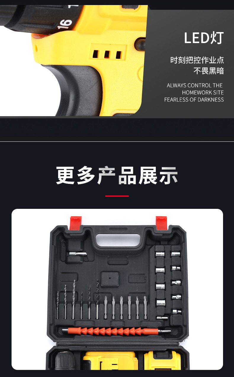 Fábrica personalizada transfronteriza multifuncional taladro de impacto de litio taladro de mano de alta potencia taladro de mano inalámbrico portátil taladro de mano conjunto