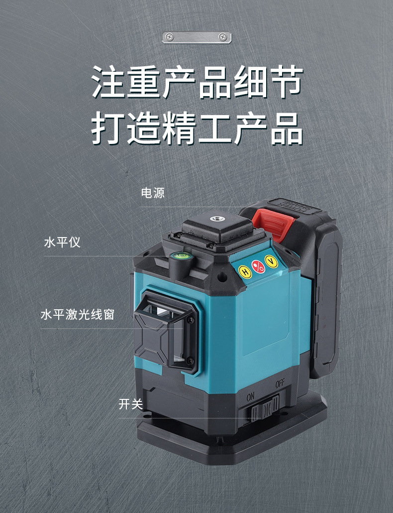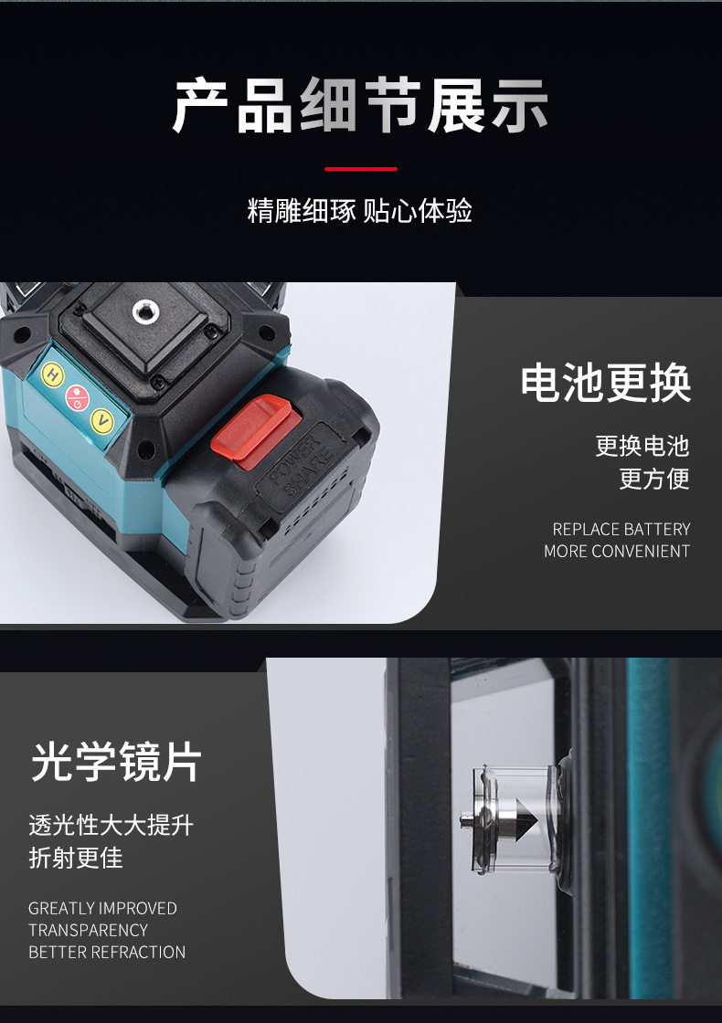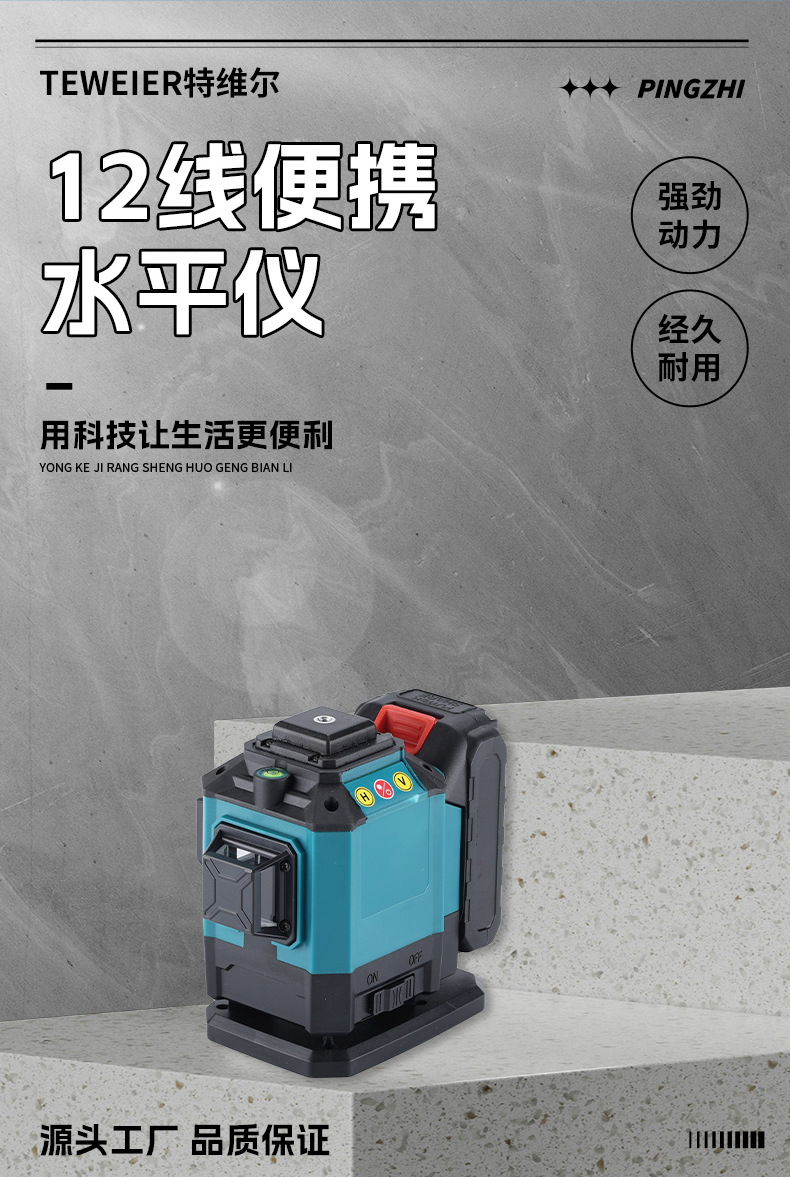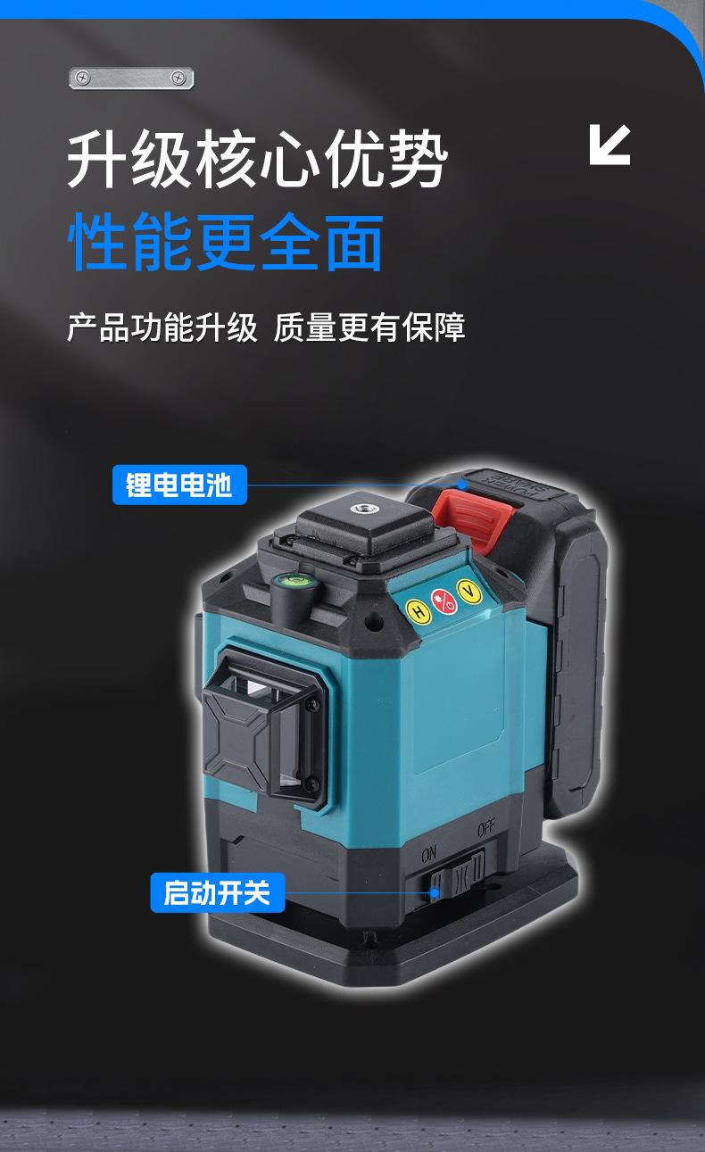 Comercio exterior de alta precisión nivelación automática al aire libre luz verde instrumento de suelo transfronterizo 21v multifunción 12 línea nivel láser