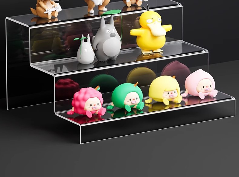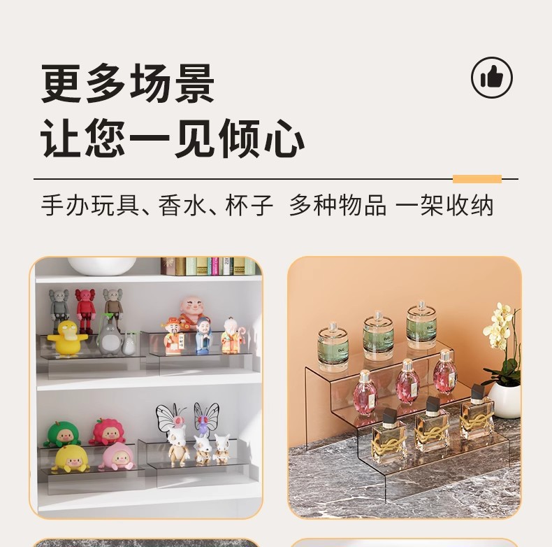 Acrílico escalonado estante de exhibición caja ciega de transmisión en vivo modelo hecho a mano estante de exhibición de almacenamiento de cosméticos al por mayor