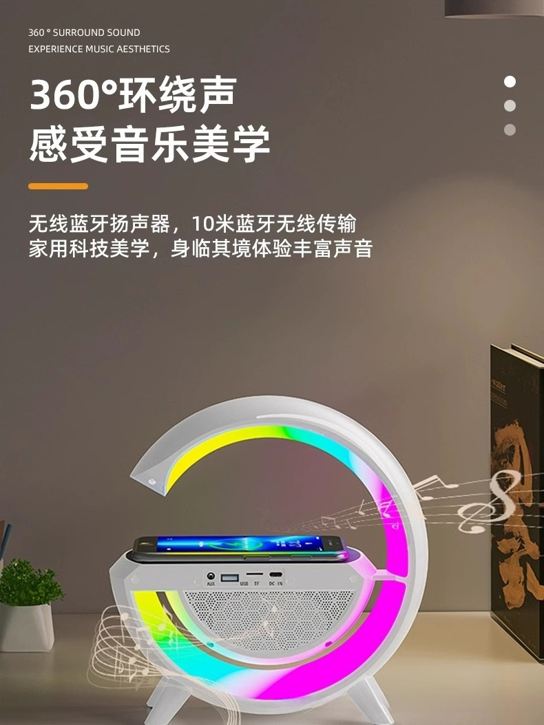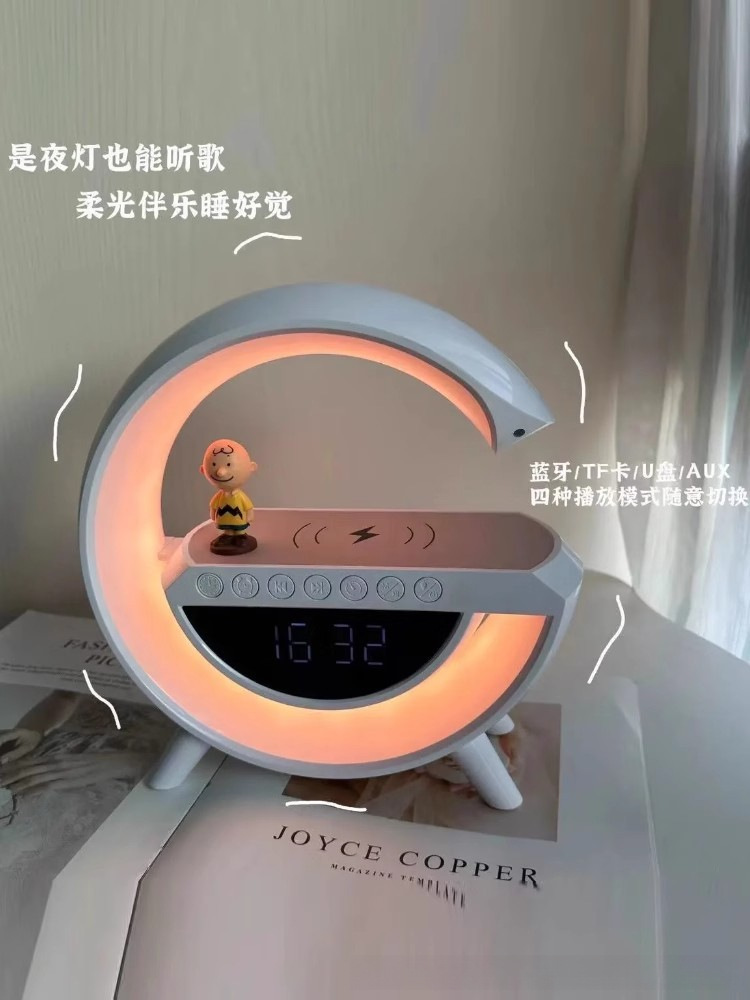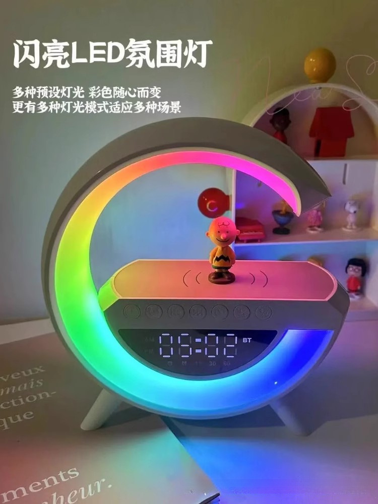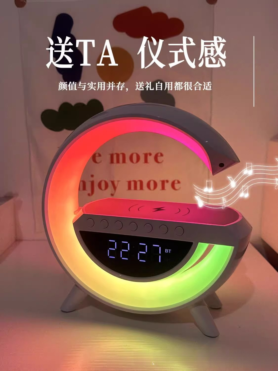 Altavoces Bluetooth cargador inalámbrico ambiente multifuncional luz nocturna despertador regalo de cumpleaños sonido de teléfono móvil práctico para el hogar