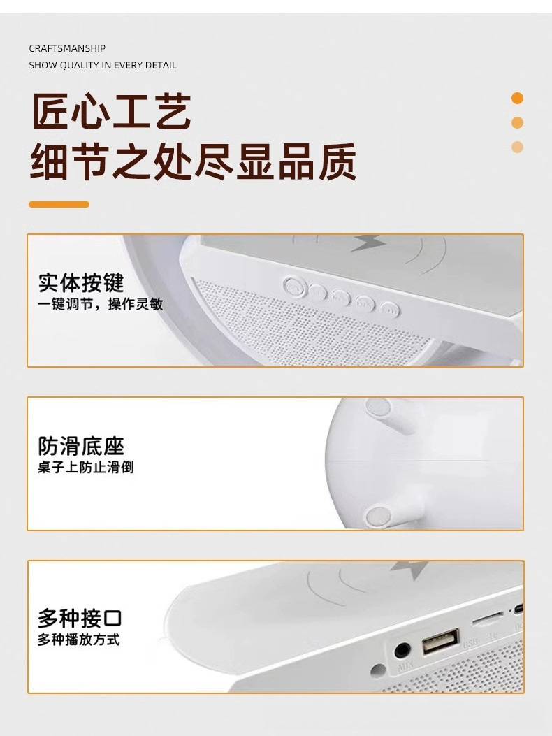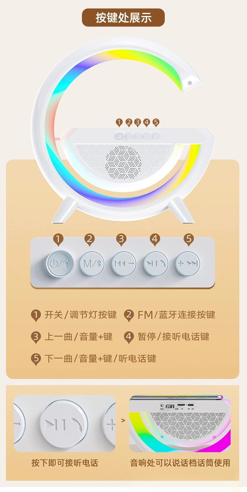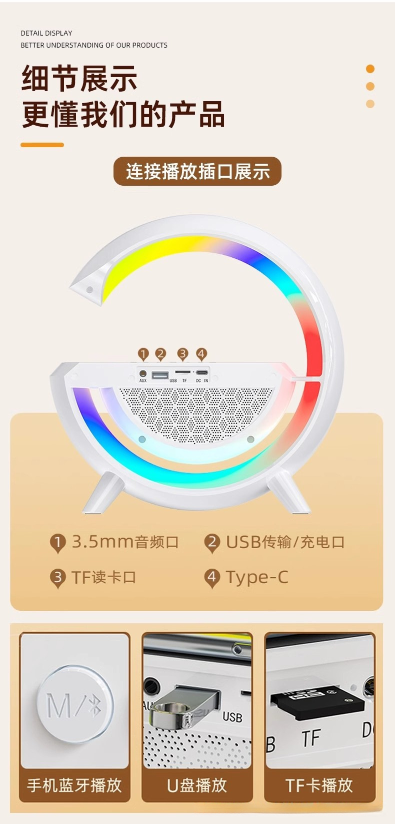 Altavoces Bluetooth cargador inalámbrico ambiente multifuncional luz nocturna despertador regalo de cumpleaños sonido de teléfono móvil práctico para el hogar