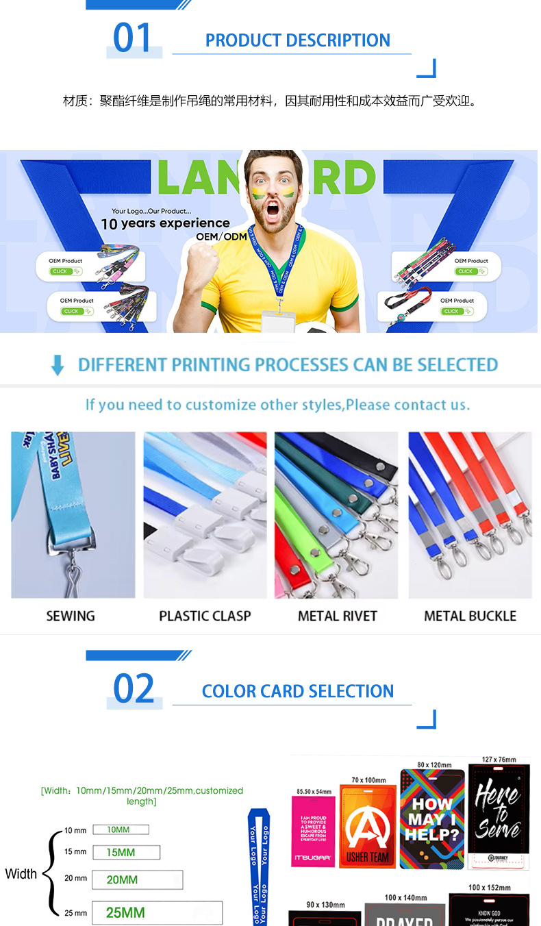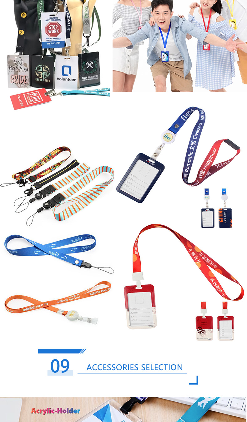 Fábrica de tarjetas de trabajo colgantes de doble cara serigrafía LOGO cuerda de teléfono móvil personalizada transferencia térmica colgante cuello colgante personalizado