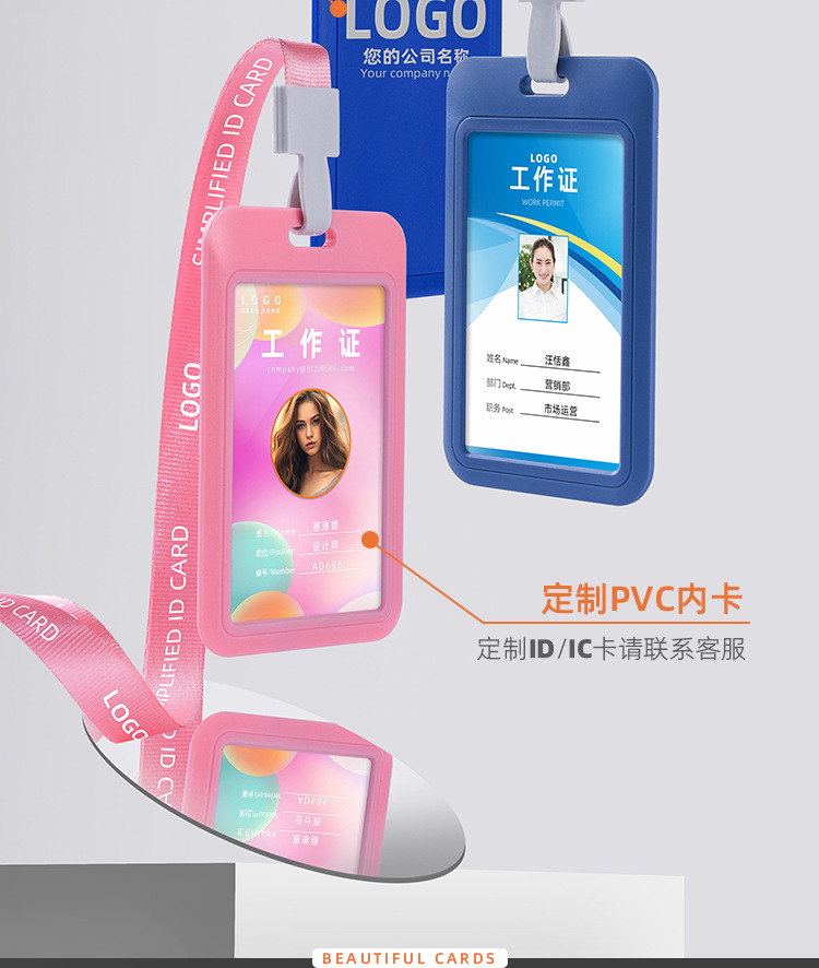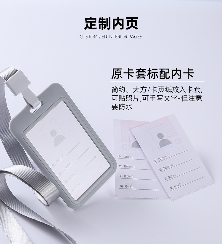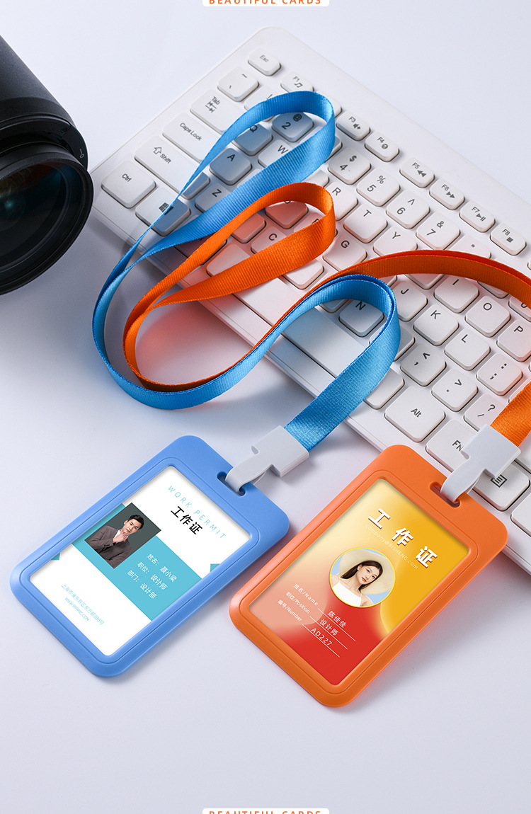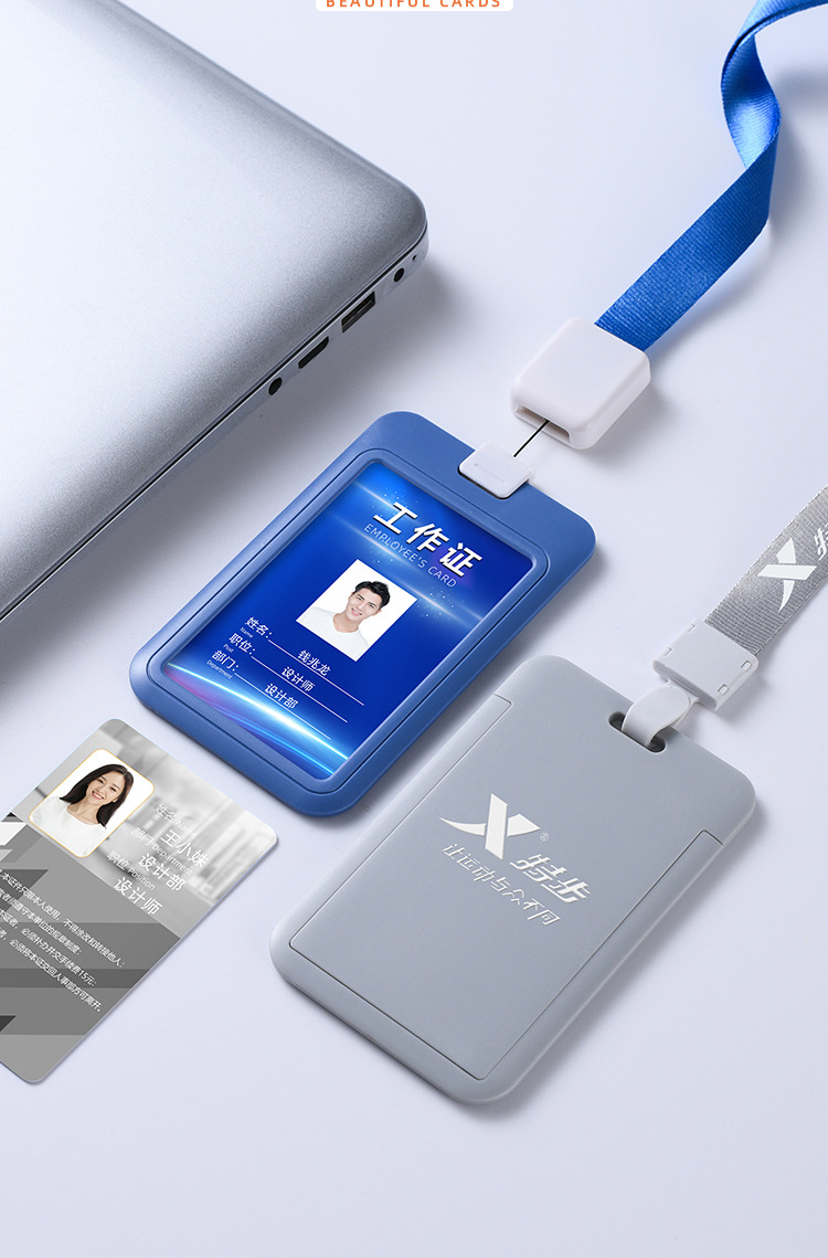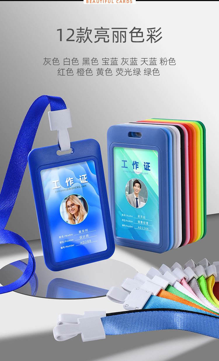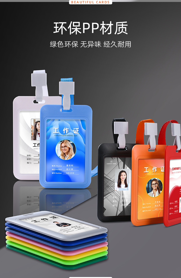 Cubierta de tarjeta de trabajo cubierta de tarjeta de empuje cubierta deslizante cubierta protectora placa de certificado de empleado de color sólido cuerda retráctil cuerda de fijación