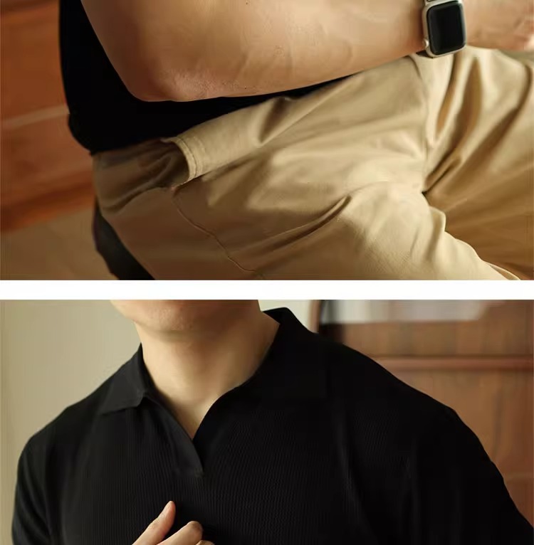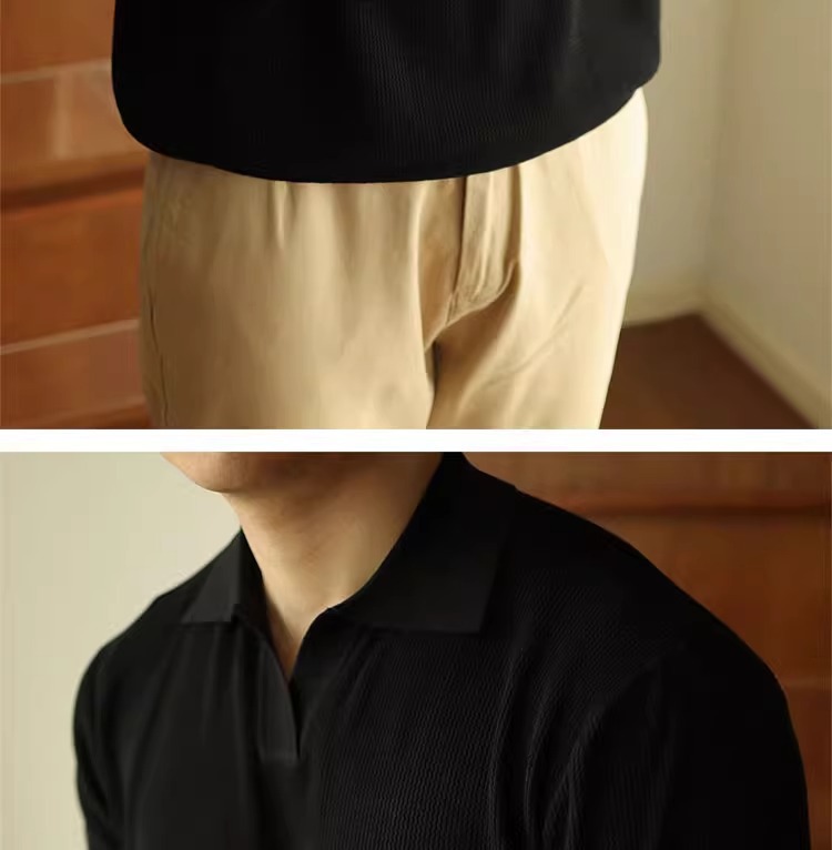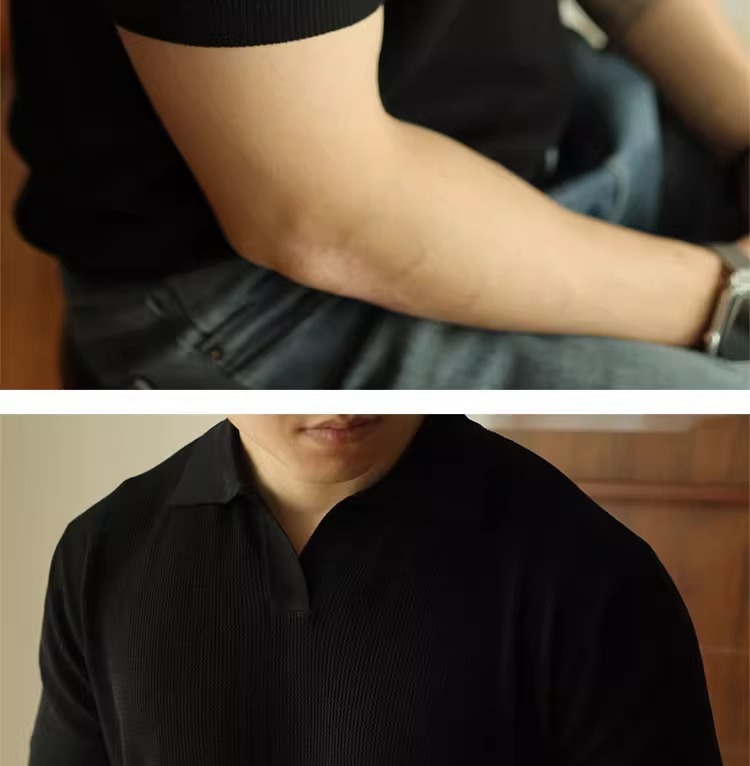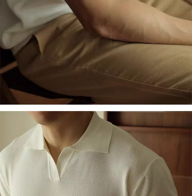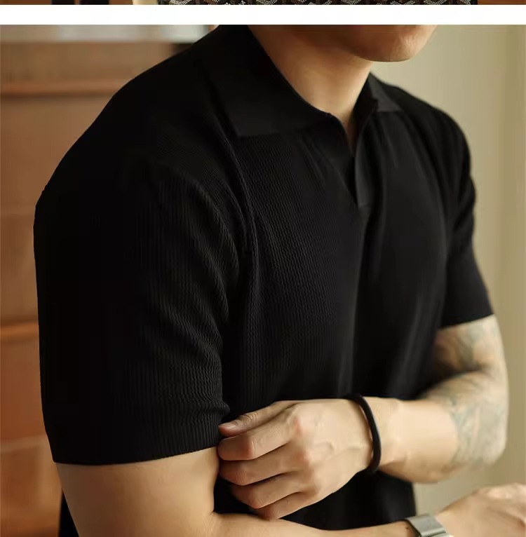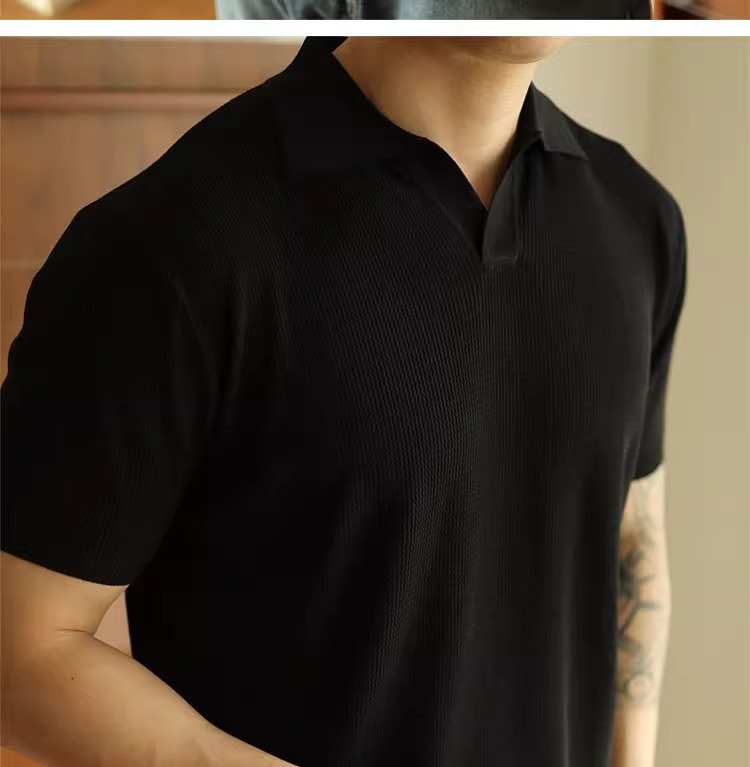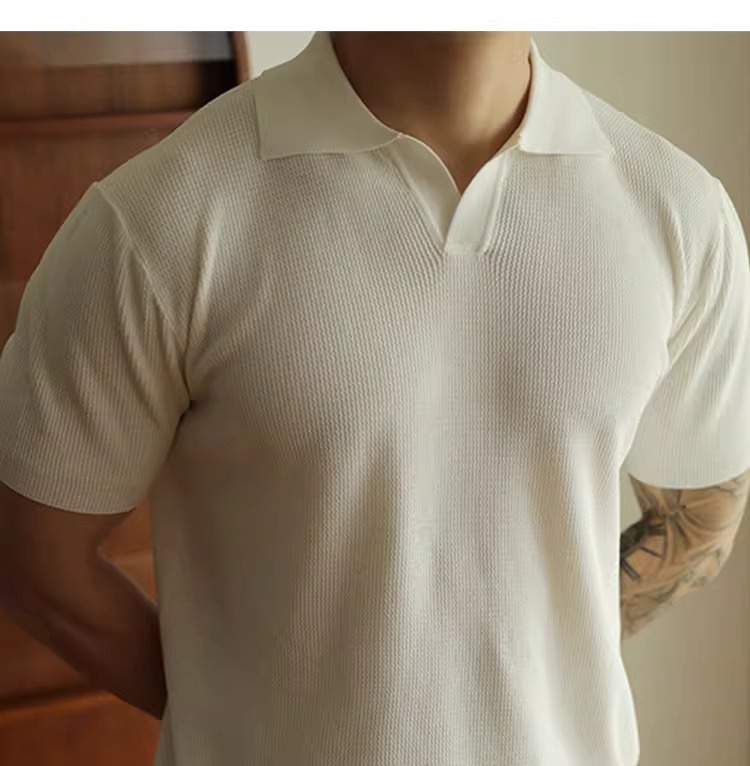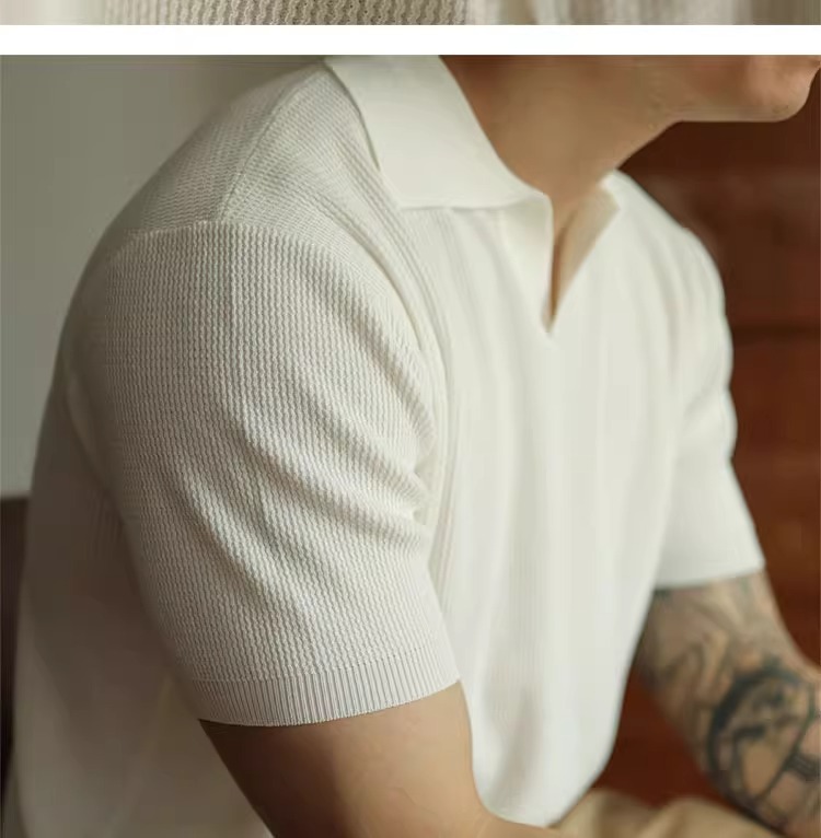 Nuevo estilo americano de polo de cuello en V para hombre diseño camiseta de punto de manga corta camiseta de solapa suelta primavera y verano