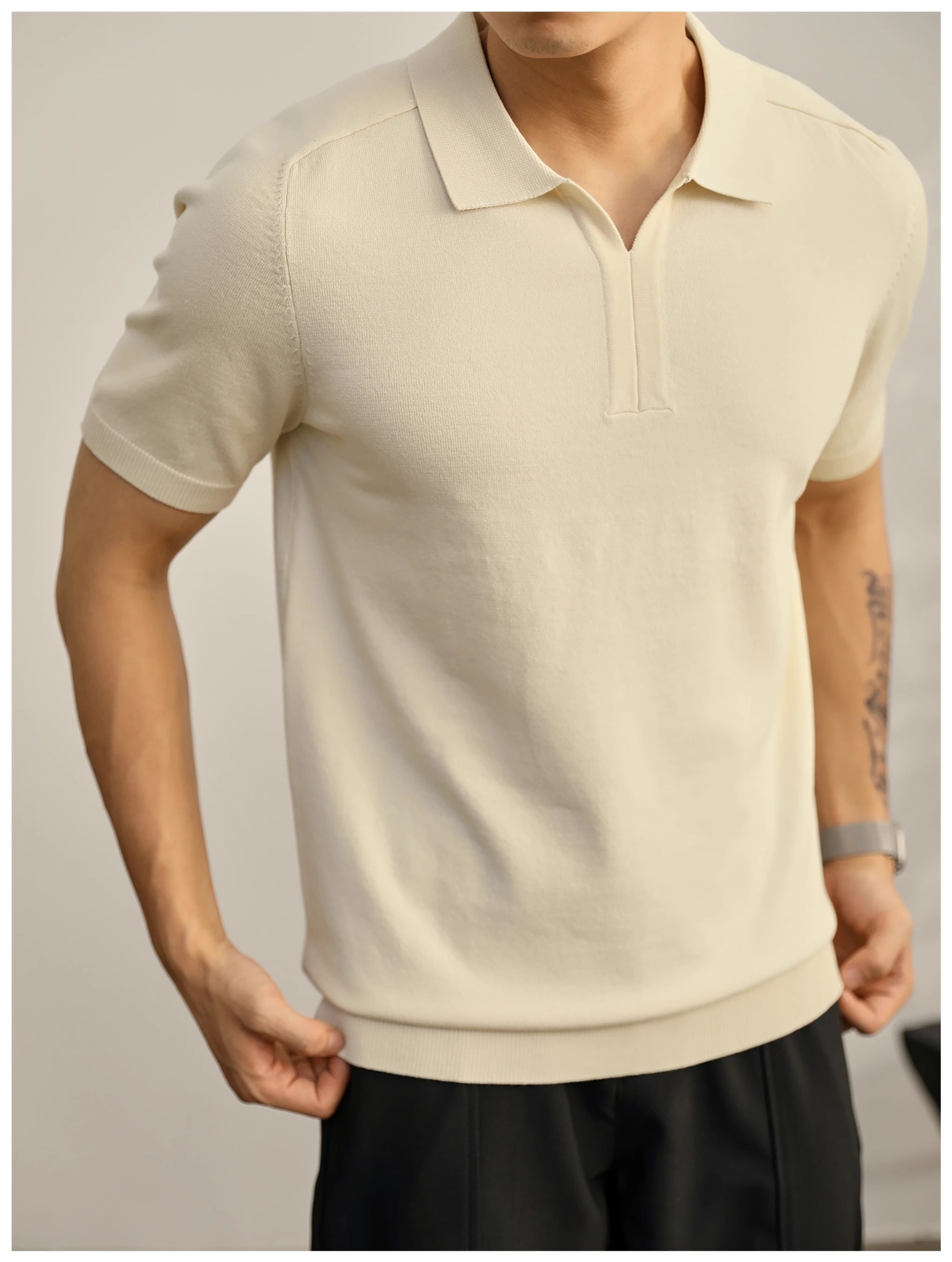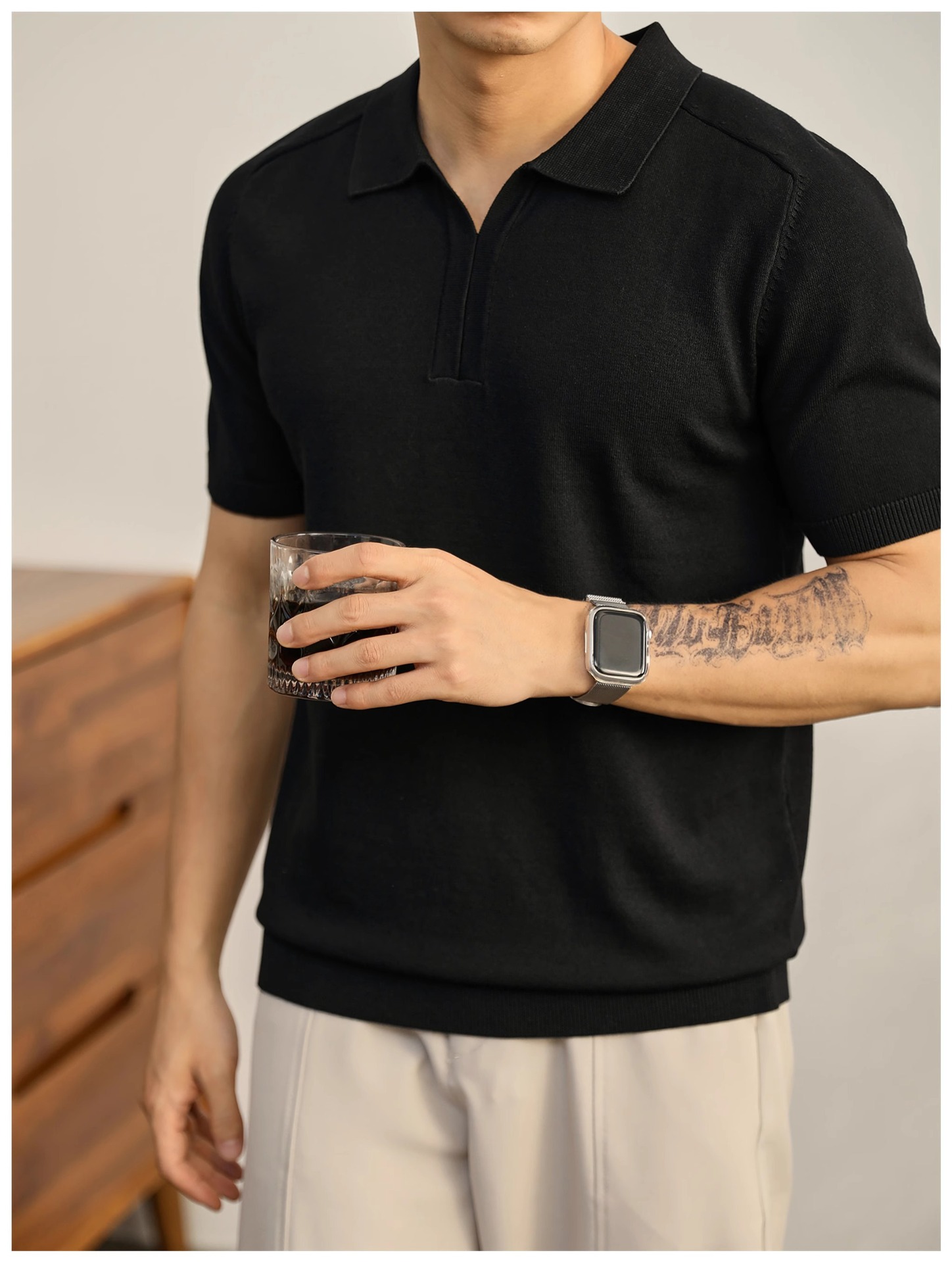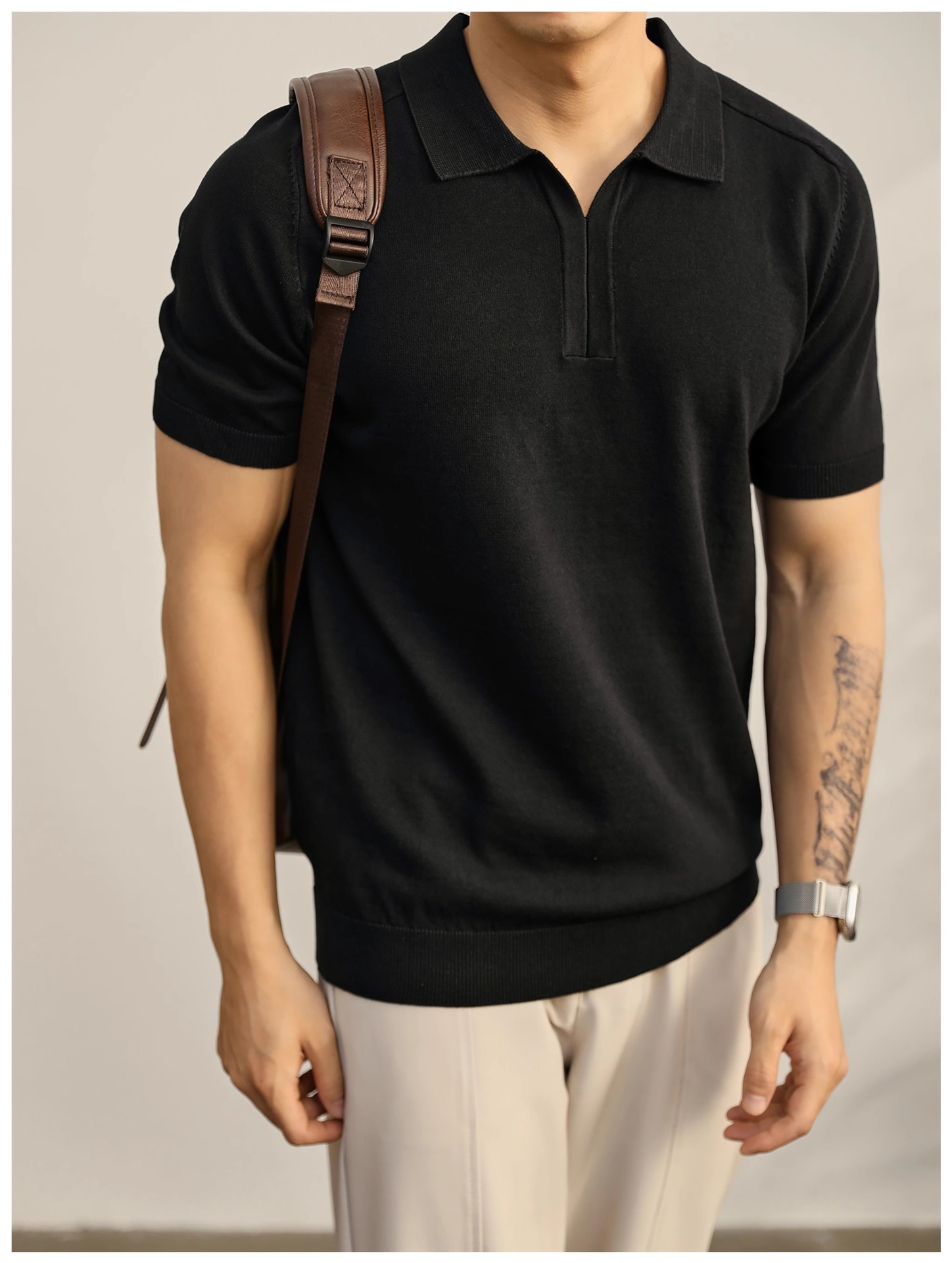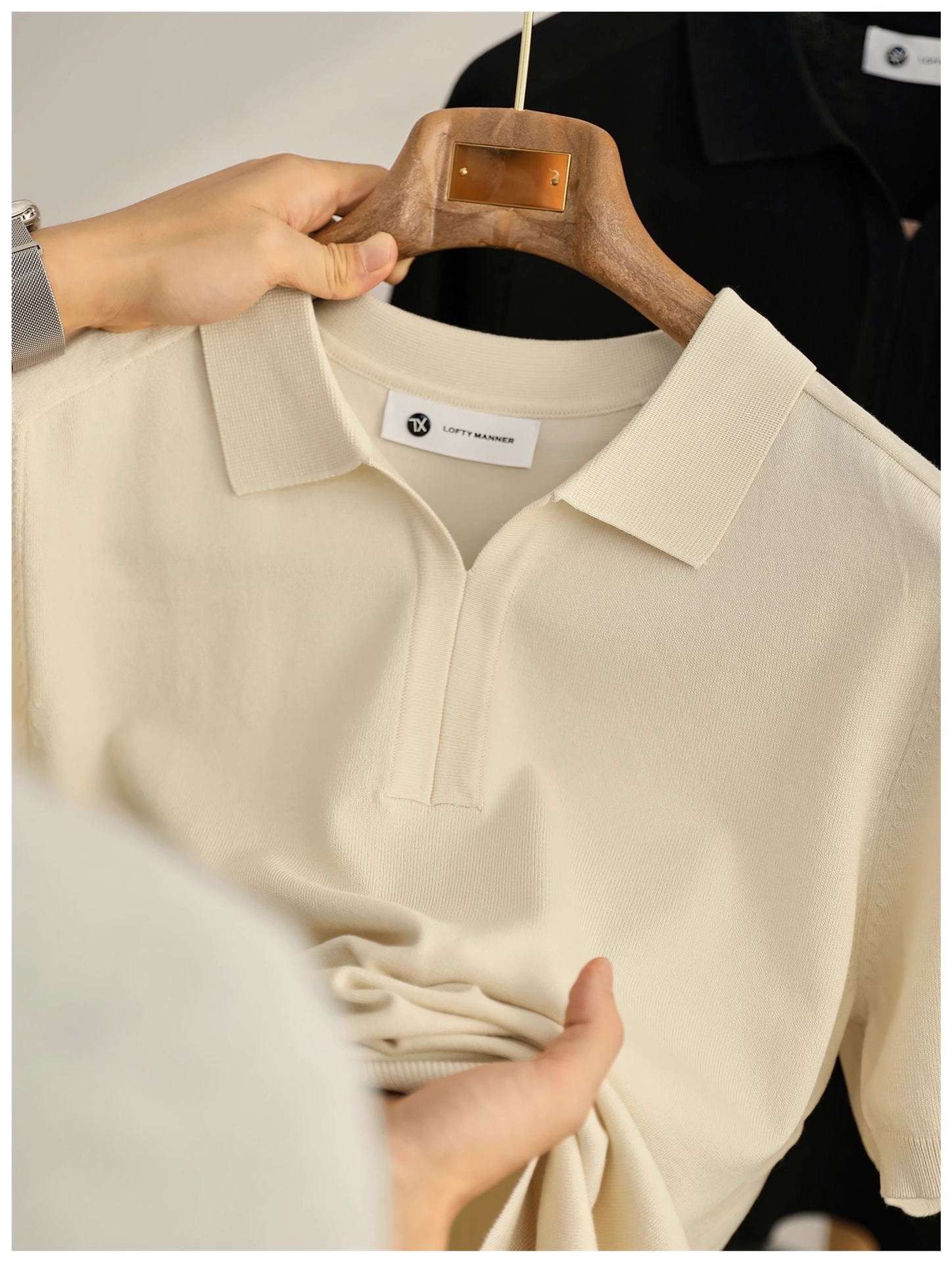 POLO camisa solapa suéter de manga corta cuello de gaviota masculino negocio británico delgado verano hielo seda comercio exterior transfronterizo al por mayor