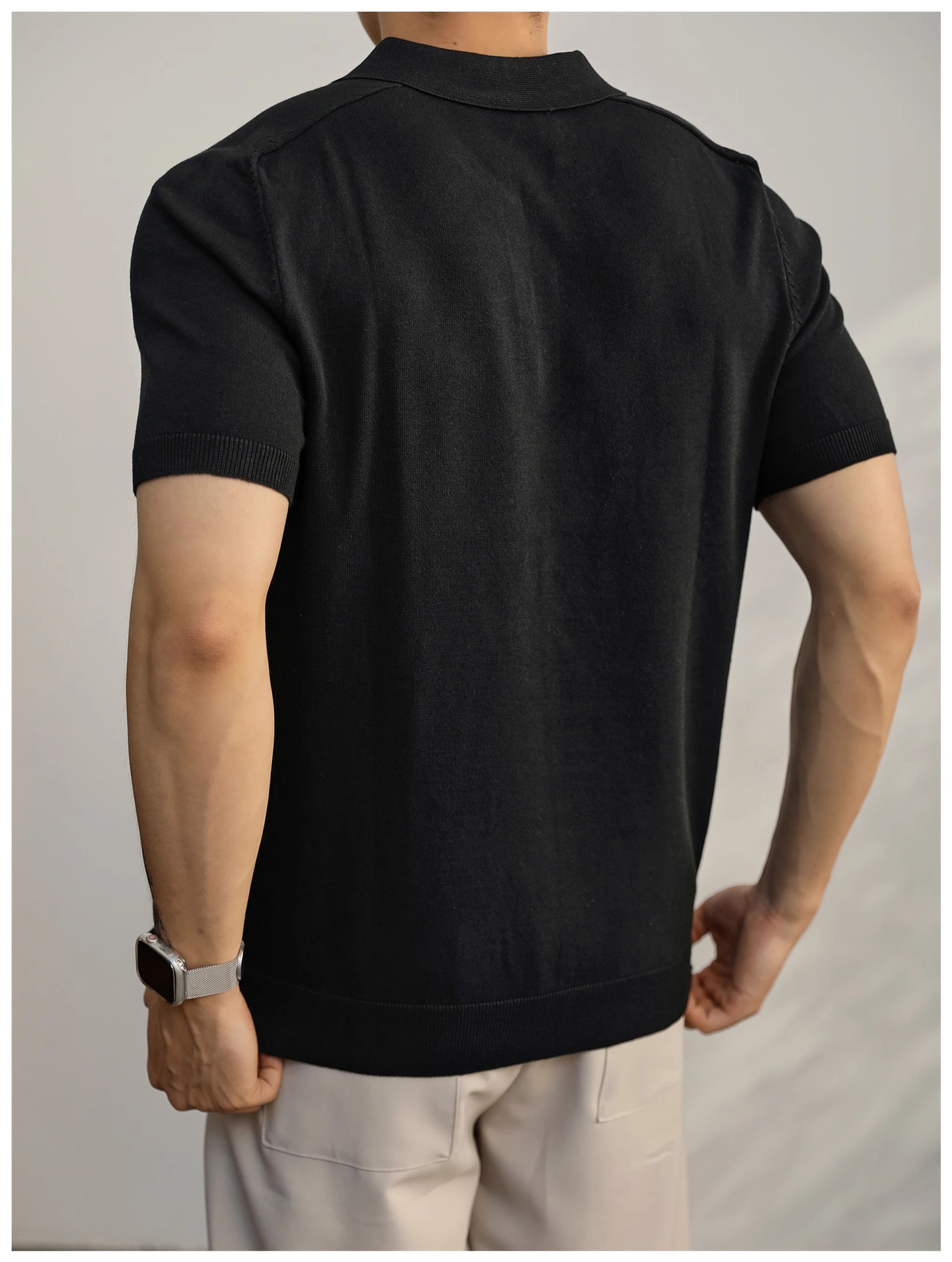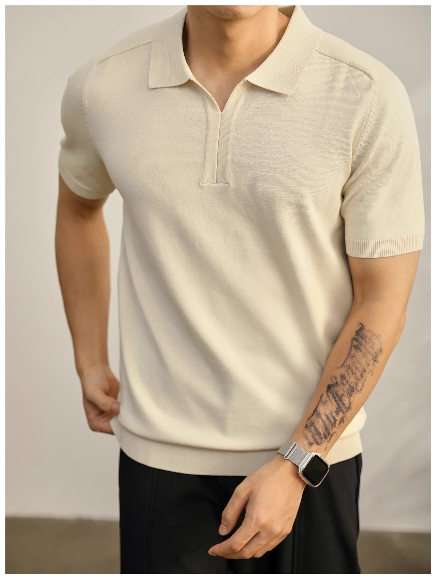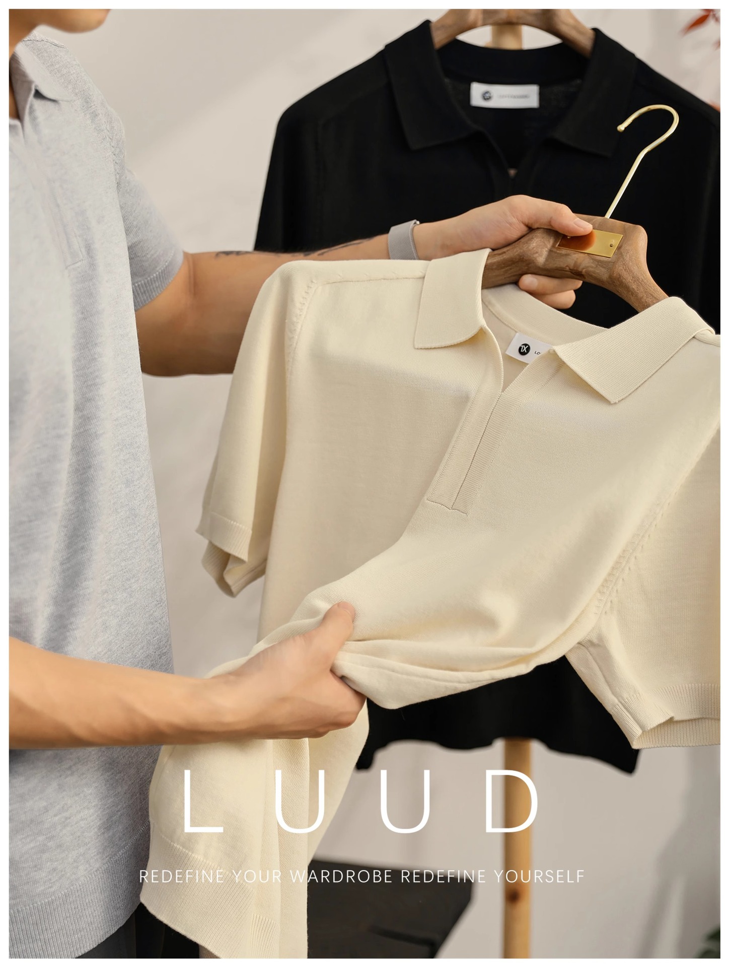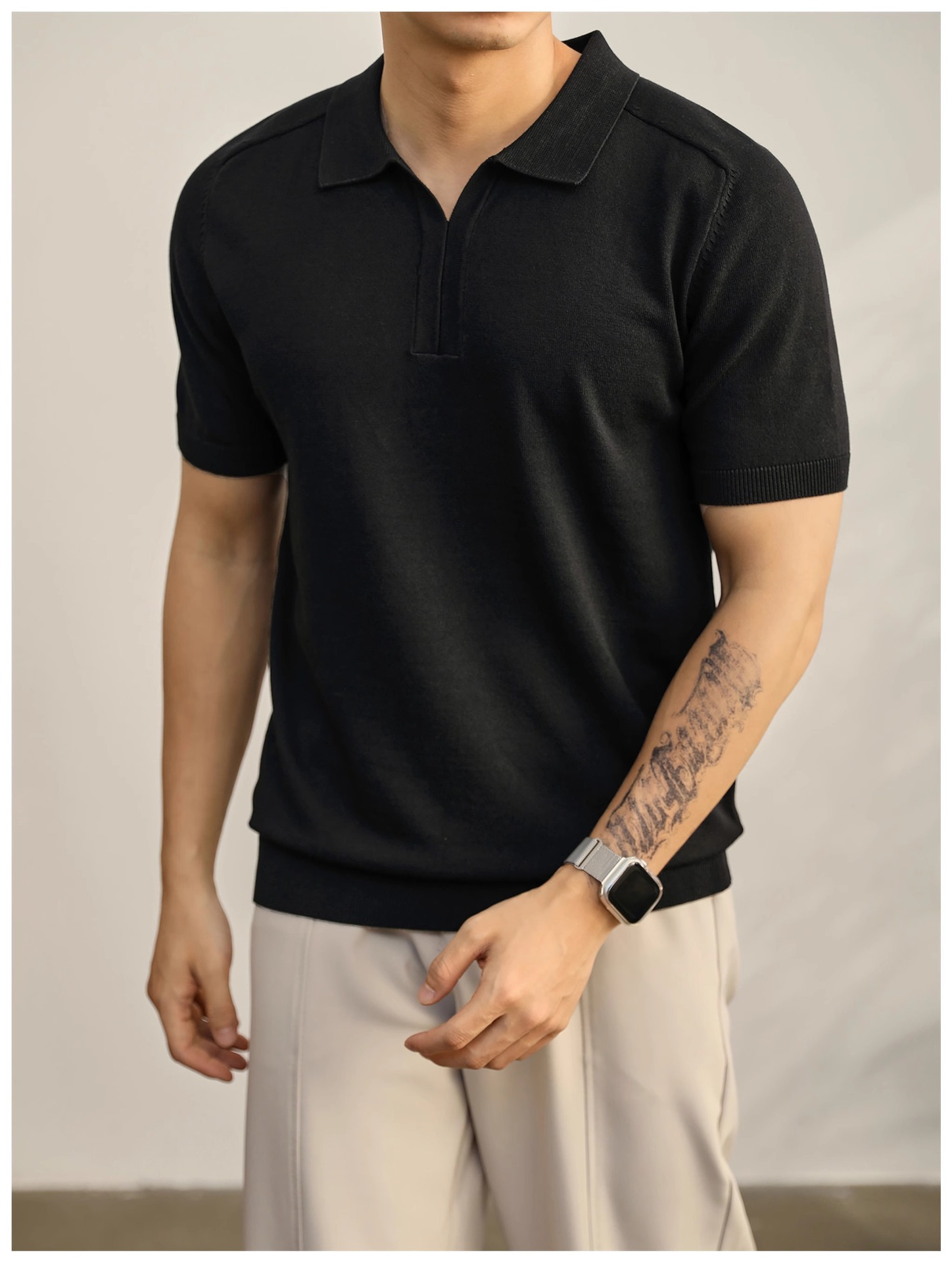 POLO camisa solapa suéter de manga corta cuello de gaviota masculino negocio británico delgado verano hielo seda comercio exterior transfronterizo al por mayor
