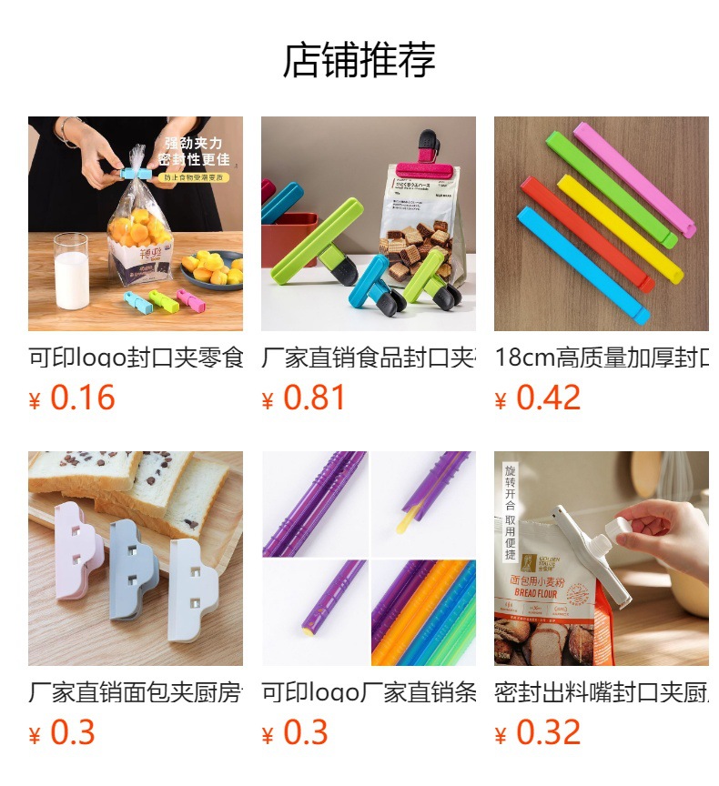 Clip de sellado creativo de 8cm se puede establecer logotipo de bolsas de plástico de sellado de bocadillos frescos al por mayor clip