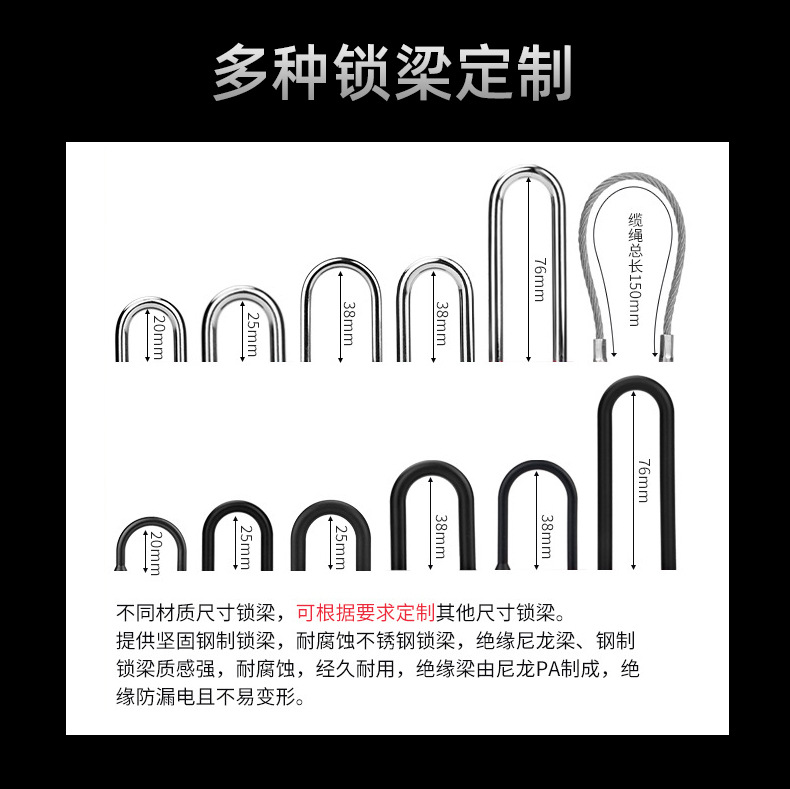 Candado de seguridad industrial tipo Bedi 38mm de ingeniería de aislamiento de plástico equipo de energía cerradura de listado LOTO