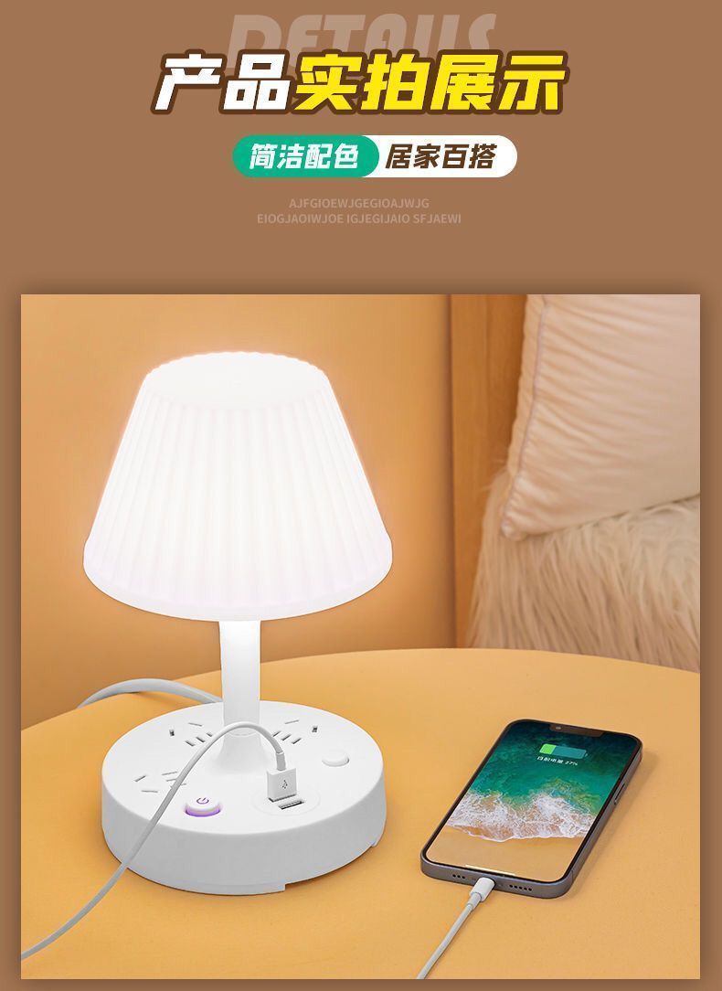 Lámpara de escritorio LED multifuncional socket poroso con USB dormitorio de estudiantes enchufe tablero de conexión enchufe de fila lámpara de cabecera de dormitorio doméstica