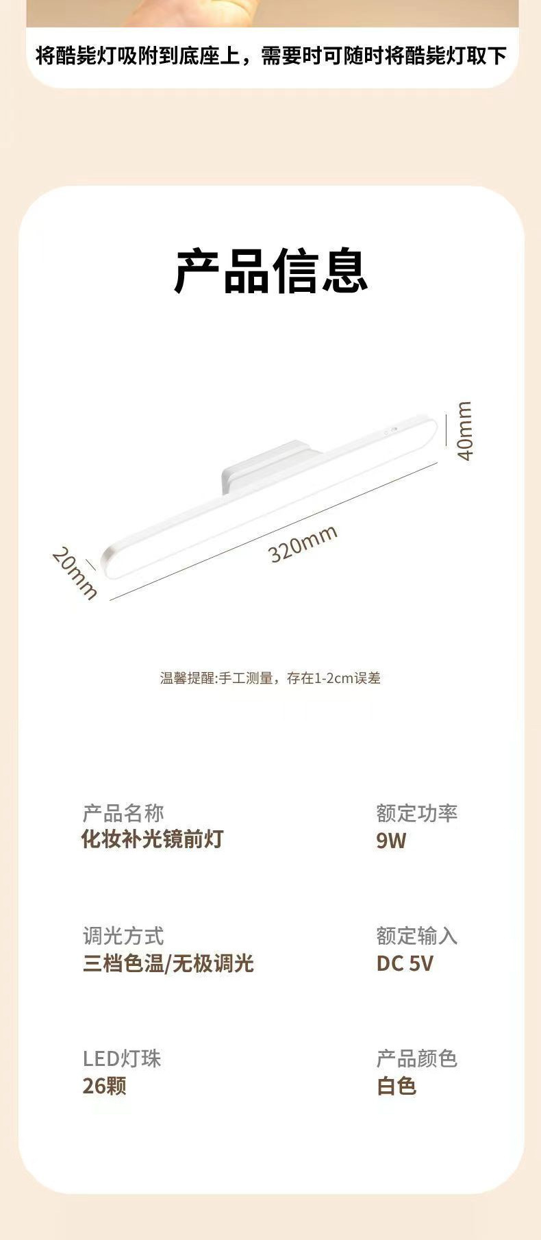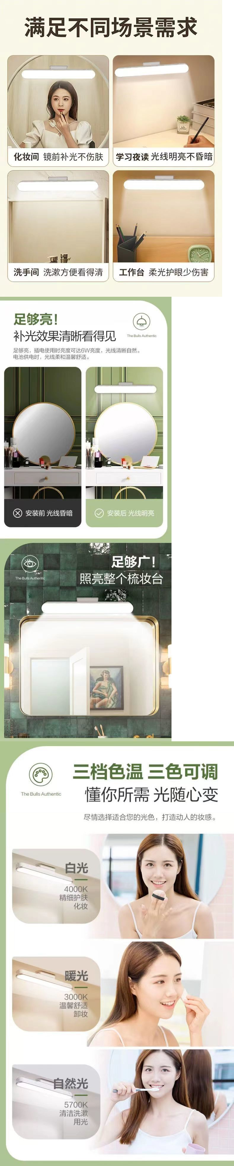 Luz LED de relleno para maquillaje, luz autoadhesiva para espejo de baño sin taladro, luz para maquillarse, nuevo modelo especial para uso doméstico.
