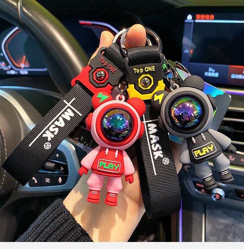 Keychain exquisito oso personalidad muñeca caricatura hombre y mujer llave de coche colgante bolsos colgante muñeca llavero