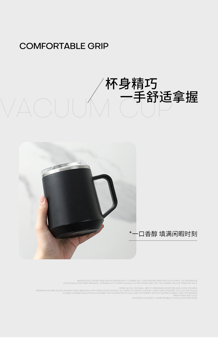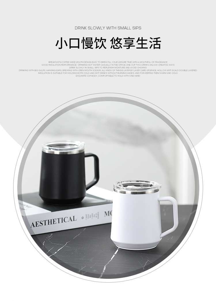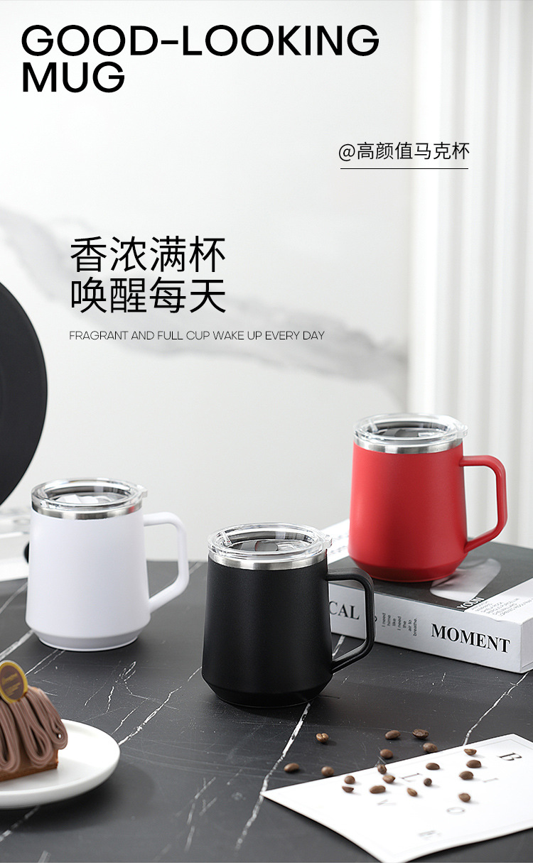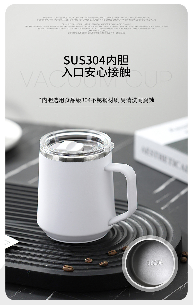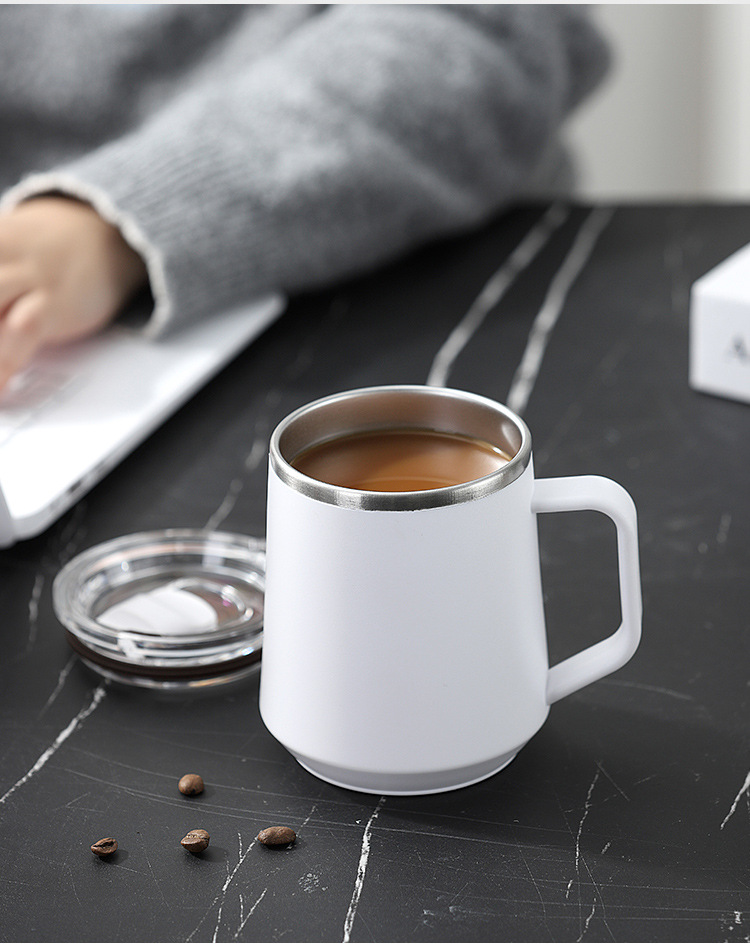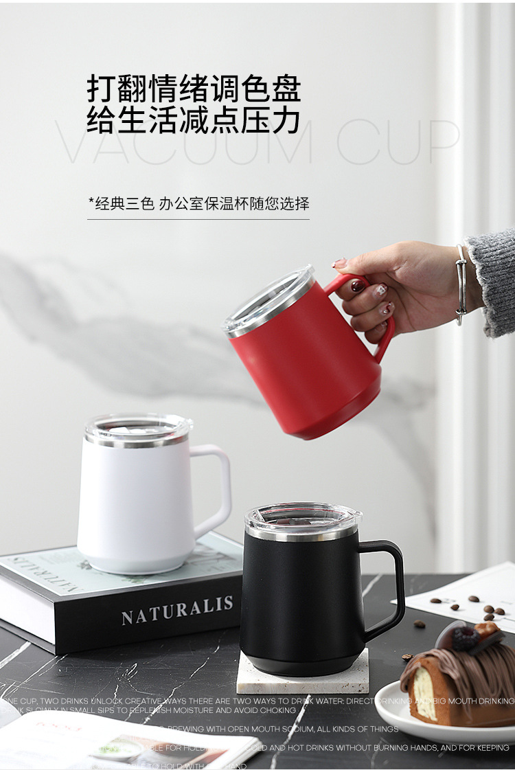 Taza nórdica ins Taza de vacío de oficina simple con tapa con mango Taza de café de acero inoxidable 304
