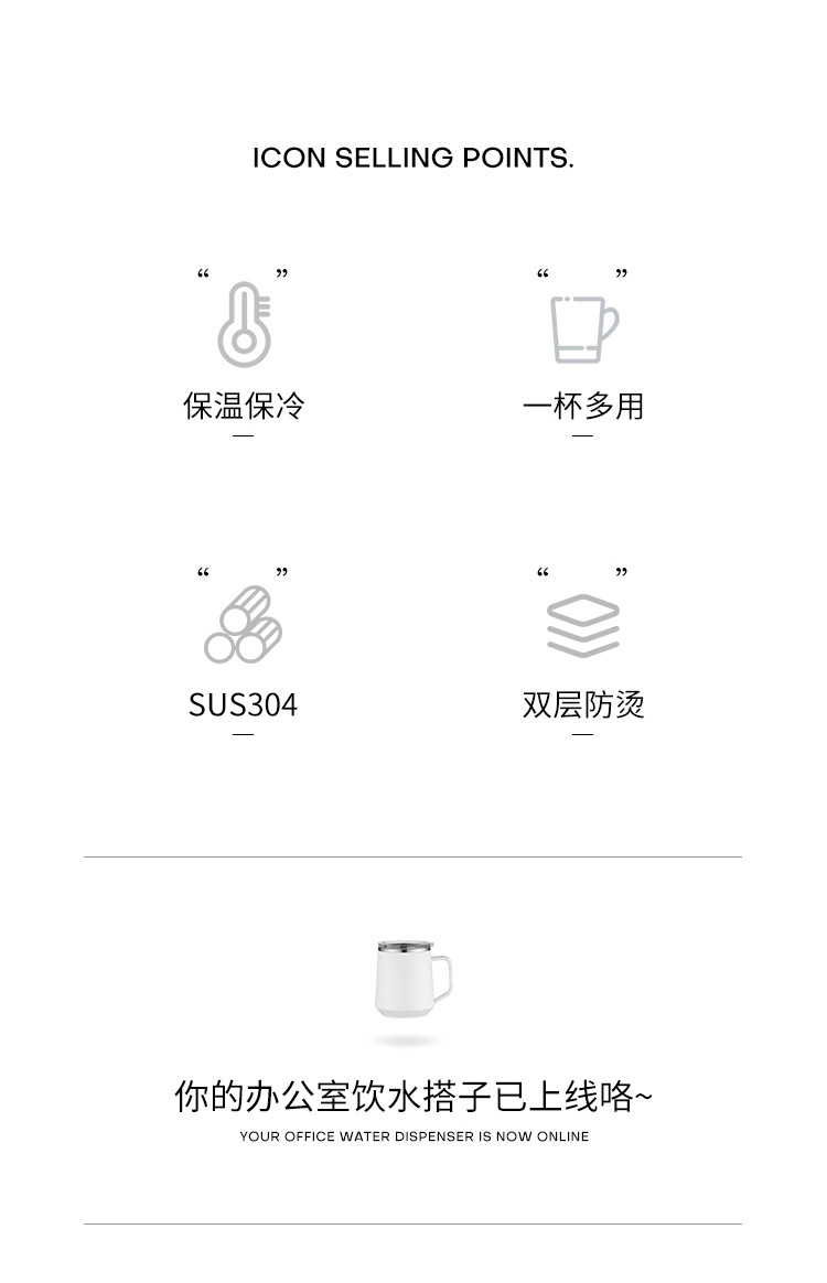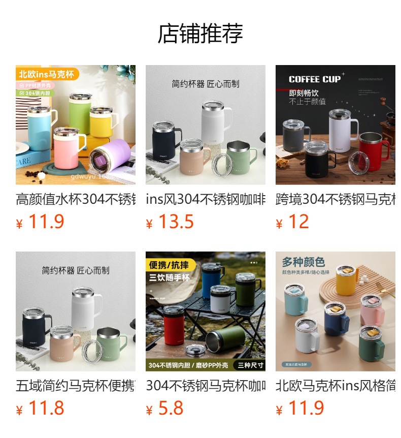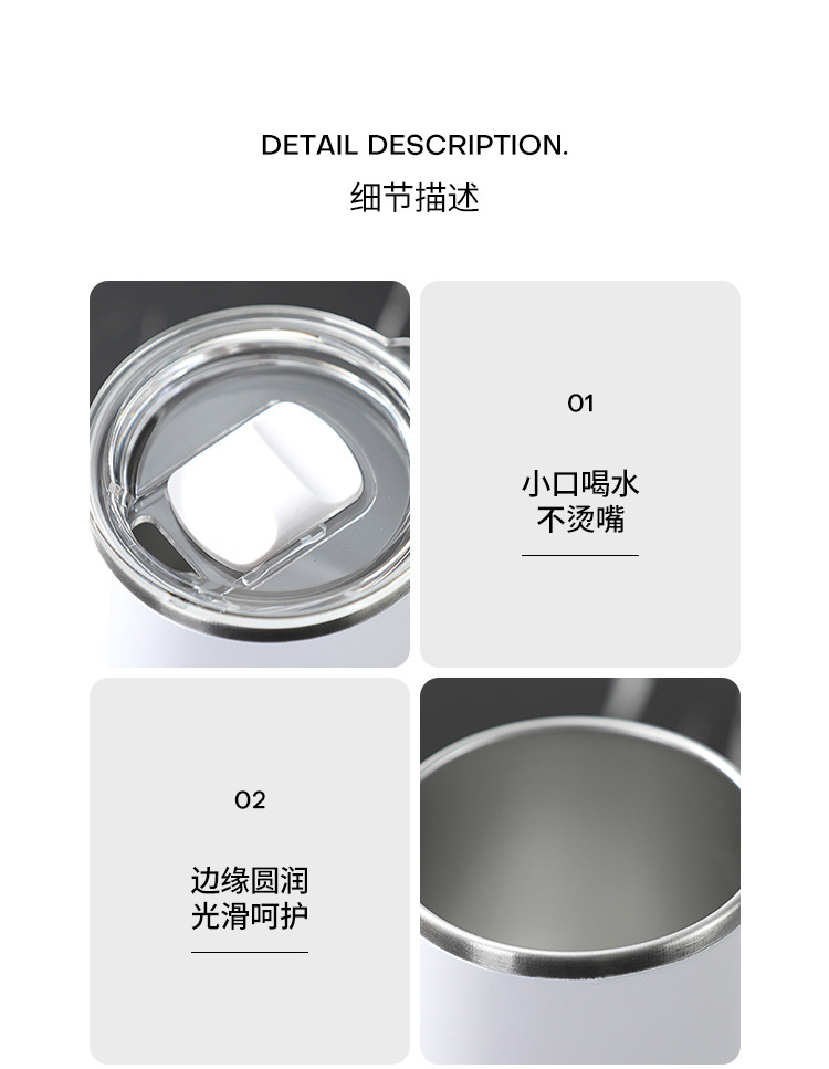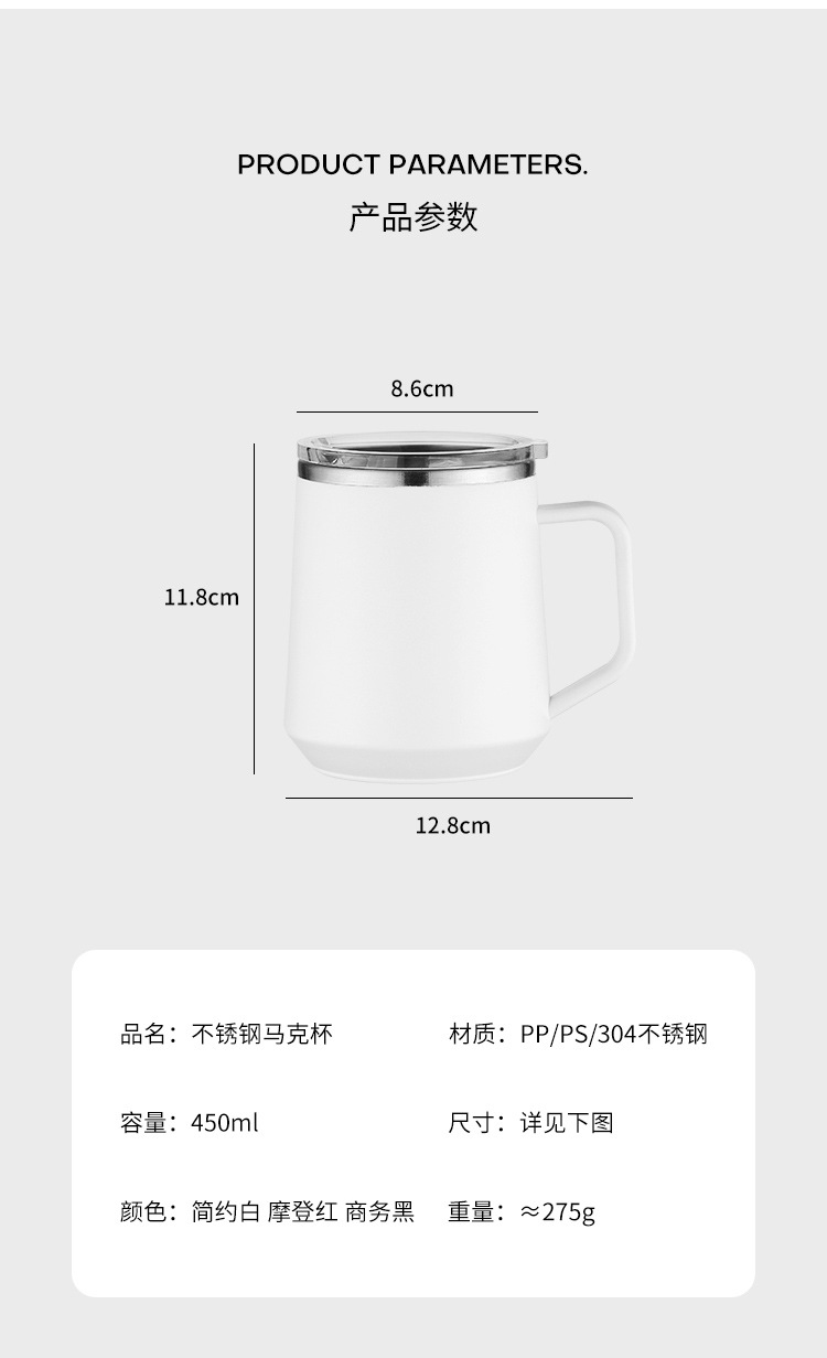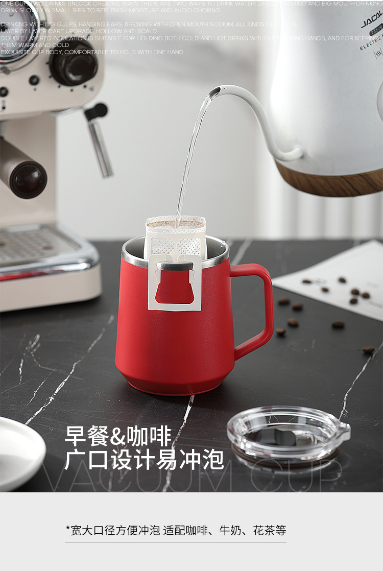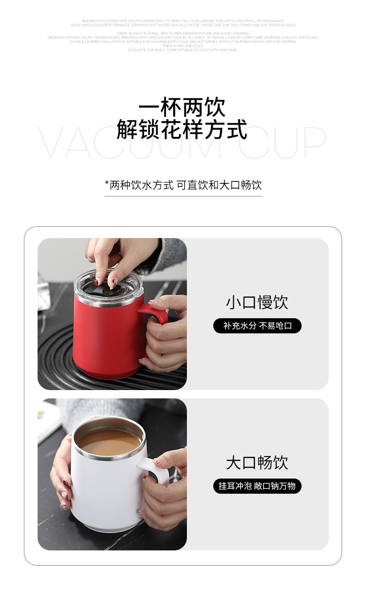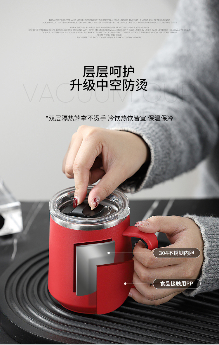 Taza nórdica ins Taza de vacío de oficina simple con tapa con mango Taza de café de acero inoxidable 304