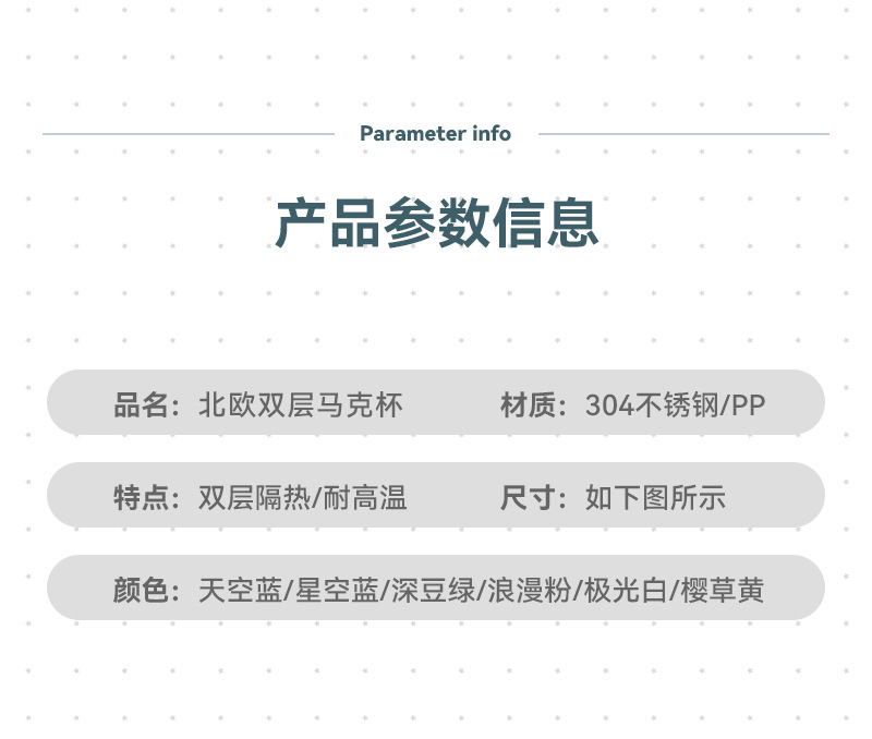 | Color | Aurora blanca, polvo romántico, verde frijol oscuro, cielo azul, cielo estrellado azul, Cerezo amarillo |