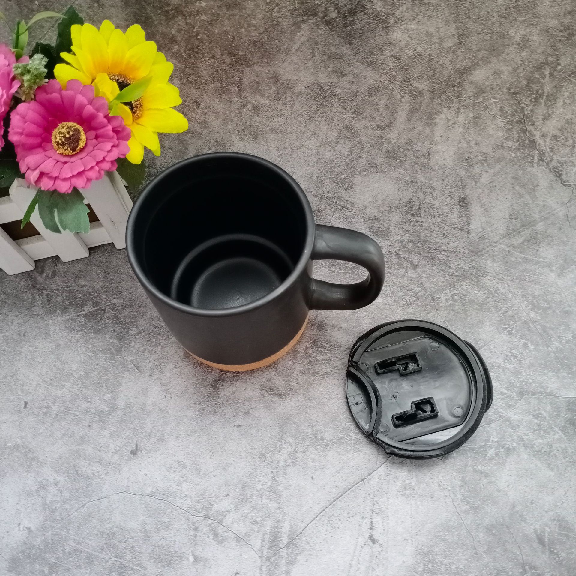Taza de cerámica personalizada ROCMOK taza de cerámica simple creativa con tapa Base de corcho Taza de aislamiento térmico