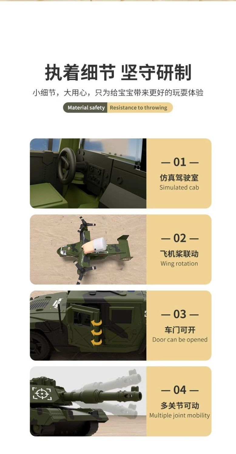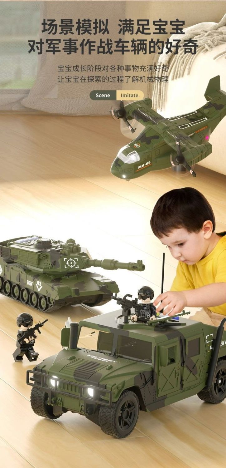 Grande DE LOS NIÑOS Vehículo blindado tanque juguete modelo helicóptero militar coche misil traje 3 a 9 años masculino