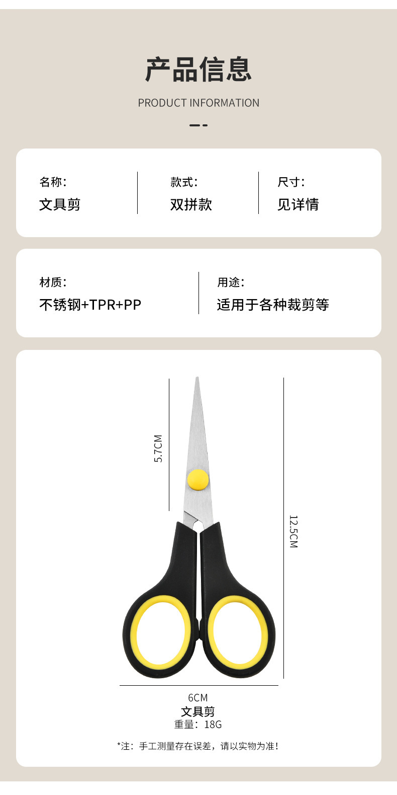 Tijeras de papelería de oficina Tijeras de oficina Tijeras de acero inoxidable para el hogar Tijeras de corte de papel de arte Tijeras de hilo Tijeras manuales
