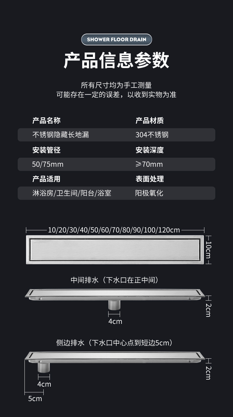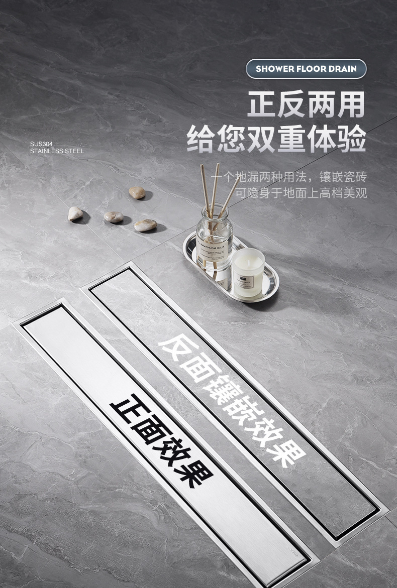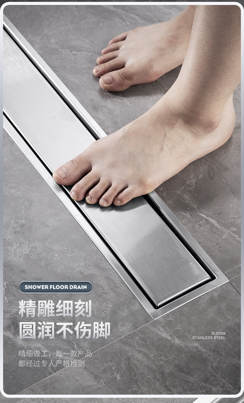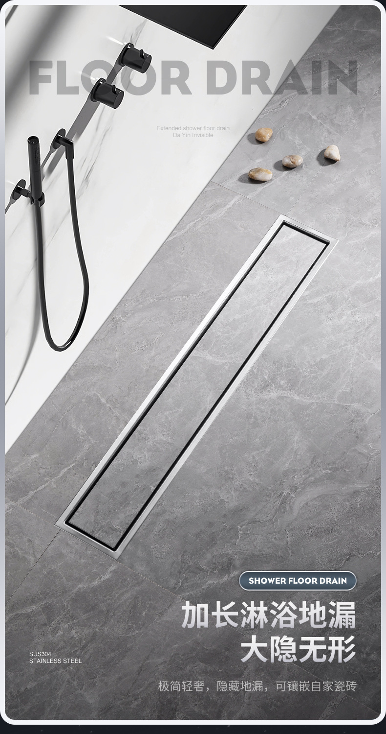 drenaje de piso largo invisible rectangular antiolor a prueba de insectos de doble cara baño alargado drenaje puede incrustar azulejos