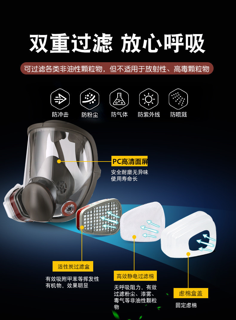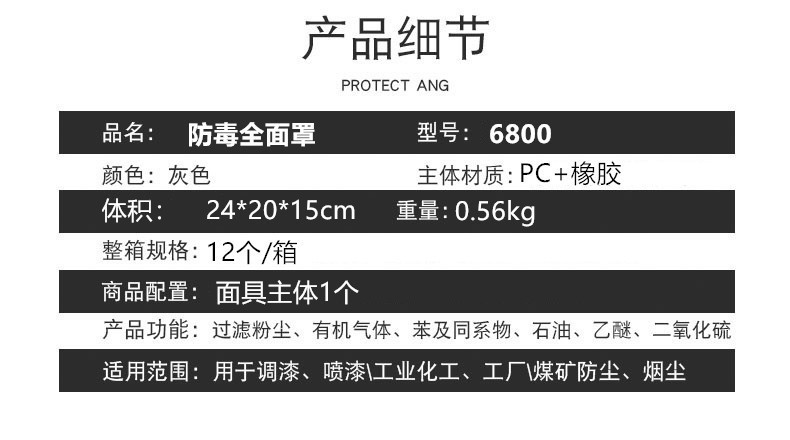 Máscara de gas máscara completa pintura en aerosol pulido máscara protectora protección contra incendios gran vista capucha especial a prueba de polvo transfronteriza 6800