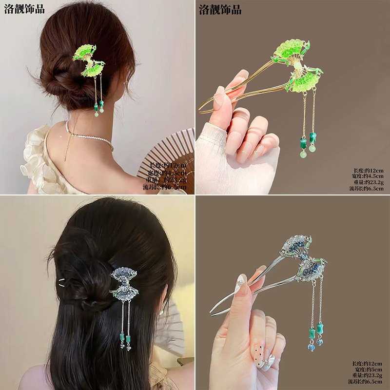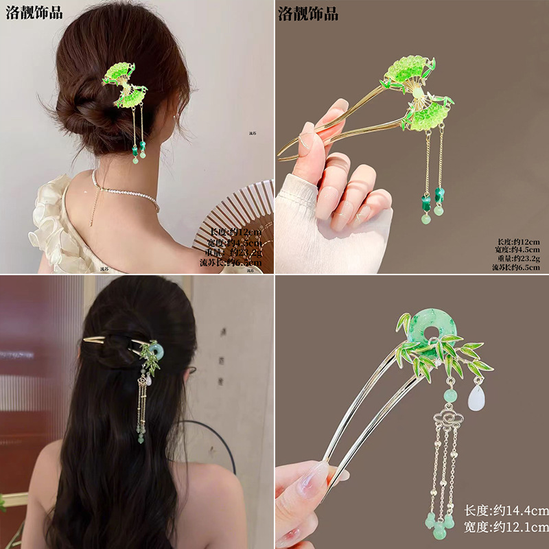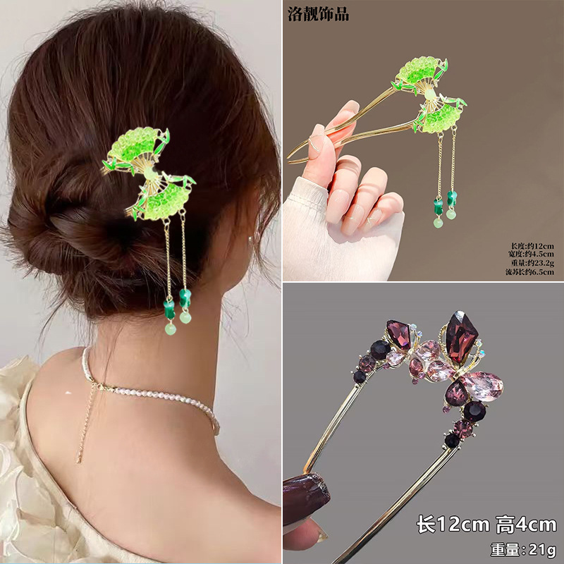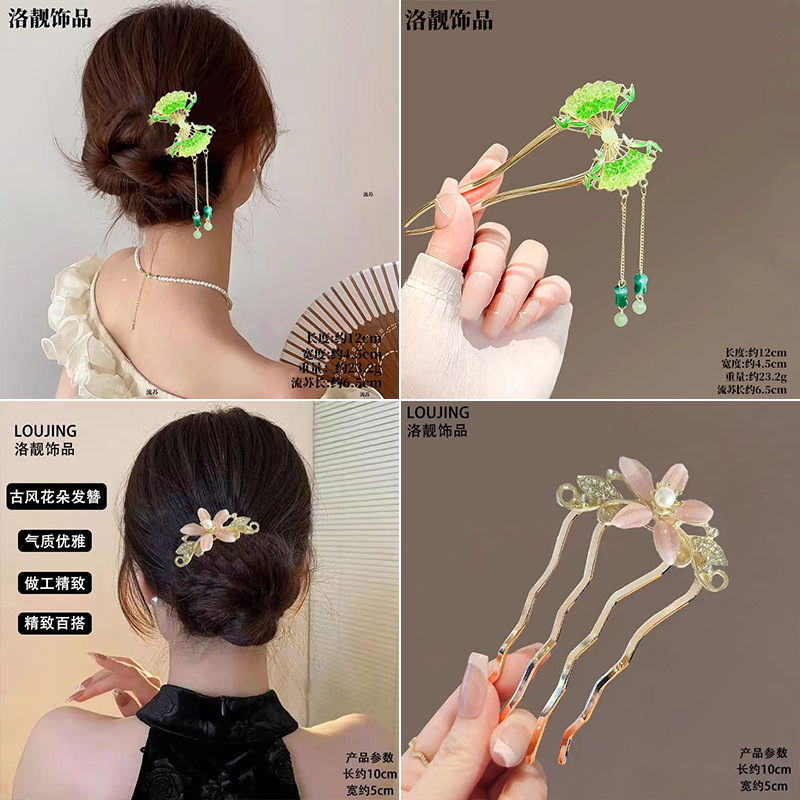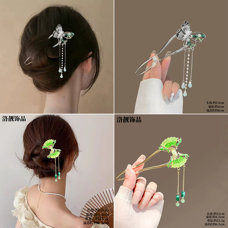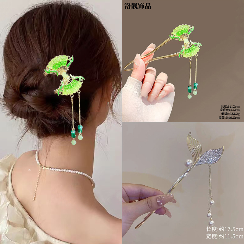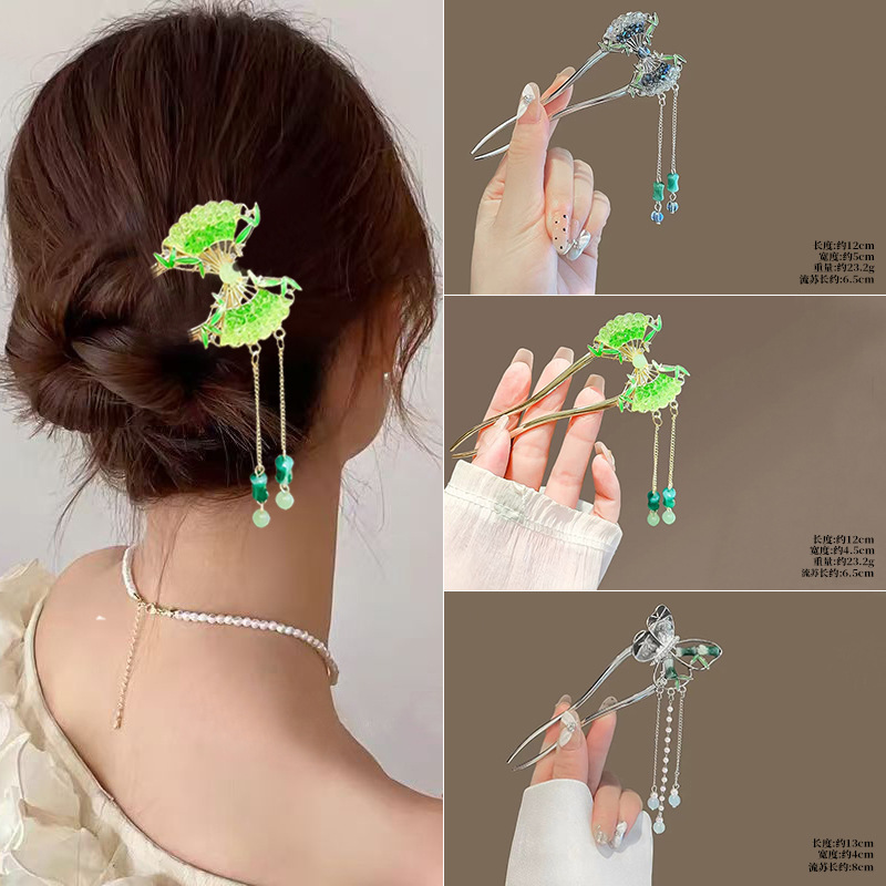 Gufeng Hanfu Accesorios para el cabello Horquilla para el cabello en la parte posterior de la cabeza Chica de estilo chino Too de balanceo con flecos Horquilla Accesorios para el cabello al por mayor