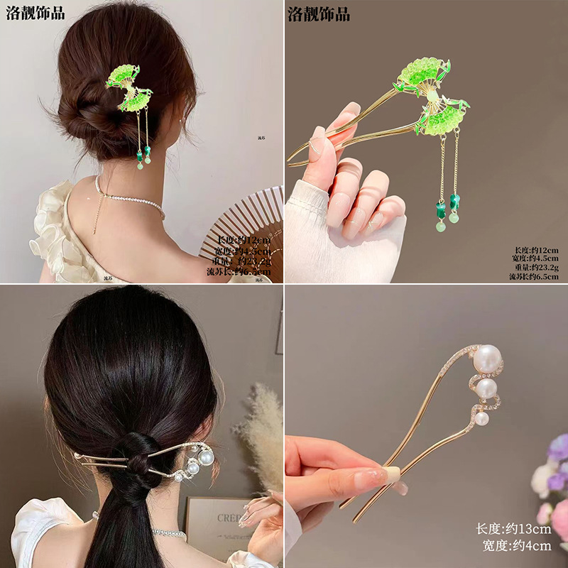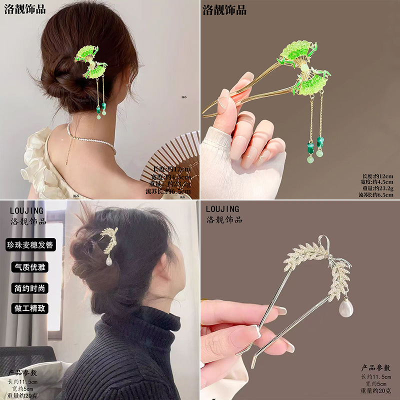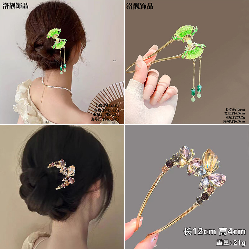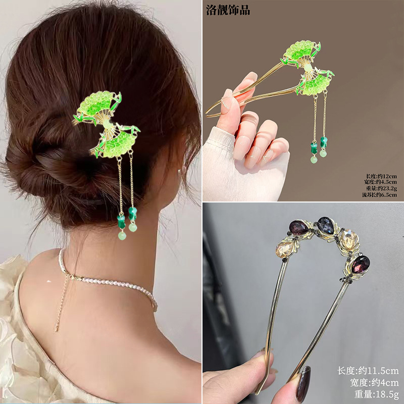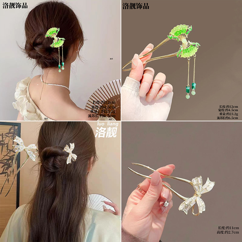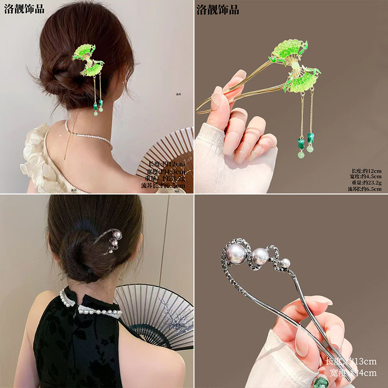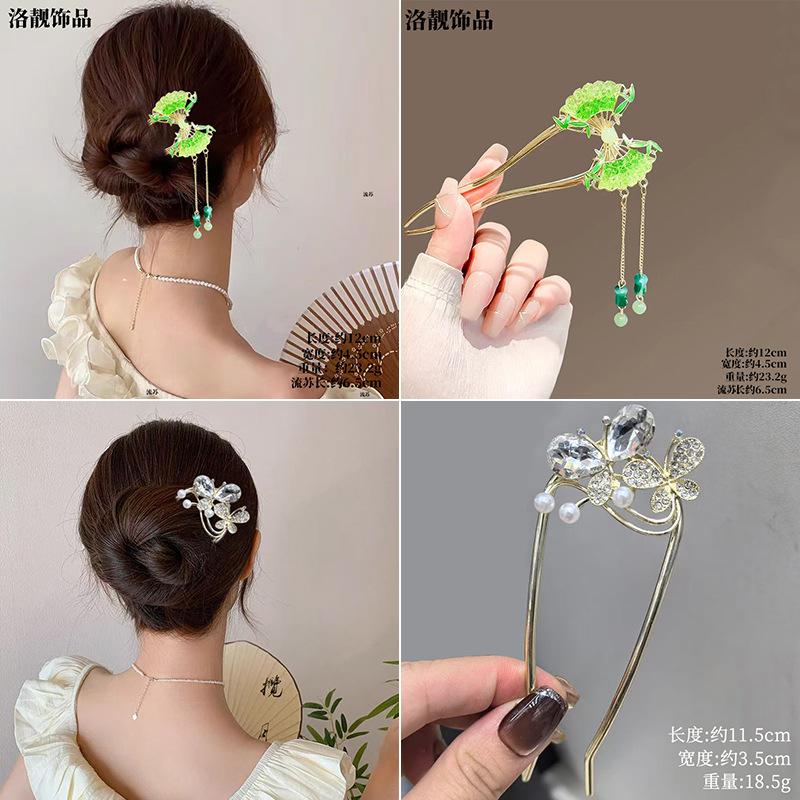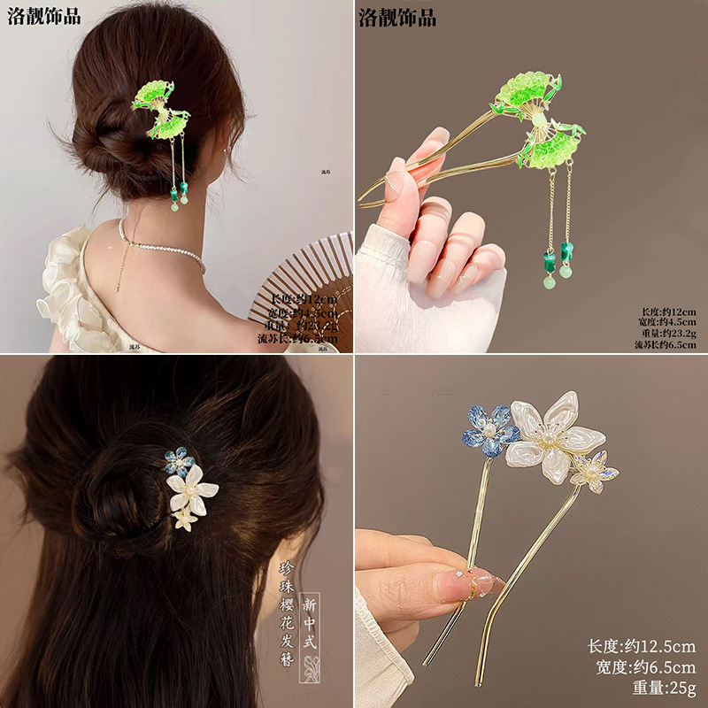 Gufeng Hanfu Accesorios para el cabello Horquilla para el cabello en la parte posterior de la cabeza Chica de estilo chino Too de balanceo con flecos Horquilla Accesorios para el cabello al por mayor