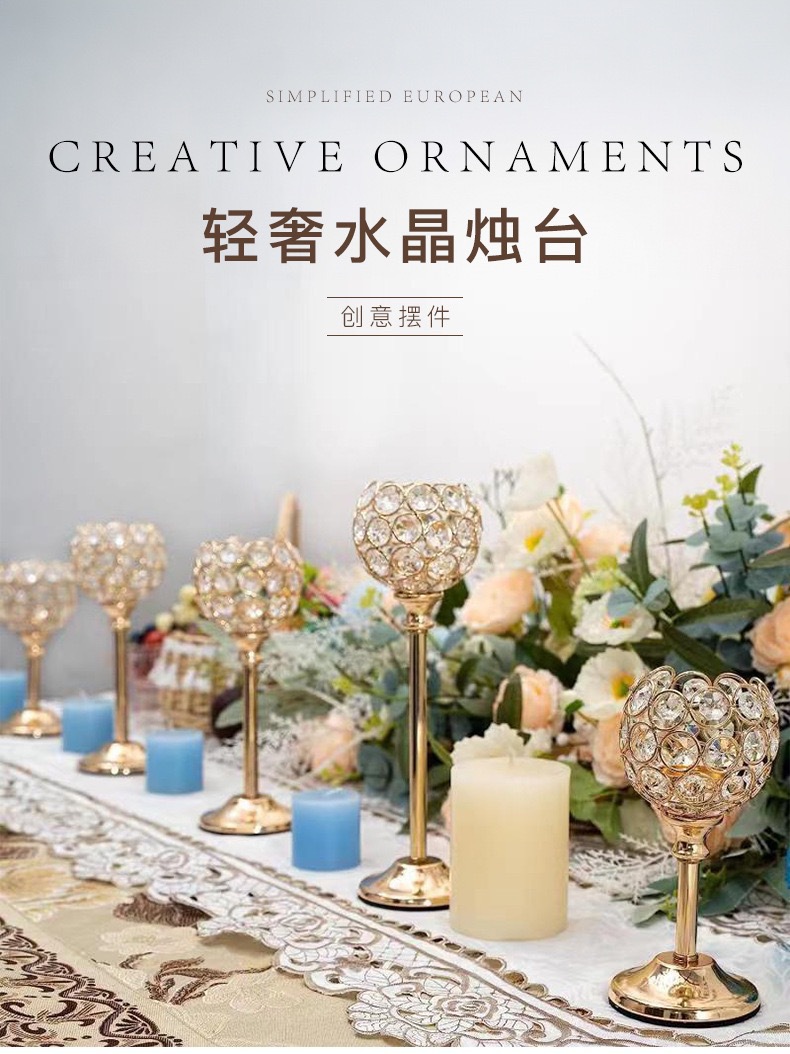 Candelaria de cristal de estilo europeo ornamentos metálicos creativos bodas hoteles hogares vela accesorios de cena artesanía