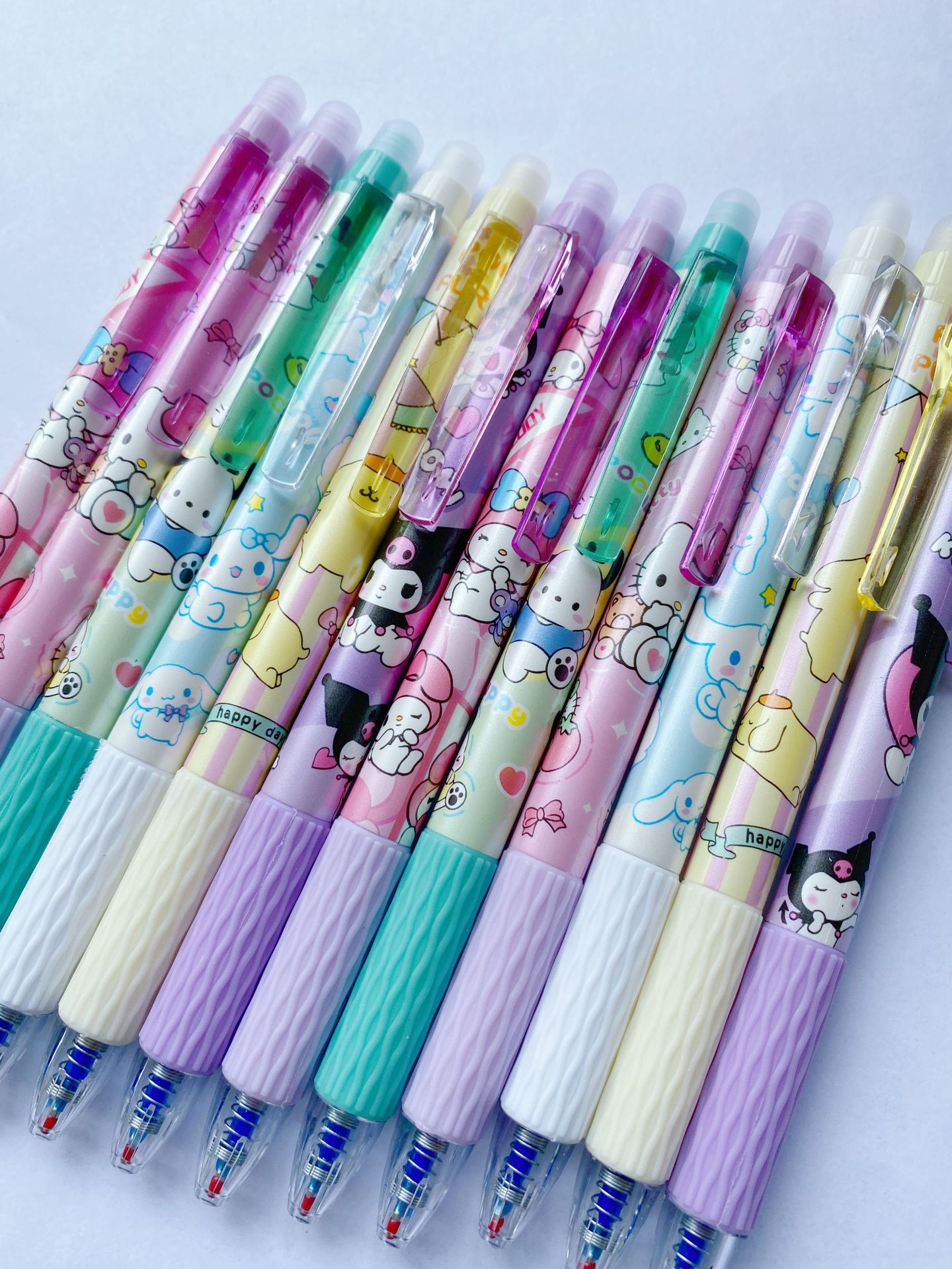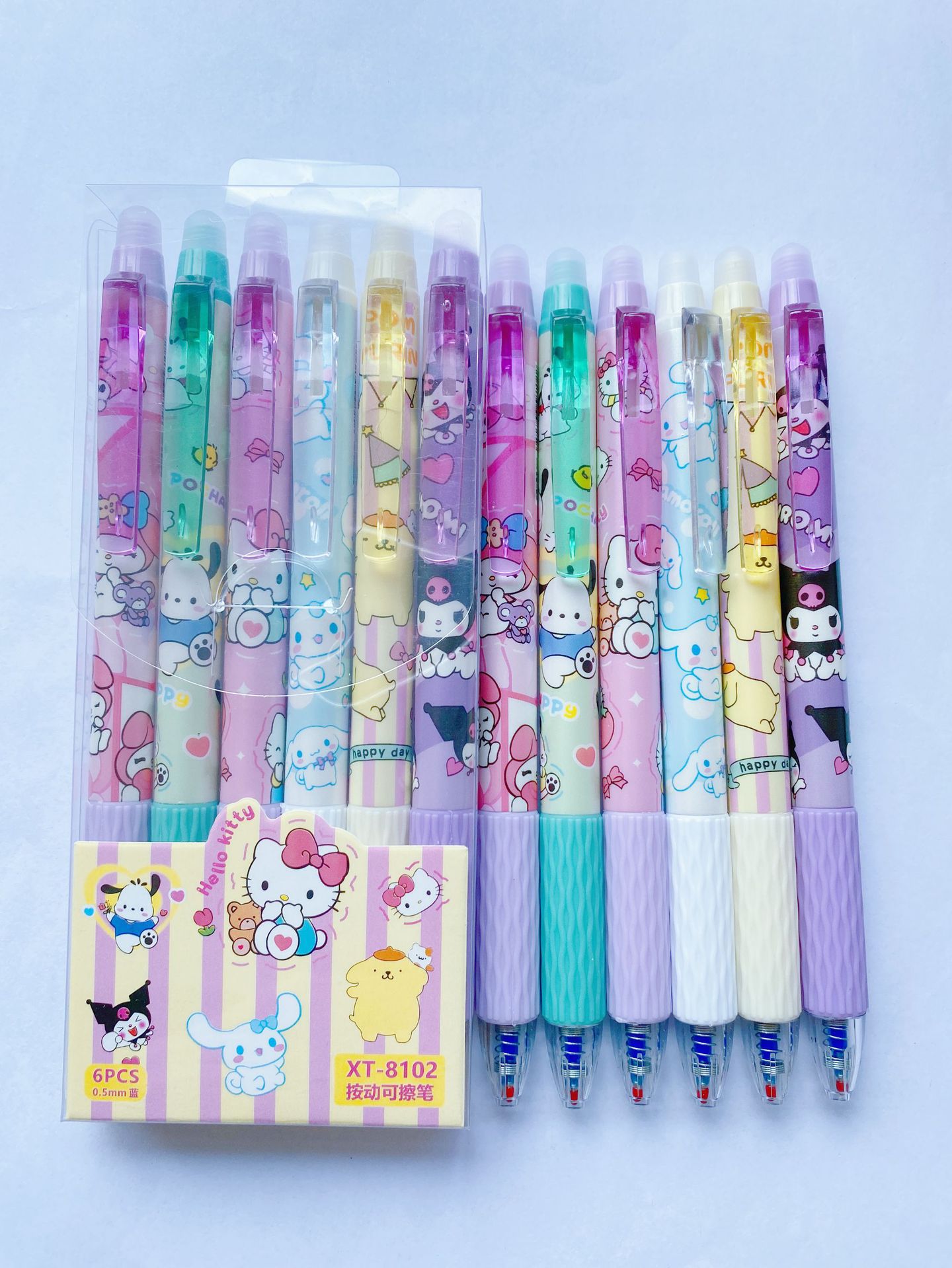 Nuevo lápiz de empuje borrable pluma de gel de dibujos animados de aspecto alto cristal azul Mo fácil de limpiar estudiante de la escuela primaria ST pluma de gel azul borrable