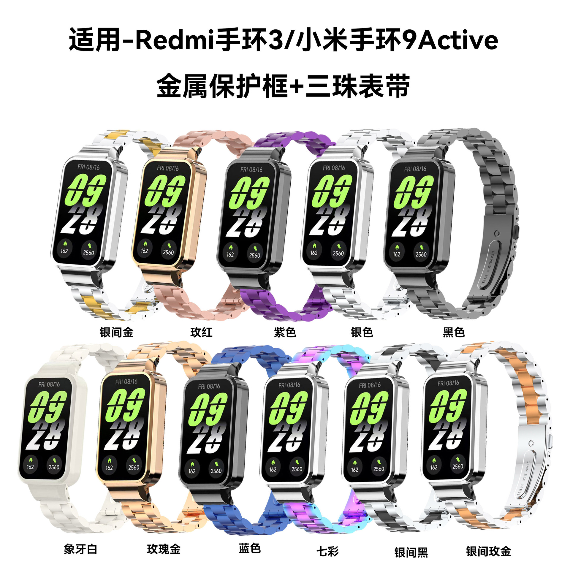 Aplicable Redmi Band 3 Correa de metal Band Xiaomi Band 9Active Pulsera de acero inoxidable Milan Magnetic 2