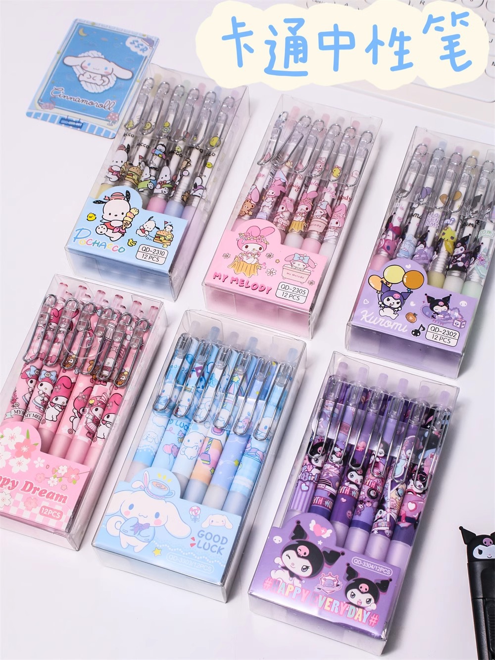 Cute postre fiesta 12 bolígrafos de caja de dibujos animados perros metal bolígrafo neutro bolígrafo de firma ST negro