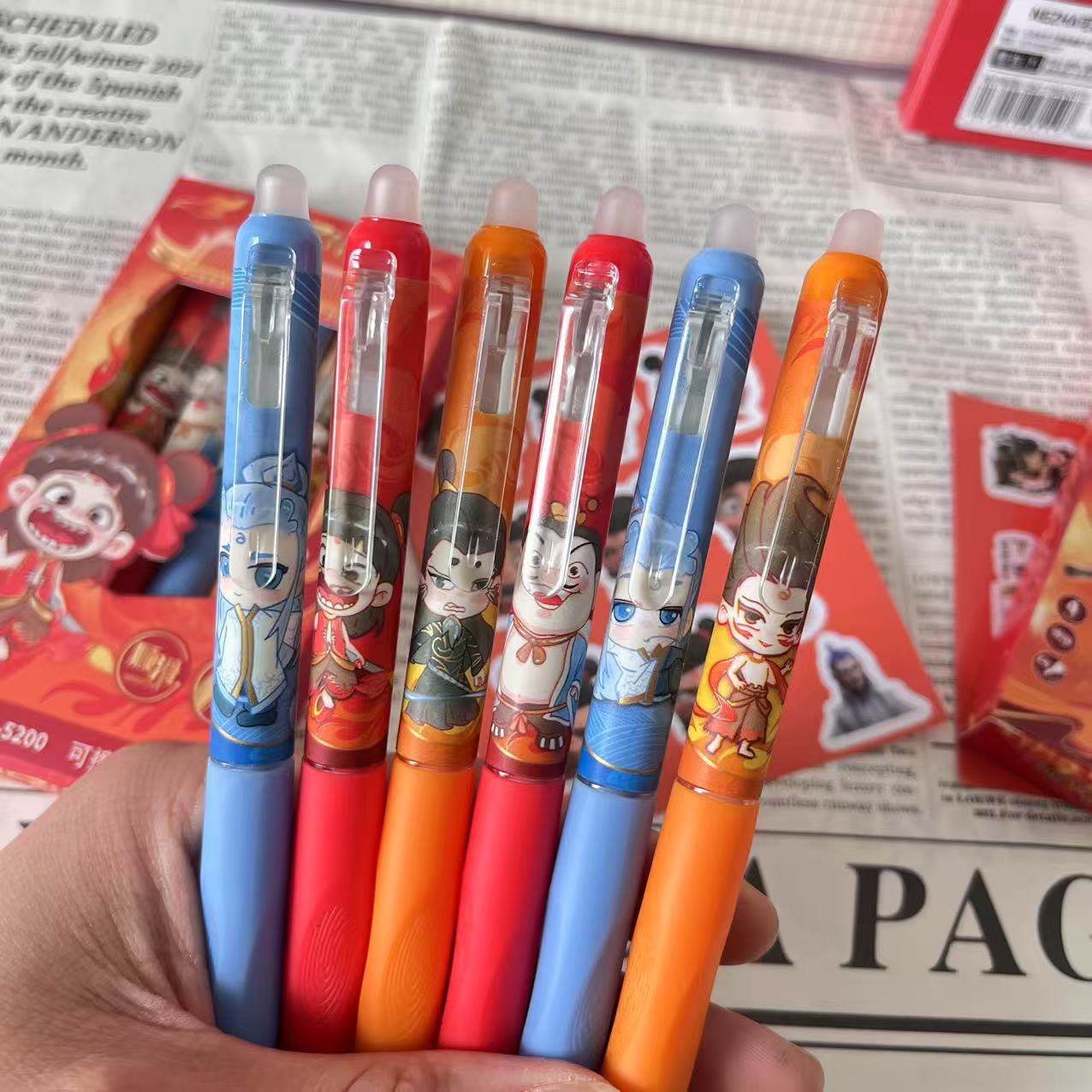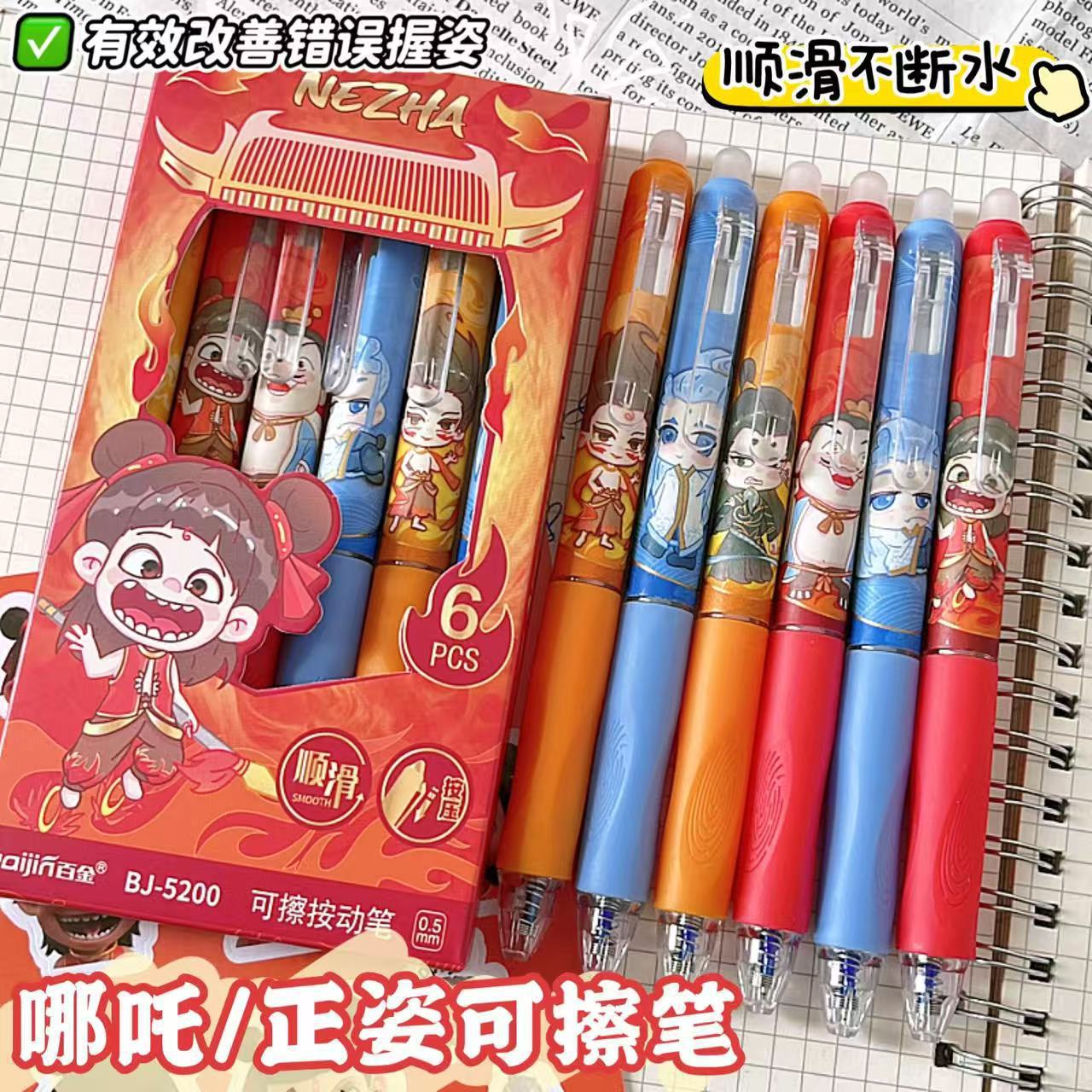 Nezha diablo niño mar borrable azul lápiz neutro creativo estudiantes de la escuela primaria cepillo cómodo rápido seco fricción fácil lápiz de agua
