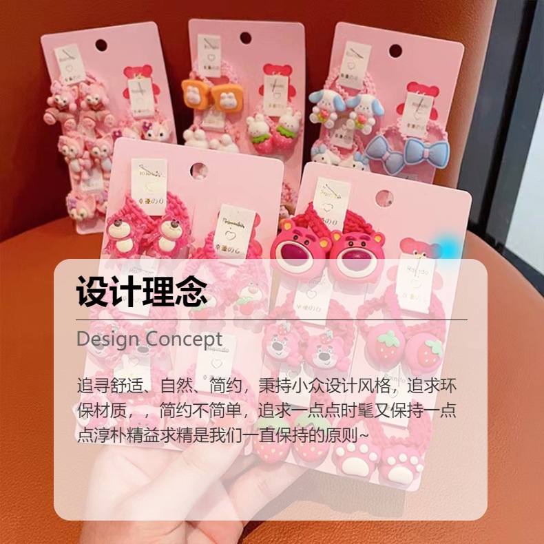 Banda de goma de oso fresa para niños Cuerda de lazo de pelo de encaje de estilo coreano Cuerda de pelo de bebé de alta elasticidad Banda de pelo para niñas Accesorios para el cabello al por mayor