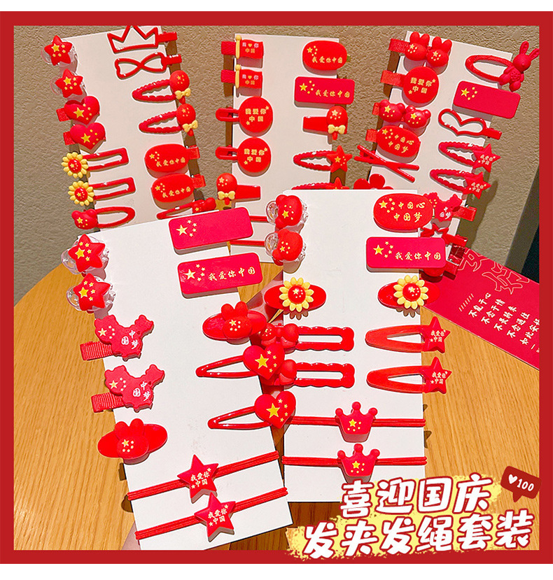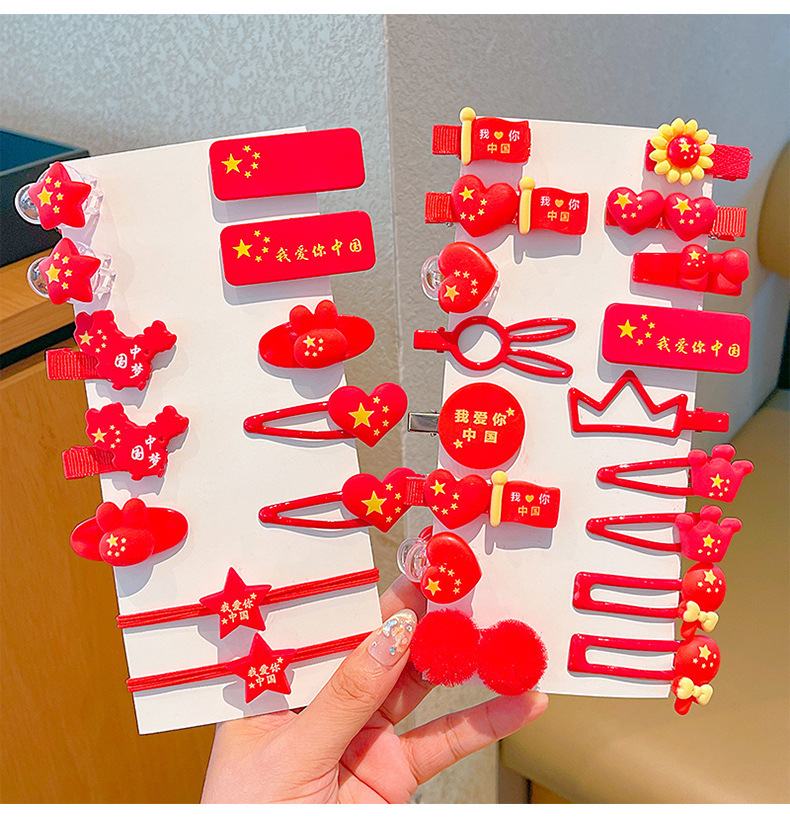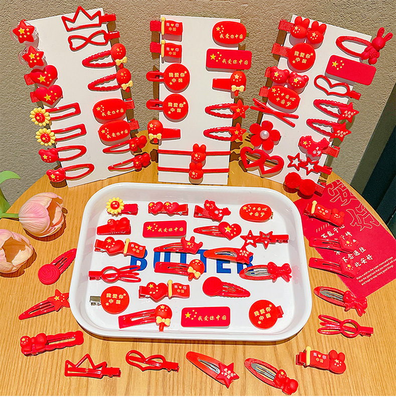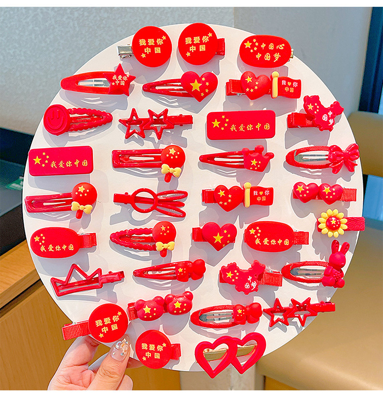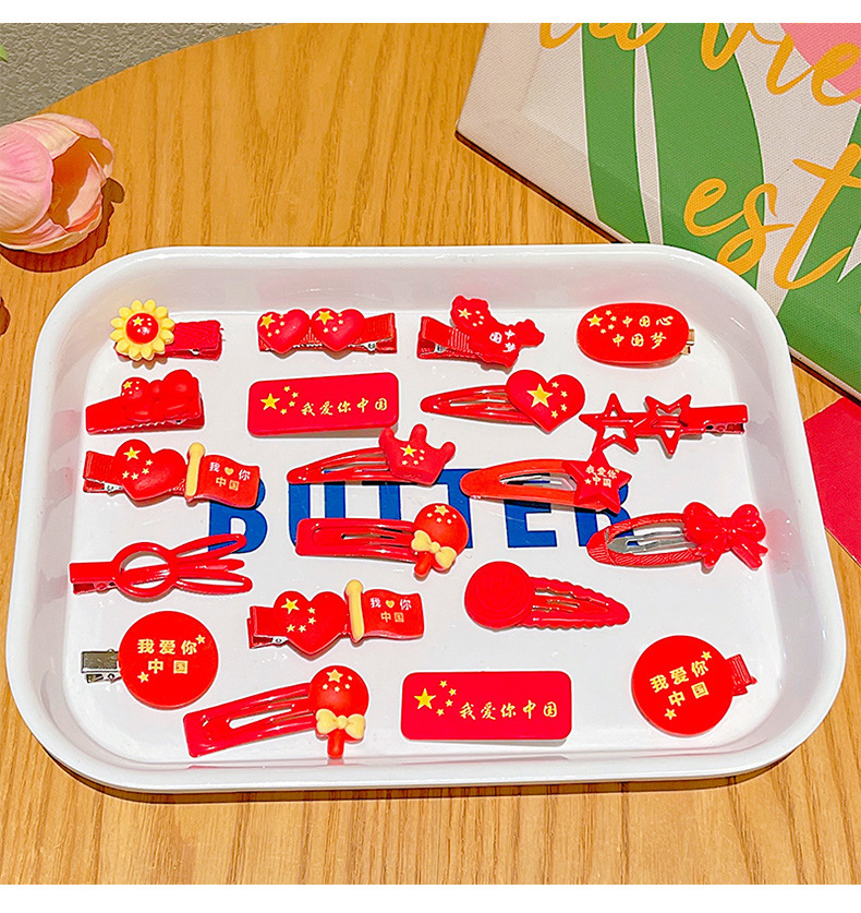 11 clips de pelo de dibujos animados para niños Día Nacional de las niñas cinco estrellas banderas rojas rotas clips de pelo para bebés cabezales
