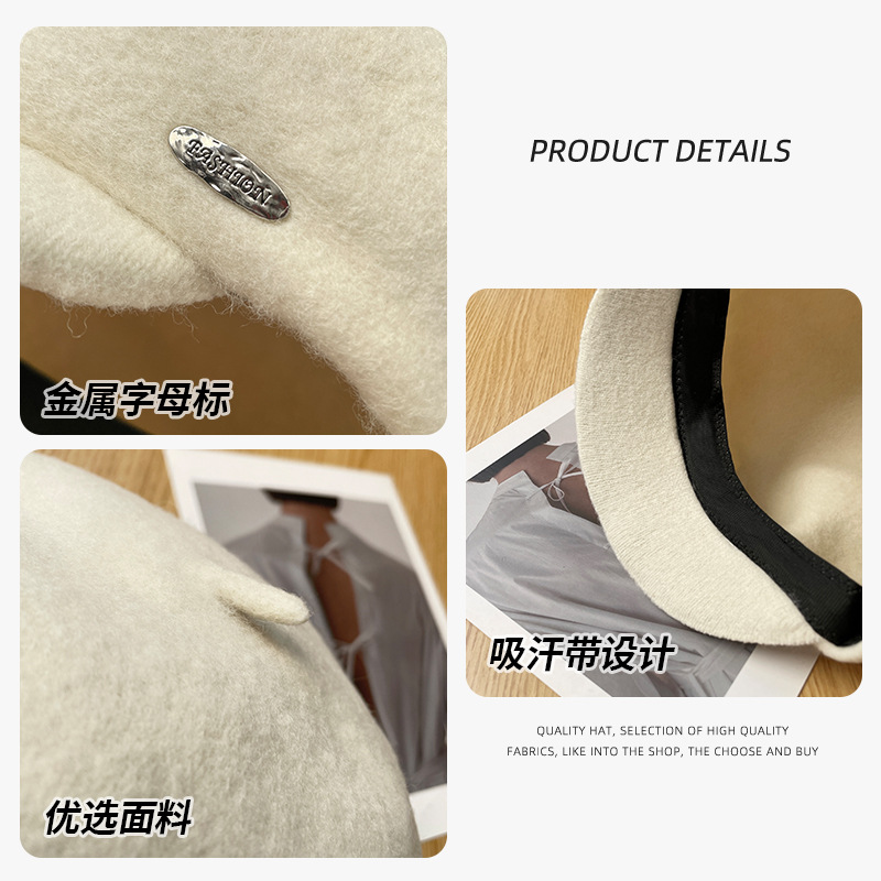Boina de lana de mujeres de otoño y invierno moda versátil tendencia muestra cara pequeña gorra pintora gorra de boca de pato retró gorra de octogono