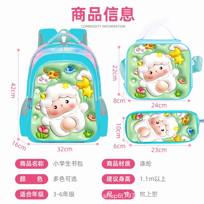 Mochila escolar fábrica 3D traje de tres piezas Shaodong escuela primaria al por mayor mochila de tres piezas de hombro de dibujos animados con protección de la columna