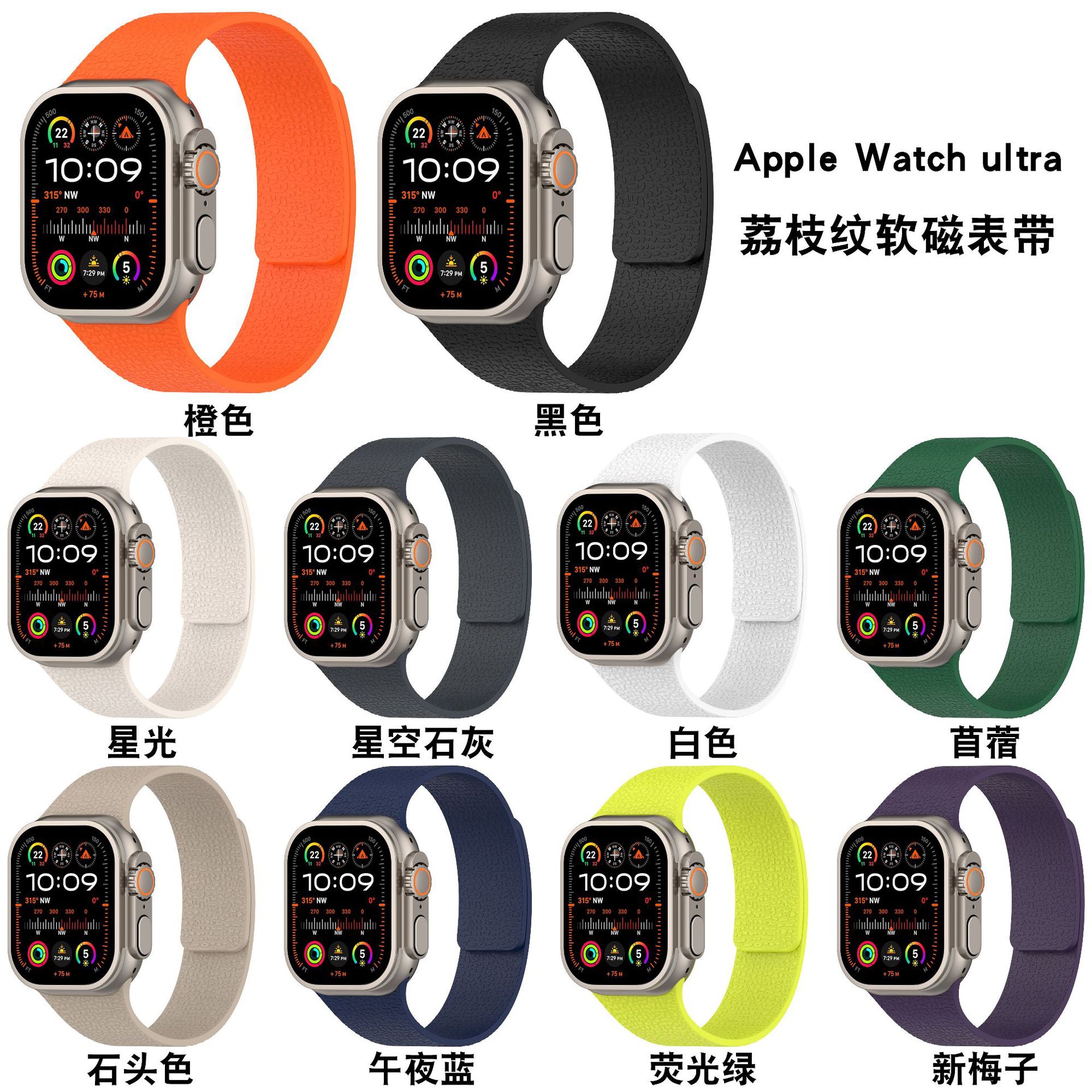 Aplicable para iwatch10 pulsera de manzana de silicona de absorción para mujeres estampado de lichi S9 avanzado ultra hombre SE9876
