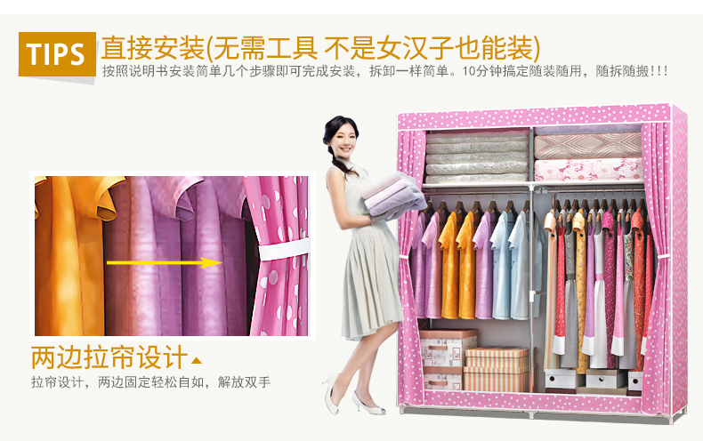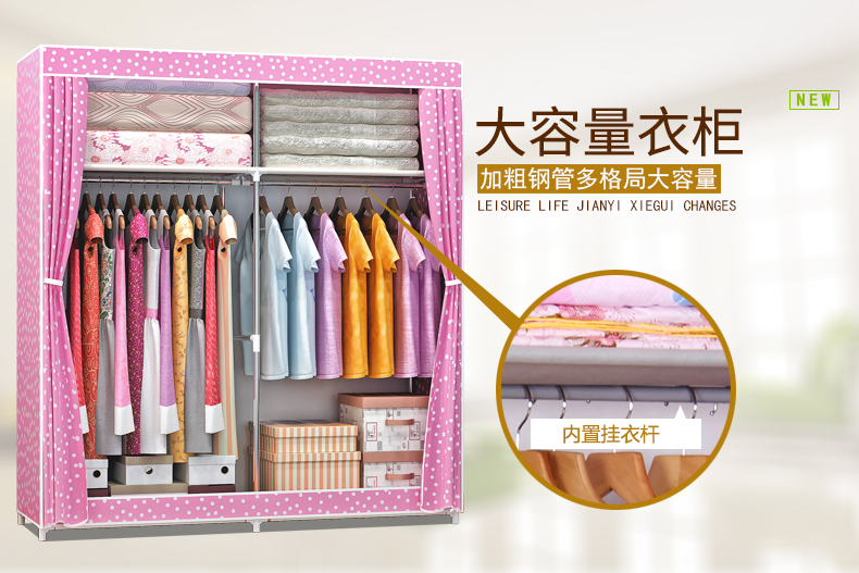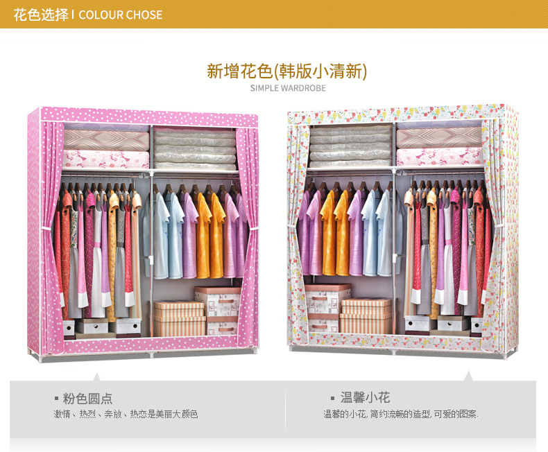 armario simple armario de tela de dormitorio doméstico armario de alquiler reforzado grueso moderno simple tubo de acero almacenar ropa caballo pequeño