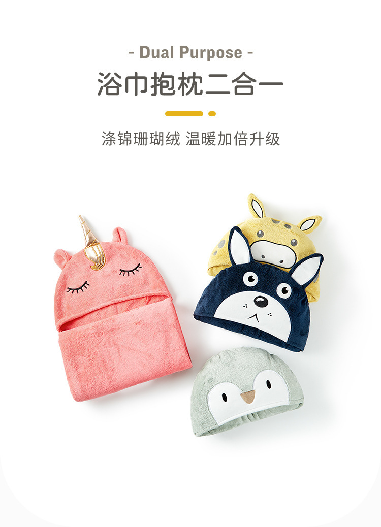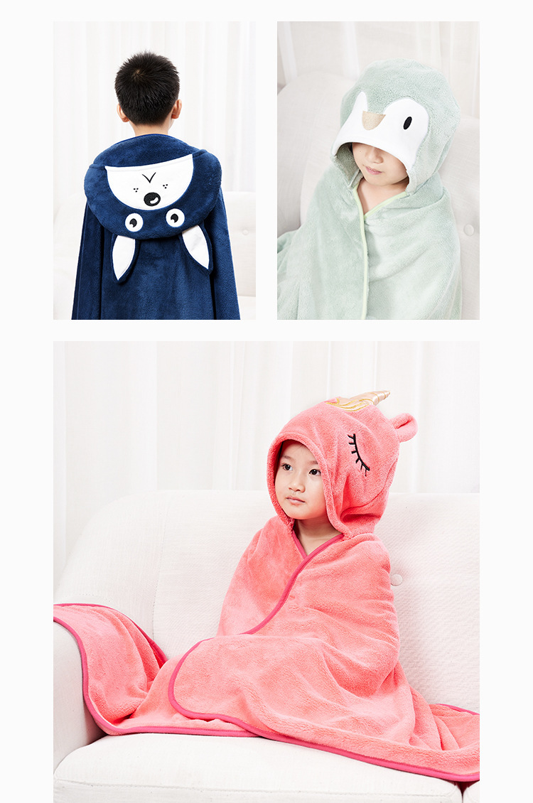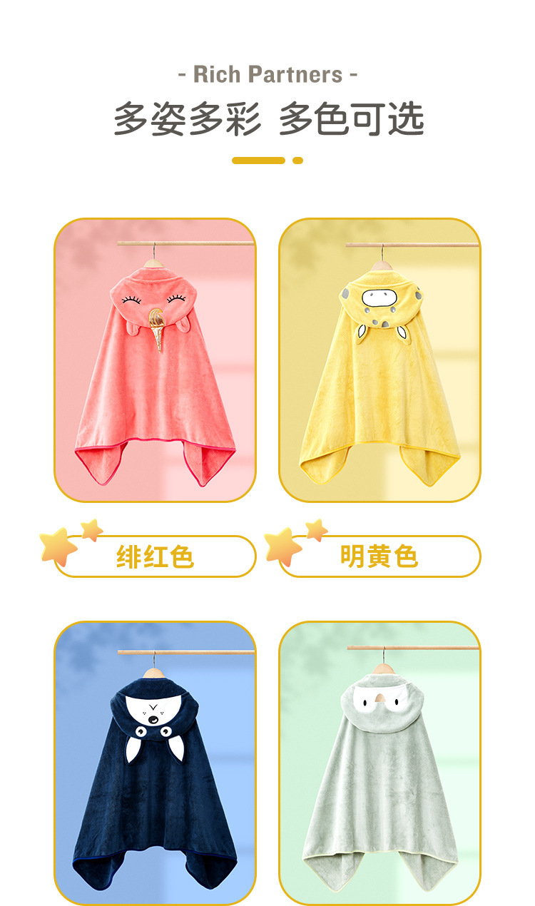 Manta de mantón de dibujos animados para niños multifuncionales capa de coral manta de lana Toalla de baño bata de baño camisón manta pequeña entrega de una pieza