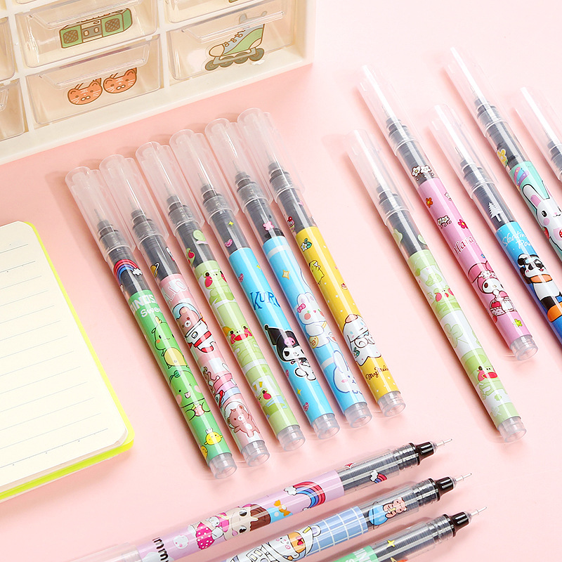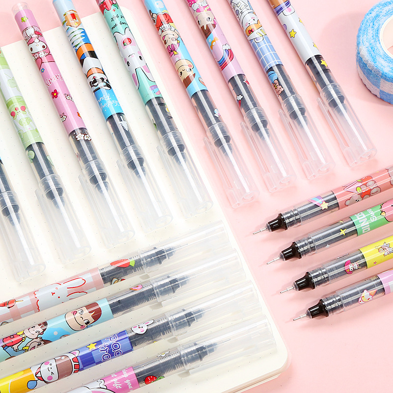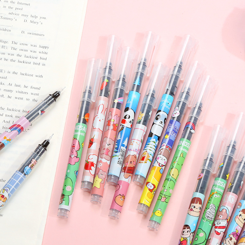 A granel de dibujos animados lindo pluma de gel recta estudiante de alto aspecto ins Examen de bolígrafo de secado rápido pluma negra 0,5