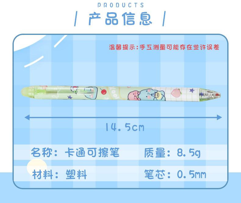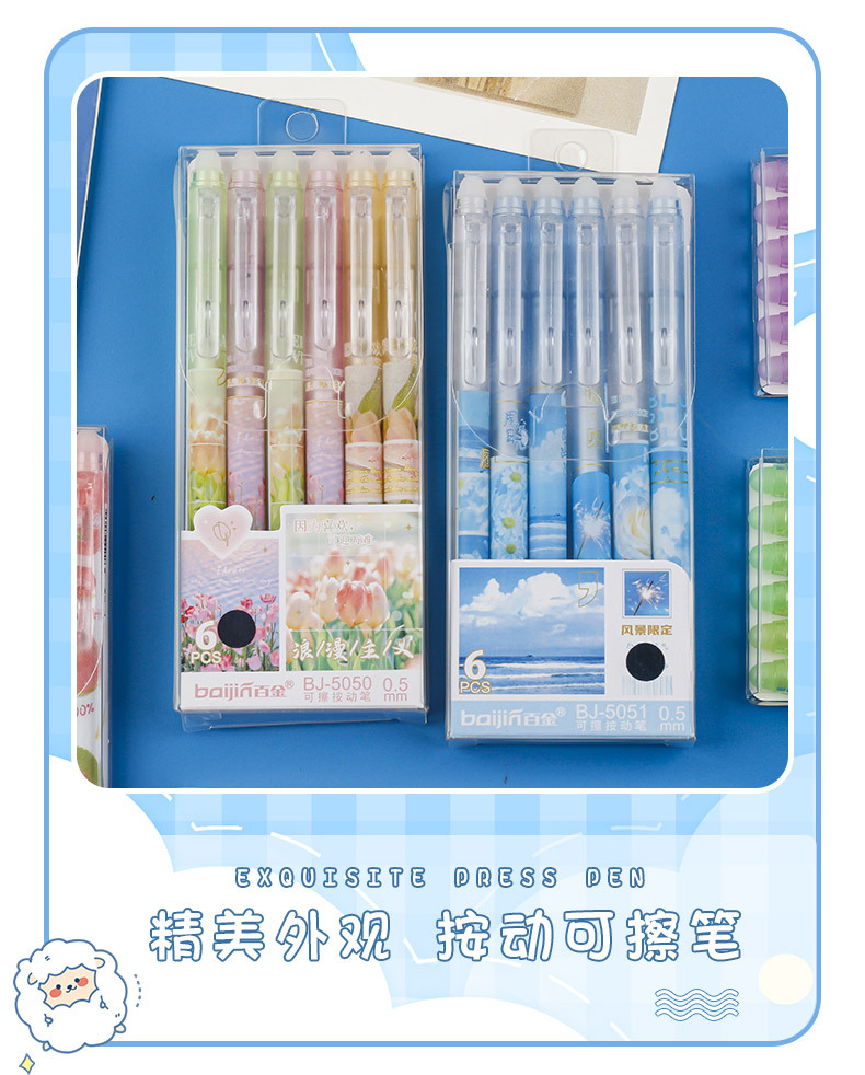 Presione el lápiz limpiable azul cristal 0.5 azul lápiz mágico limpiador pulsador lápiz neutro alto valor de la cara en el viento lápiz azul limpiable