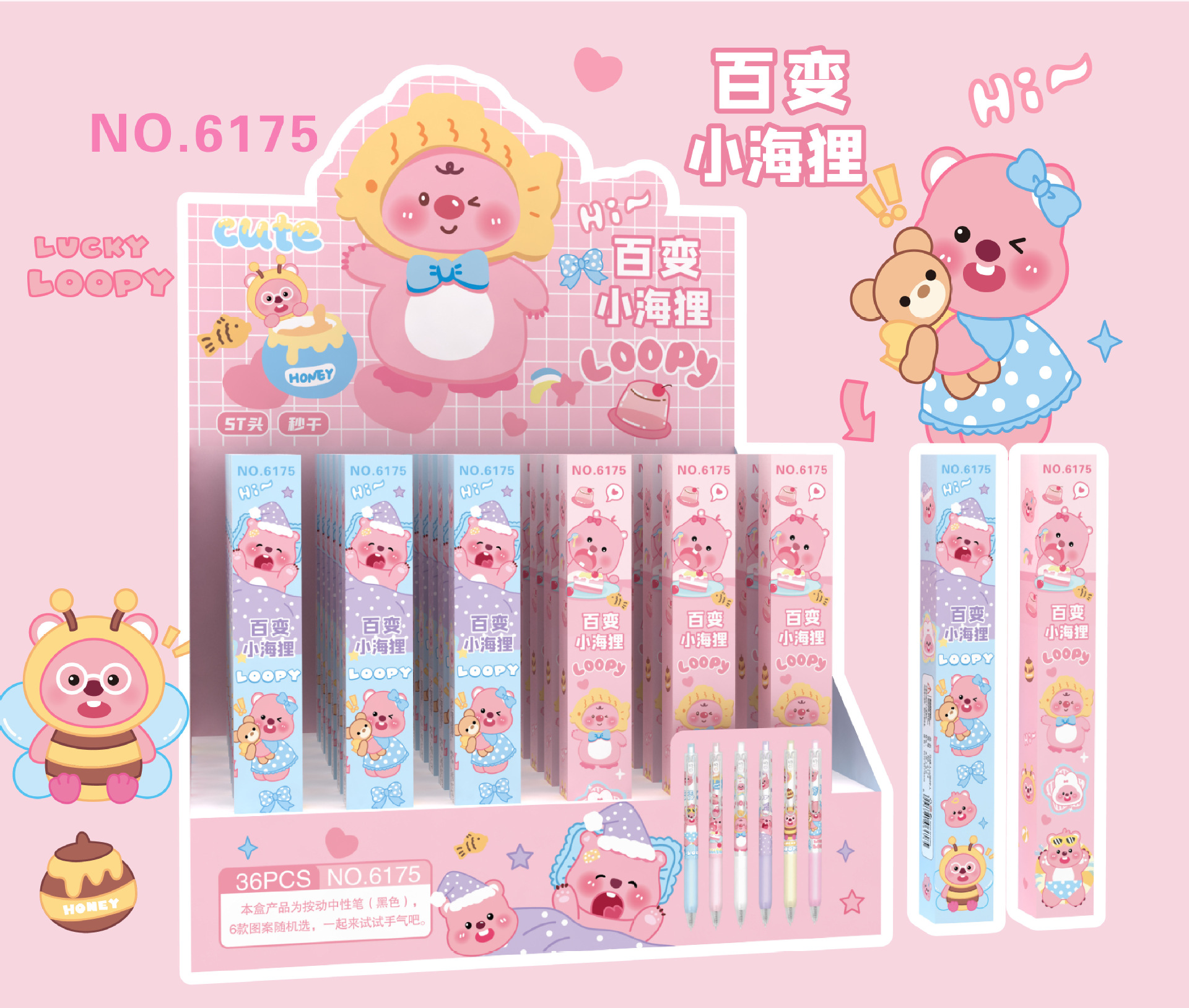 Loopy cambiable pequeño Beaver pluma de gel caja ciega pluma lindo estudiante papelería de alta apariencia estilo limitado empuje pluma de agua