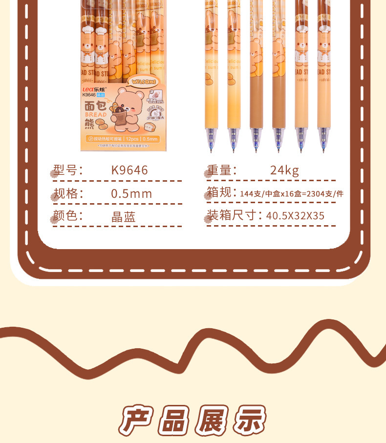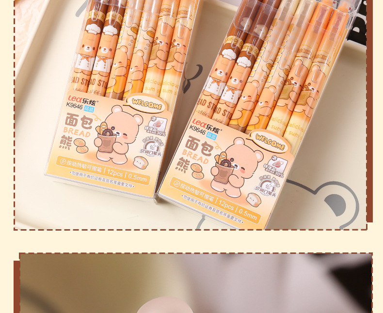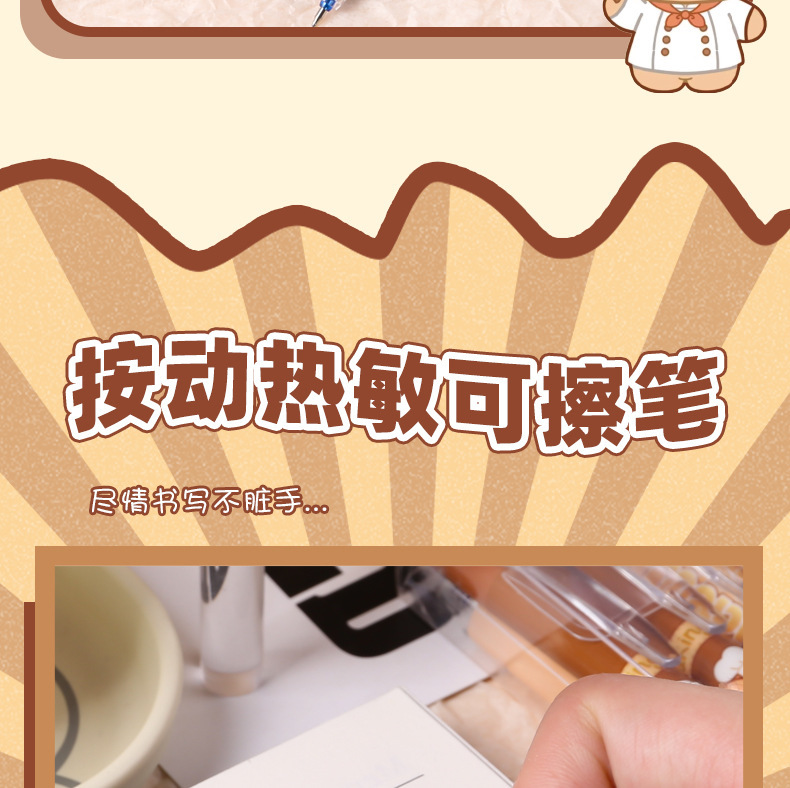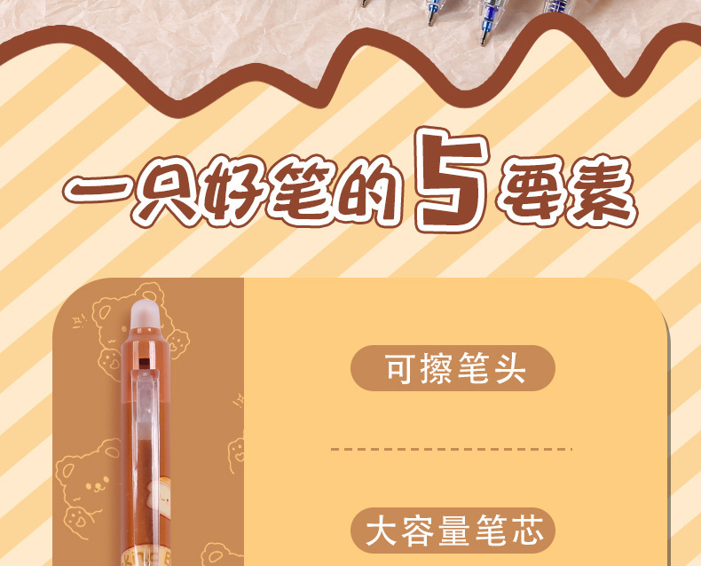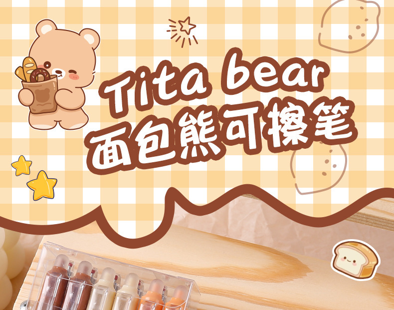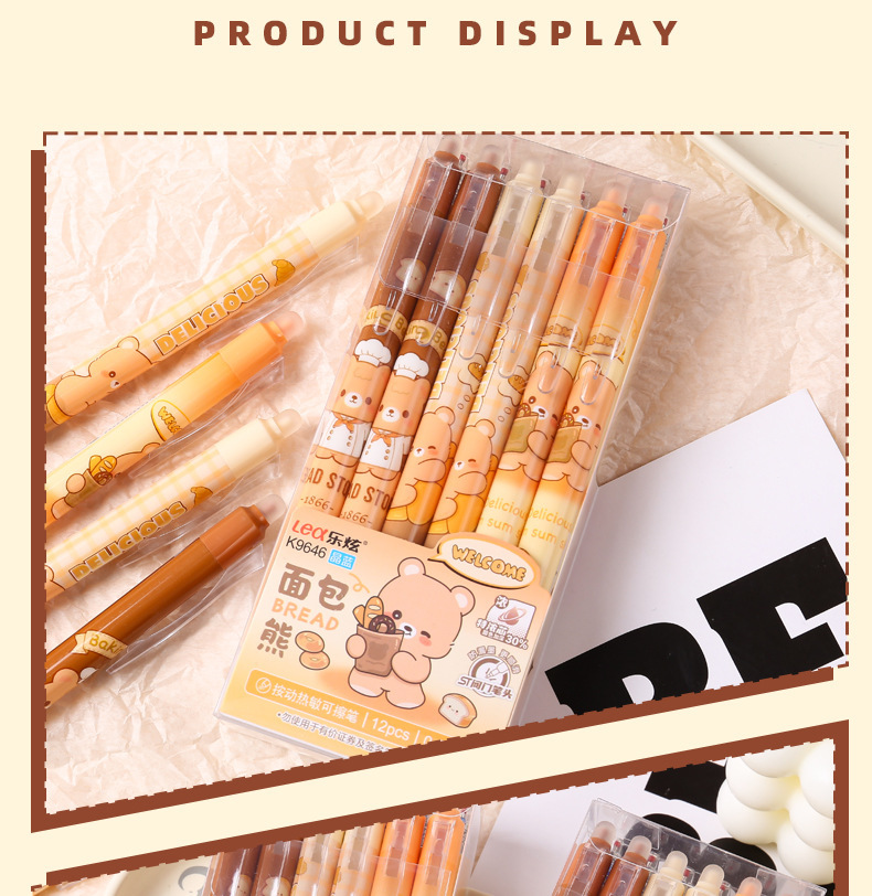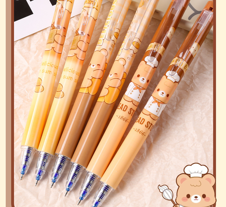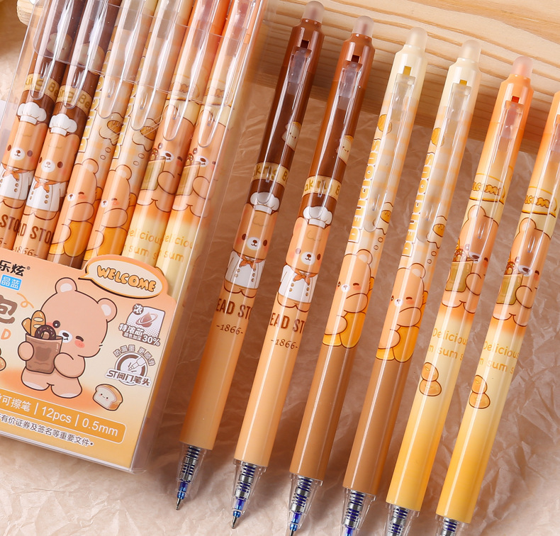 Bolígrafo borrable azul de oso de pan de dibujos animados